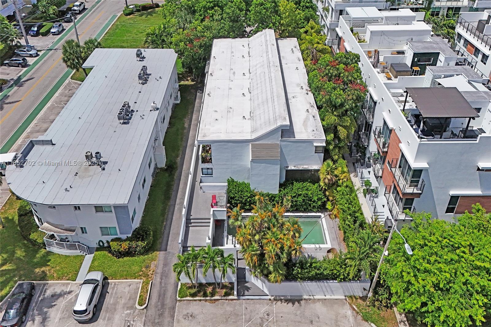 Beautifully updated tri-level townhouse in The Habitat, an exclusive 5-unit boutique community tucked away on a quiet, gated cul-de-sac. Soaring vaulted ceilings and floor-to-ceiling impact windows fill the open-concept living space with natural light. Enjoy seamless indoor-outdoor living with a private garden courtyard, spacious entertaining terrace, and access to a shared community pool. Features include a 2-car garage with tesla charger, updated interiors, and hurricane-impact windows throughout.