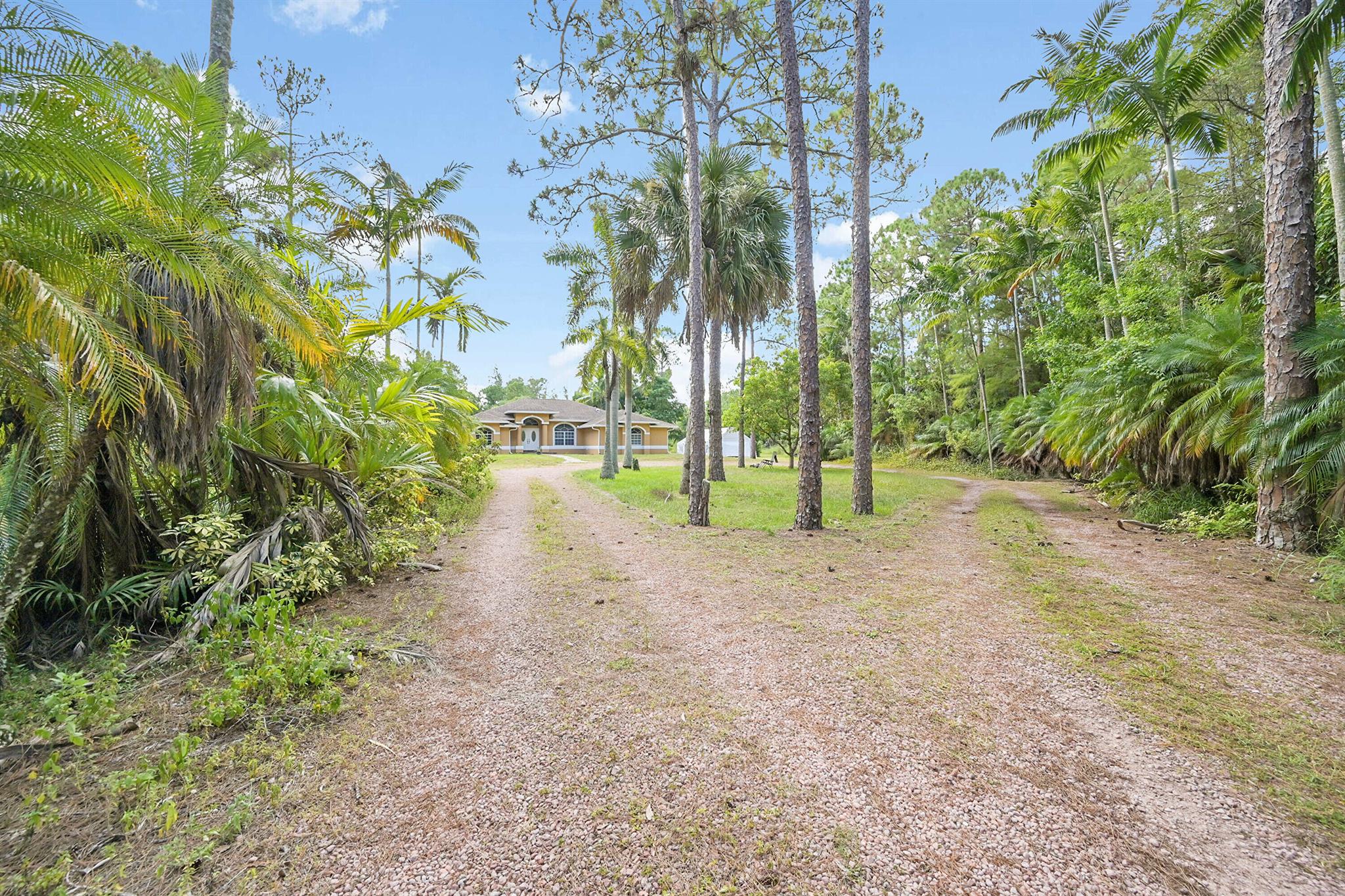 Spacious 3/2/2 CBS home on very private 5 acres in the beautiful equestrian community of Deer Run.Home is open, light and bright with vaulted ceilings and an open floor plan. The 5 acres has a dramatic palm tree-lined, long, circular driveway. The acreage is a blank slate for you to design and build out barns/paddocks/pool/etc. as needed. There's even an existing ''pad'' for a guest house or barn. Or leave it as it is and enjoy the peace, tranquility and privacy of your own 5-acre slice of Florida paradise!Don't miss this lowest priced home in Deer Run!
