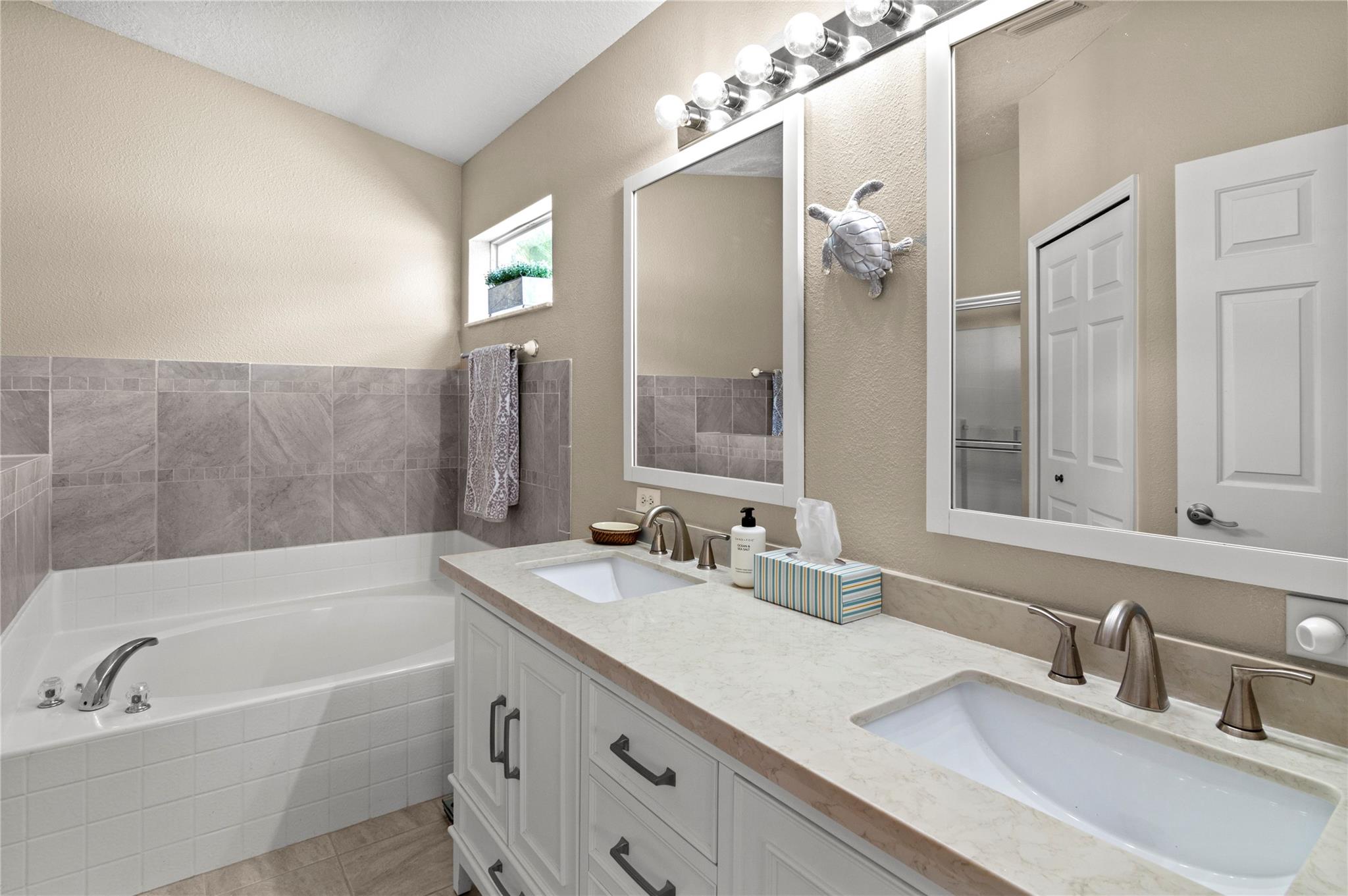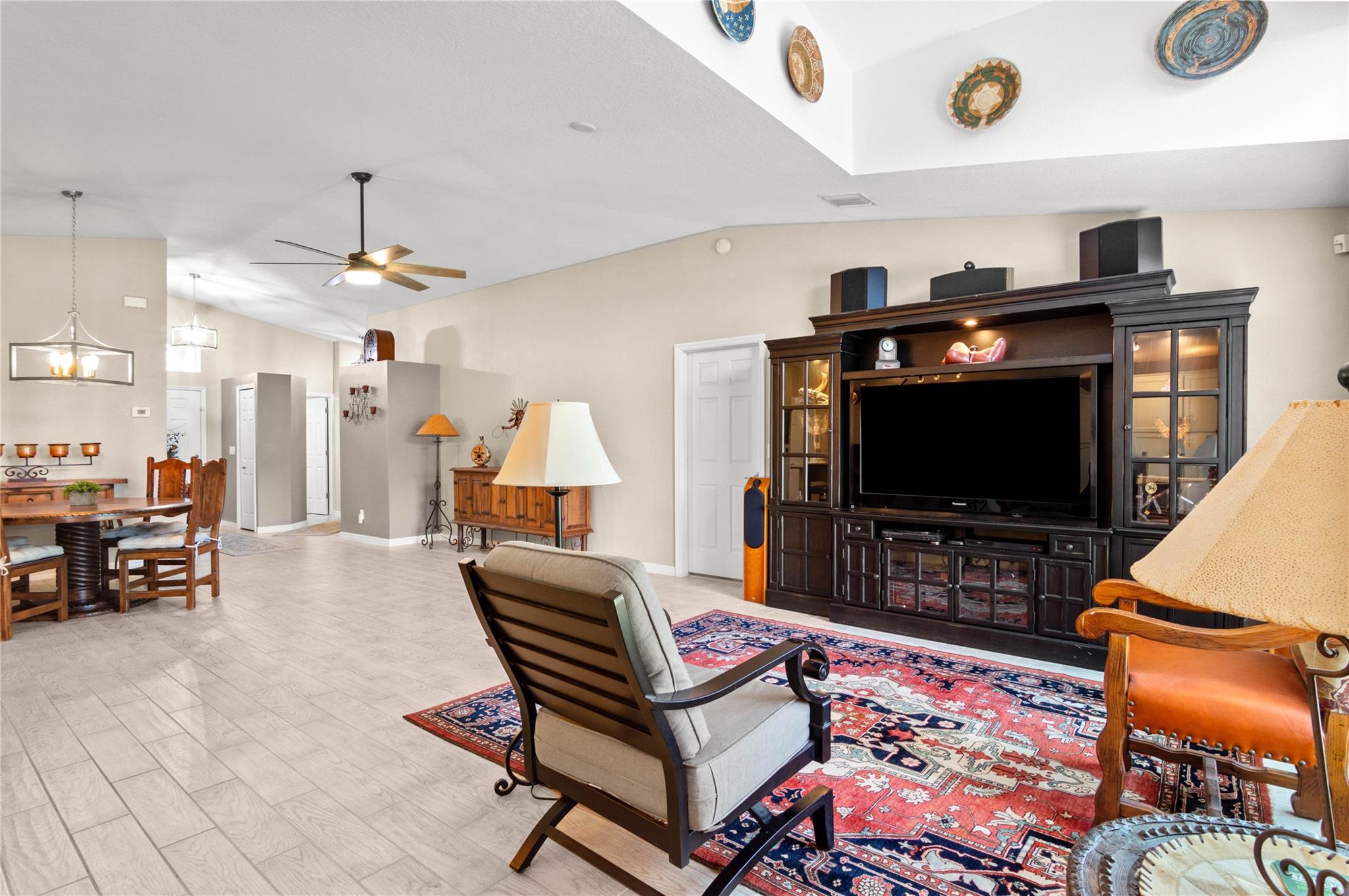Welcome home to this renovated 3BR/2BA lakefront residence! Open concept floor plan with tile floors throughout main living area and upgraded kitchen and bathrooms! Vaulted ceilings in the main living area and plenty of natural light make this home bright and airy. Kitchen is equipped with quartz countertops, LG appliances and a large island! Two dining areas provides ample space to entertain. Tastefully renovated, including 2023 roof & 2019 hot water heater. Screened in patio with plenty of room to expand or add a pool. Full storm protection. Waterford Lakes is in a great location, close to all shopping and the beaches. Lawn care included in HOA!