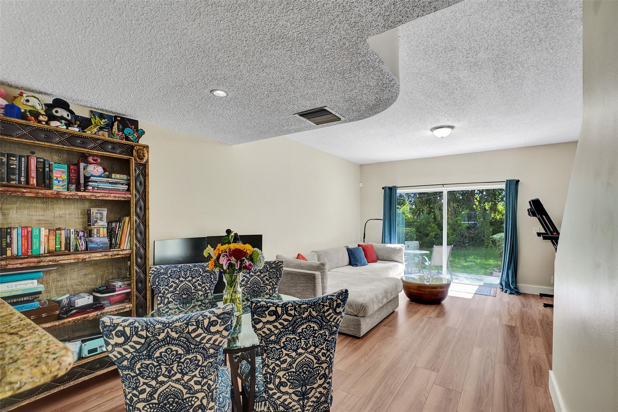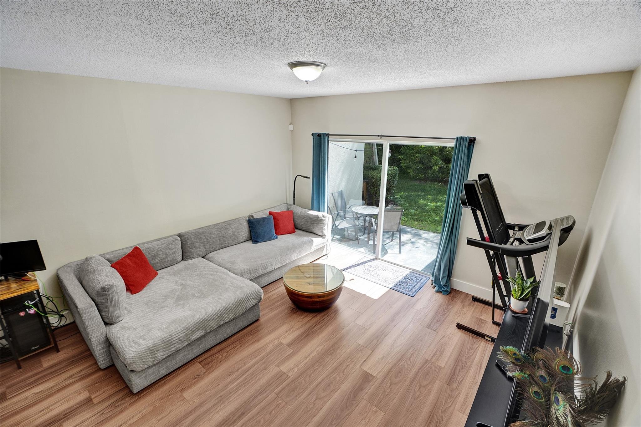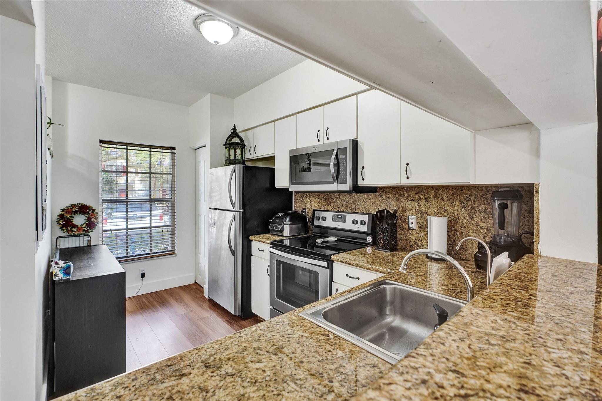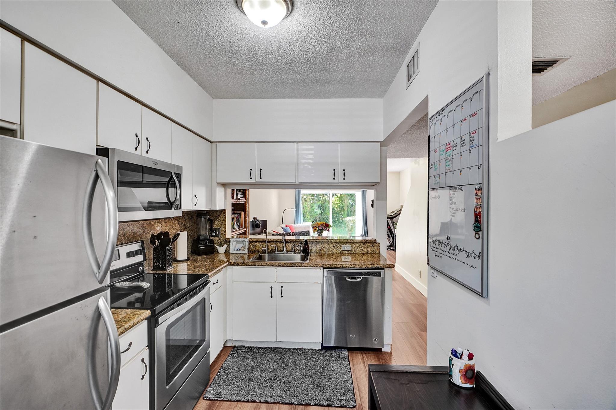 Highly sought after Somerset at Jacaranda is centrally located near shopping, dining, and major roadways. Tranquil living meets urban convenience. Each of 2 spacious bedrooms has its own bathroom, pus a 1/2 bathroom on the 1st floor. Move-in ready, brand-new flooring, freshly painted, and a wooded backyard that backs directly onto Jacaranda golf course. Enjoy peace of mind with a 2024 metal roof and washer/dryer, 2019 hot water heater, and 2017 air conditioner. The kitchen is equipped with granite counter tops and reliable stainless appliances:dishwasher, stove, and microwave. Lots of guest parking. Leasing is permitted 1st year. Seller paying off 2024 New Roof Special Assessment. Enough reserves for a low down & NO HOA min down.