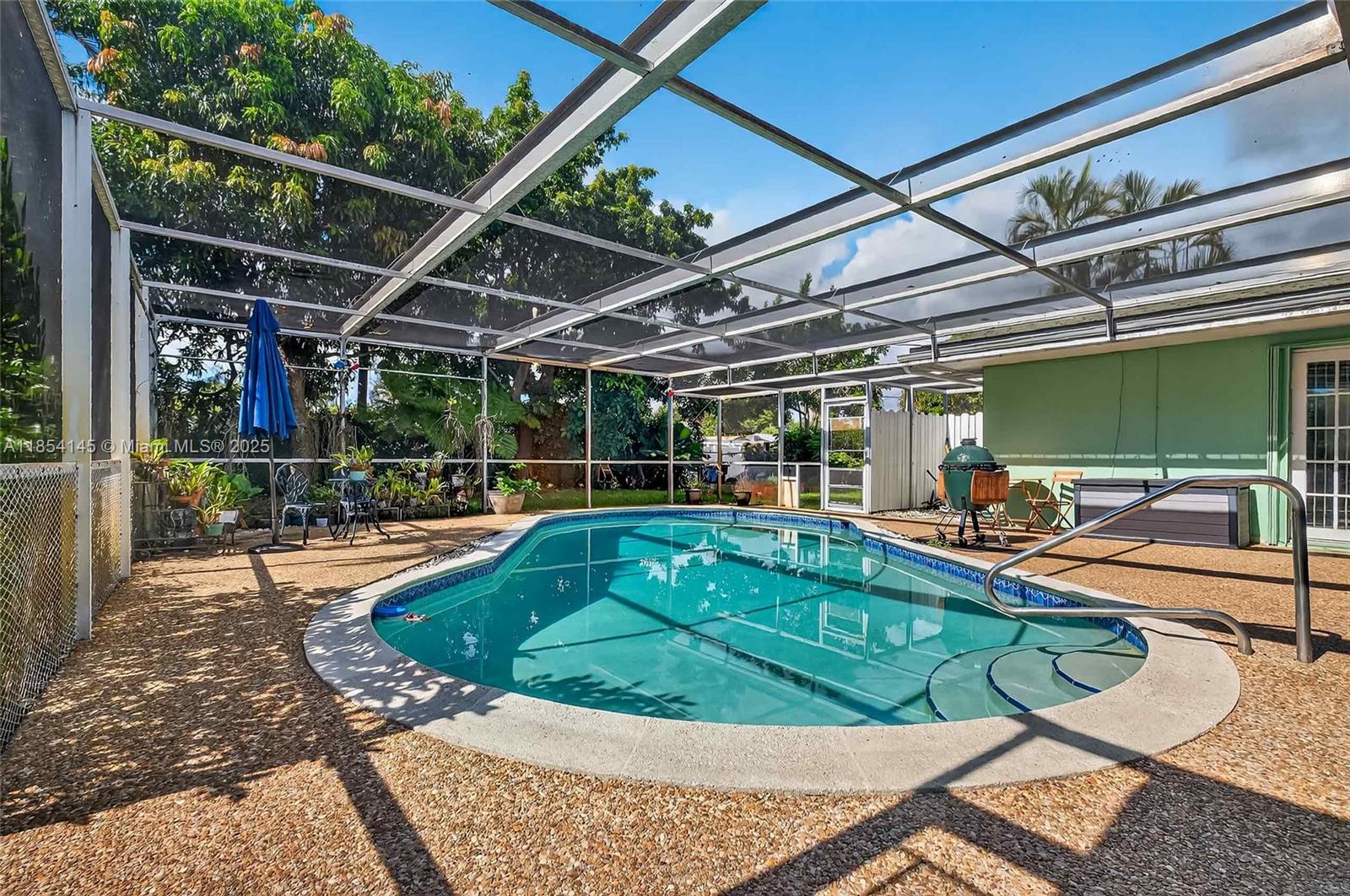 Terrific Hollywood Hills home with Key West style decor and colors, very warm and inviting. Kitchen with natural wood cabinets, a huge island with granite for dining or food prepping, large kitchen window overlooking the pool, stainless steel appliances. Separate dining room with French doors to pool. 2nd bath remodeled with large shower and ample cabinets. A huge family room could easily be made into in-law quarter, next to large laundry room as well as utility room. Roof is approx 7 years old and Ac is 5 years old, new hot water heater. Accordions on most openings. Lush yard with avocado and mango trees. Please give some notice to show.