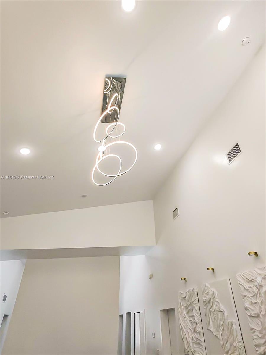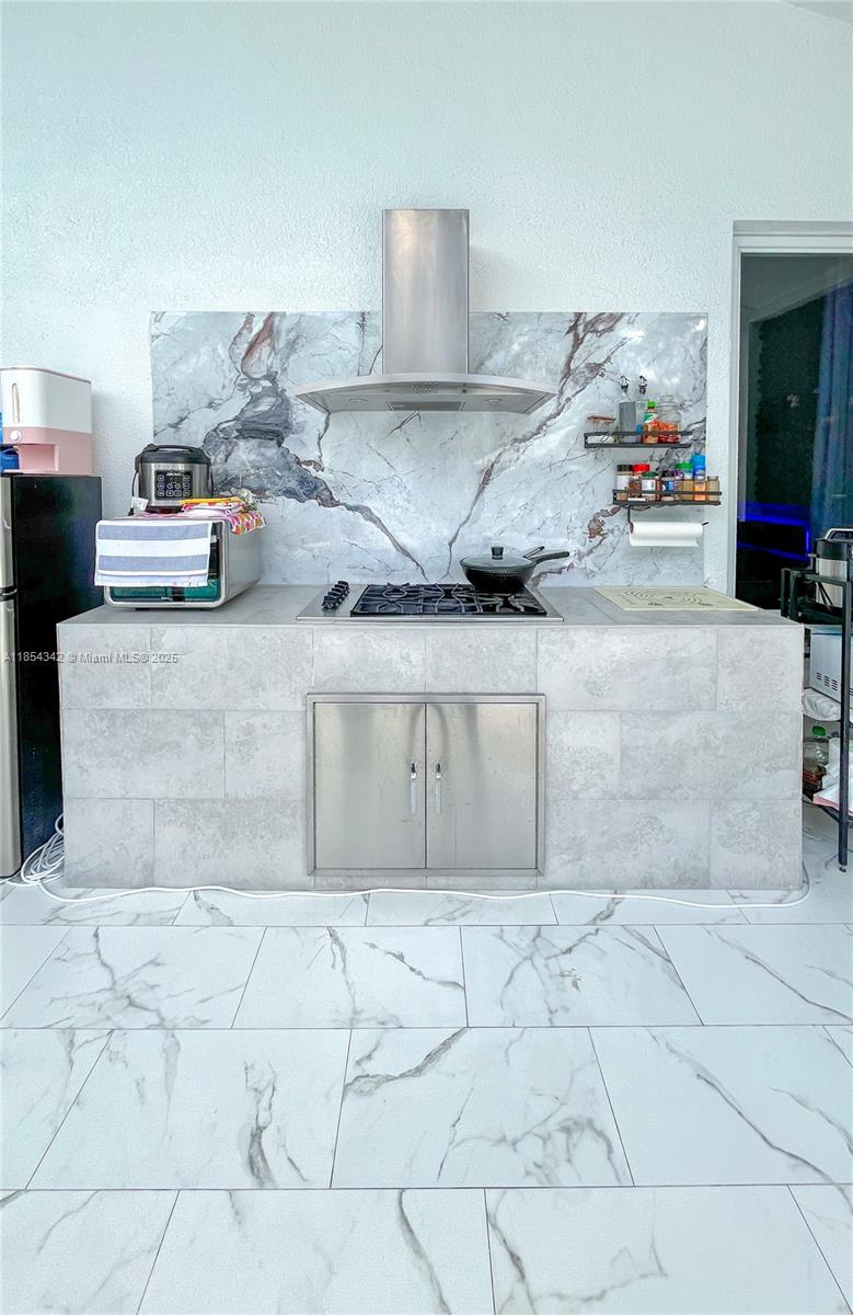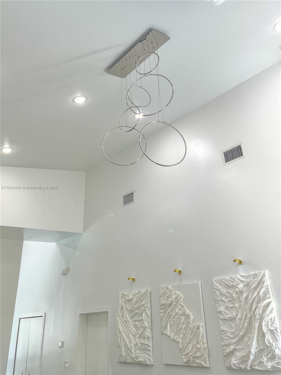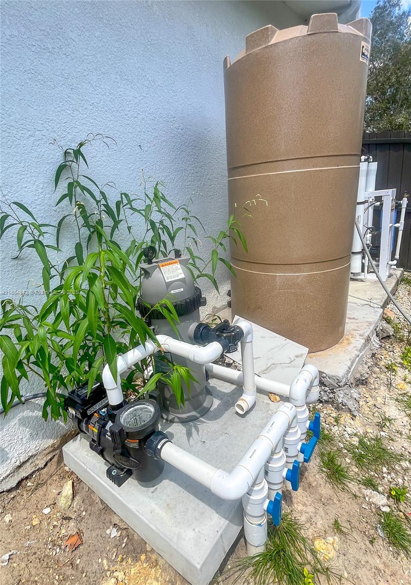Architecturally distinctive modern home with soaring 18-ft ceilings. The only new-build in Lehigh under a half-million to offer a pool! Tall impact windows fill the open plan in natural light, while large-format tile grounds every room. Unlike typical builds, this home has full CBS construction—including interior walls—for enhanced soundproofing and superior storm protection. Furnished living room, outdoor loungers, umbrellas, electric fireplace, RO system, security cameras, appliances, washer/dryer & finished closets all convey. 3-BD/2-BA plan + private den. Screened, covered patio holds full outdoor kitchen; beyond, a 12×28 travertine-decked pool with tanning ledge invites effortless indoor-outdoor living. Oversized 2-car garage, broad drive, generous fenced lot. No HOA. Ready now.