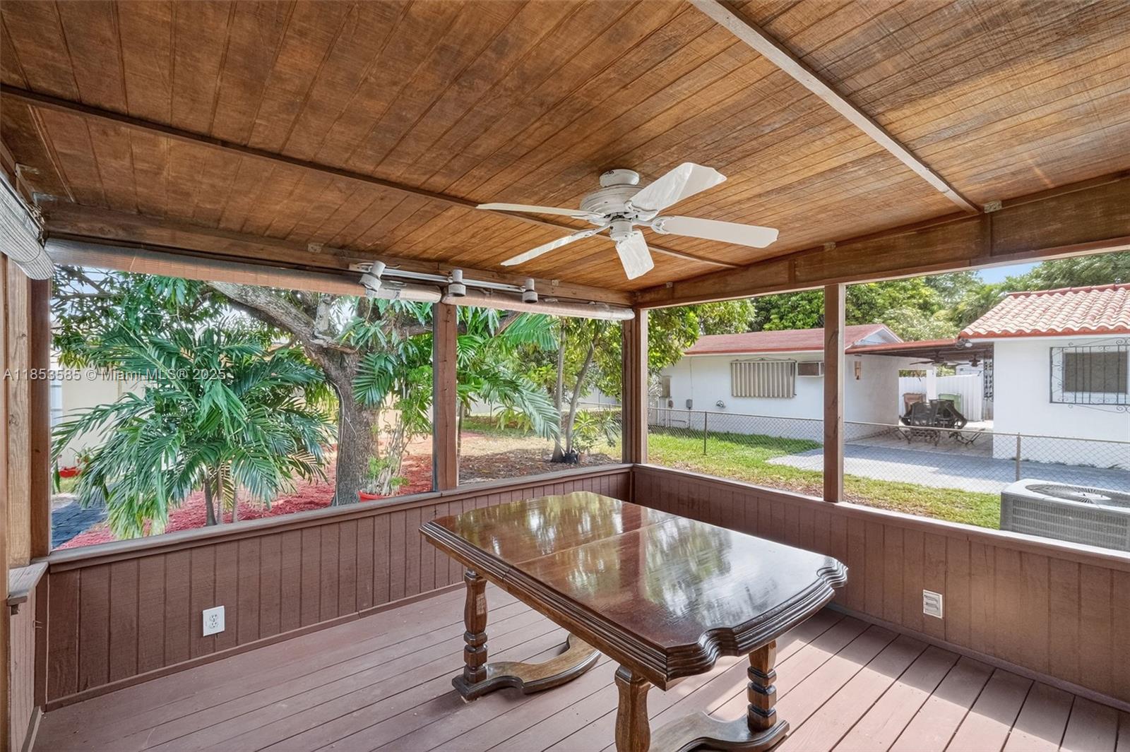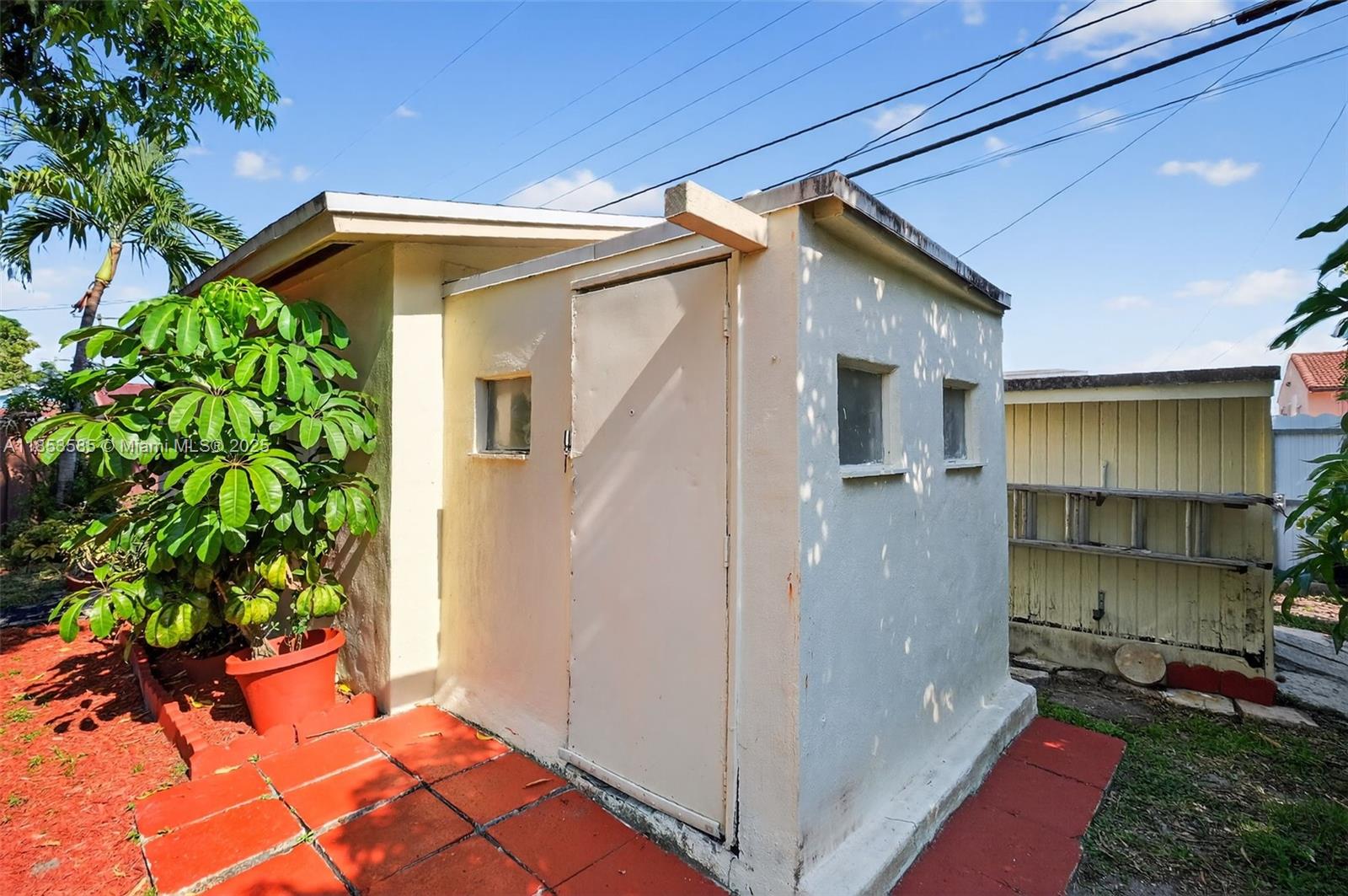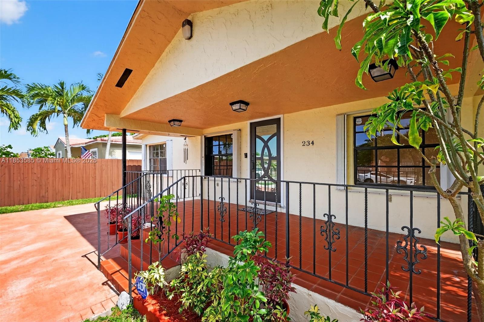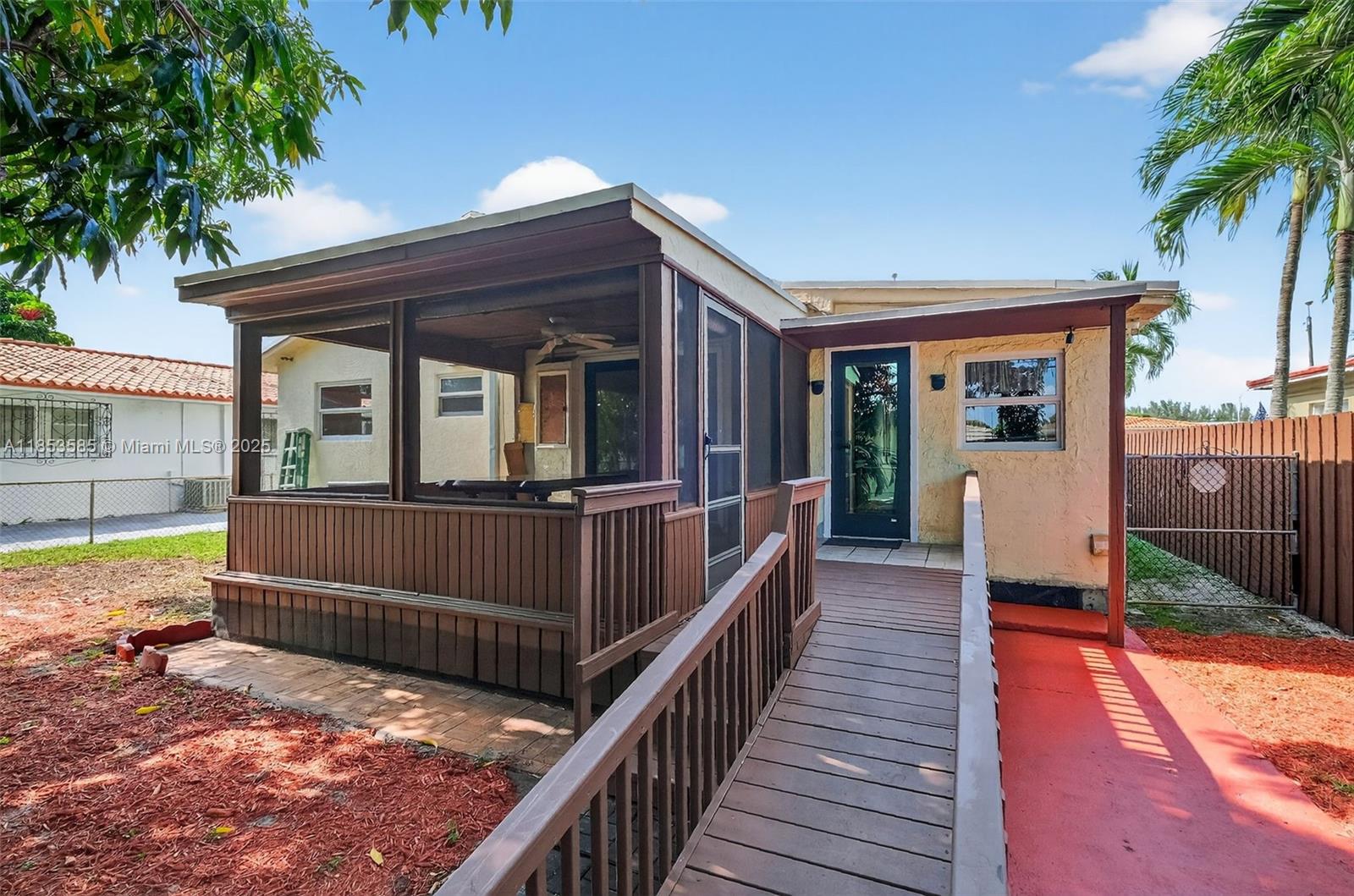 NO ASSOCIATION & NOT A FLOOD ZONE (X)!! East Hialeah charming 1-story beautiful single family home, 1,812 sqft. adj., foyer entrance to 3 bedroom, 2 full bath, plus a separate additional secondary structure as storage/utility in backyard with laundry & bathroom that can be used as work station or converted to guest room. Beautiful upgraded Kitchen with skylight ceiling, tastefully selected granite tops, nice wood cabinets, stainless steel appliances, recessed lighting, snack counter & exit door. Screened enclosed patio wood deck (1995) with ramp. Enjoy a relaxing fenced backyard with space for a pool, with mango & avocado trees, 2 sheds, etc.. Freshly painted, 3-impact glass design doors (2024) & accordion shutters, front porch seating area, concrete driveway, A/C 2020 and Roof 2015.