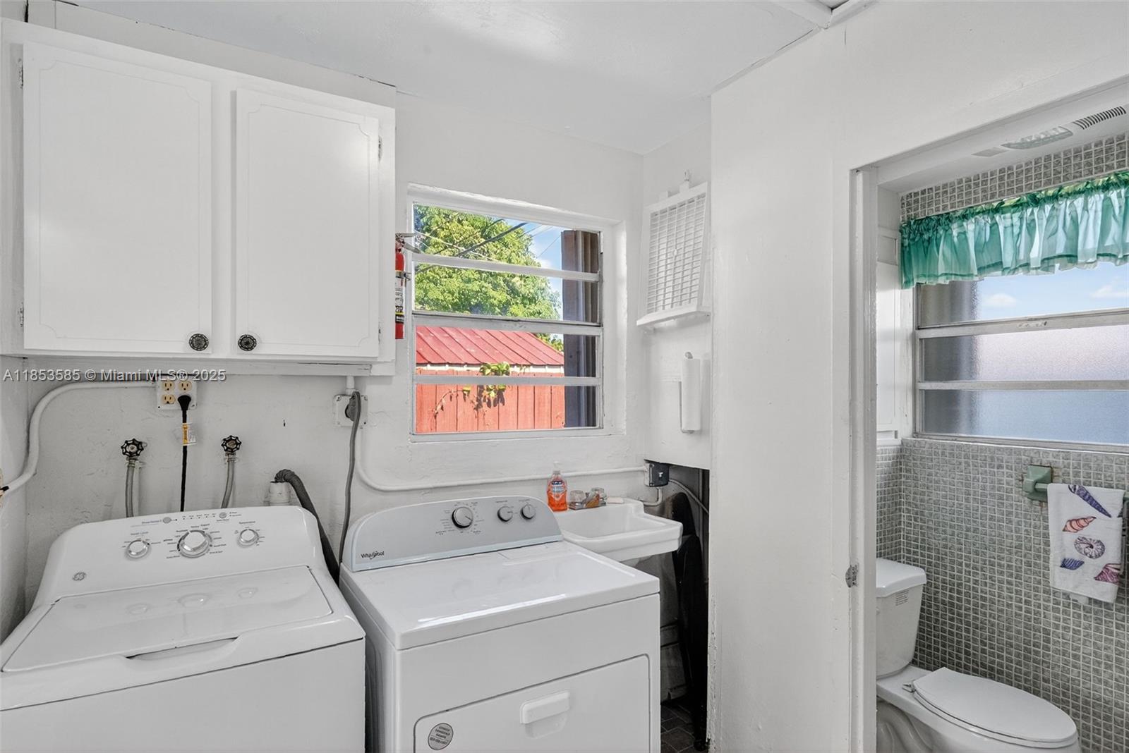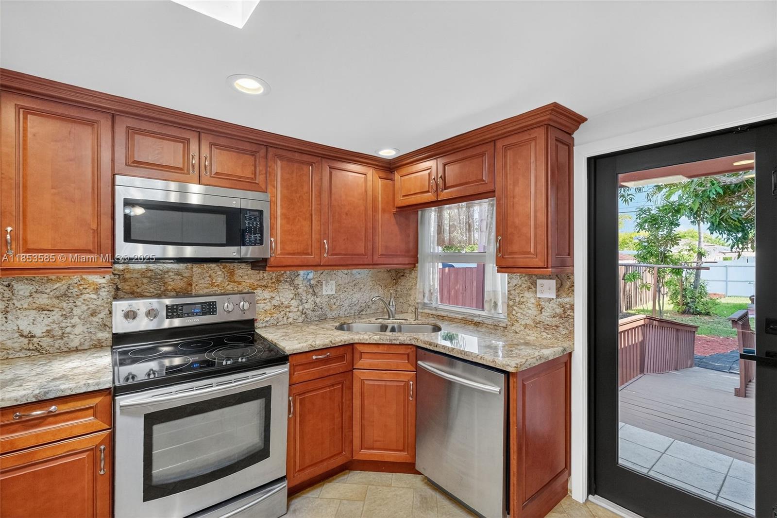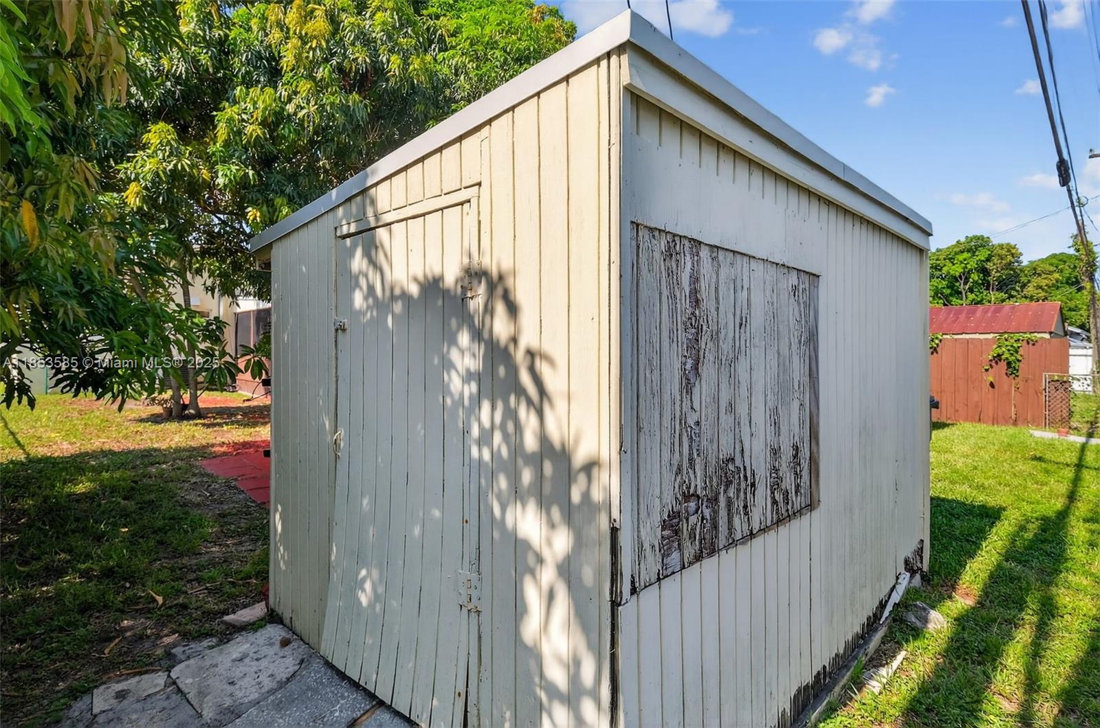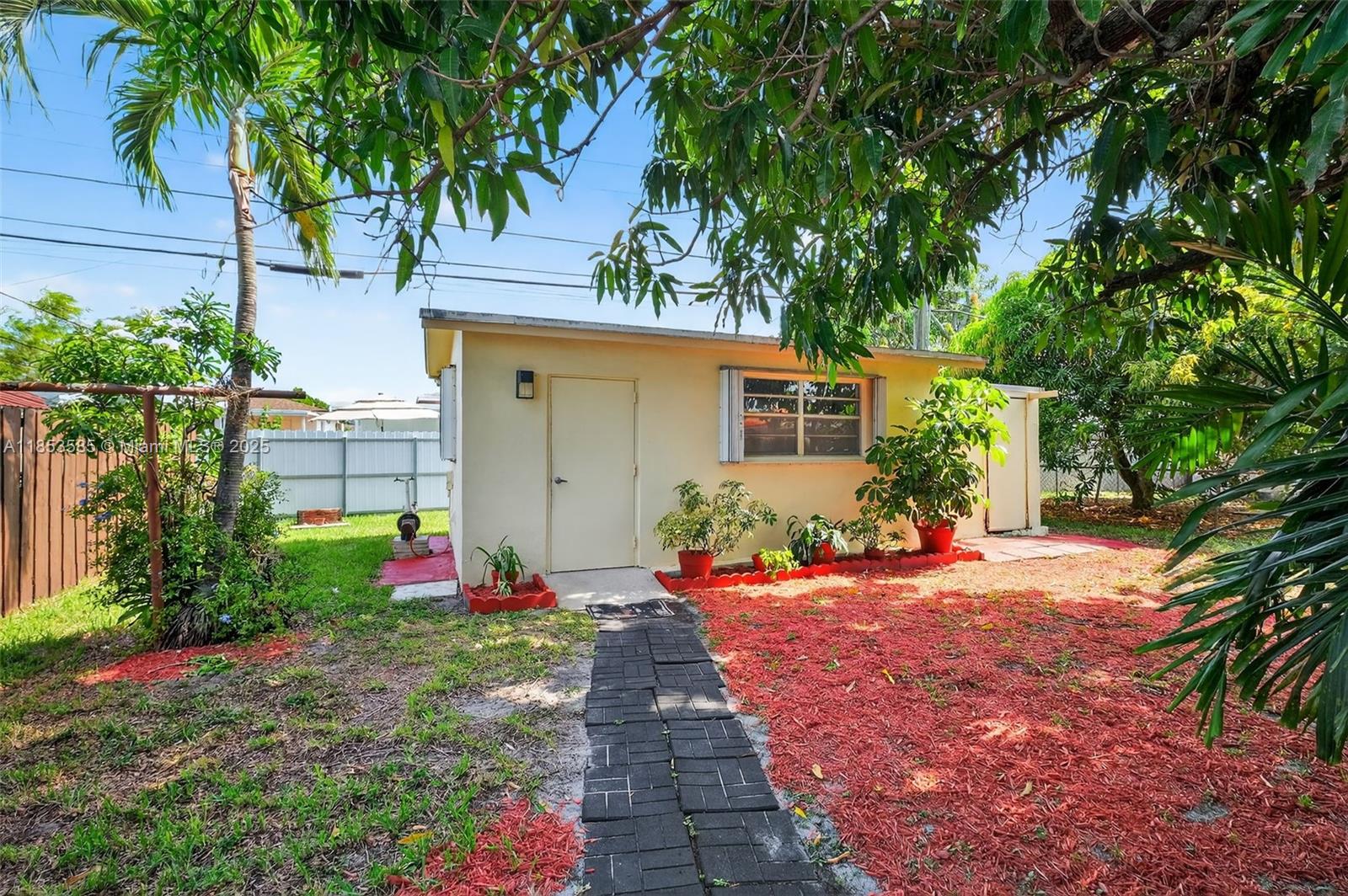 NO ASSOCIATION & NOT A FLOOD ZONE (X)!! East Hialeah charming 1-story beautiful single family home, 1,812 sqft. adj., foyer entrance to 3 bedroom, 2 full bath, plus a separate additional secondary structure as storage/utility in backyard with laundry & bathroom that can be used as work station or converted to guest room. Beautiful upgraded Kitchen with skylight ceiling, tastefully selected granite tops, nice wood cabinets, stainless steel appliances, recessed lighting, snack counter & exit door. Screened enclosed patio wood deck (1995) with ramp. Enjoy a relaxing fenced backyard with space for a pool, with mango & avocado trees, 2 sheds, etc.. Freshly painted, 3-impact glass design doors (2024) & accordion shutters, front porch seating area, concrete driveway, A/C 2020 and Roof 2015.
