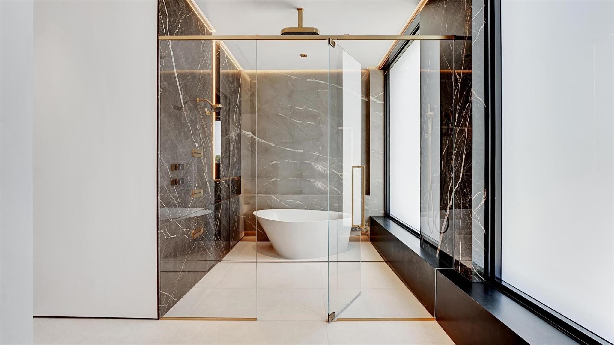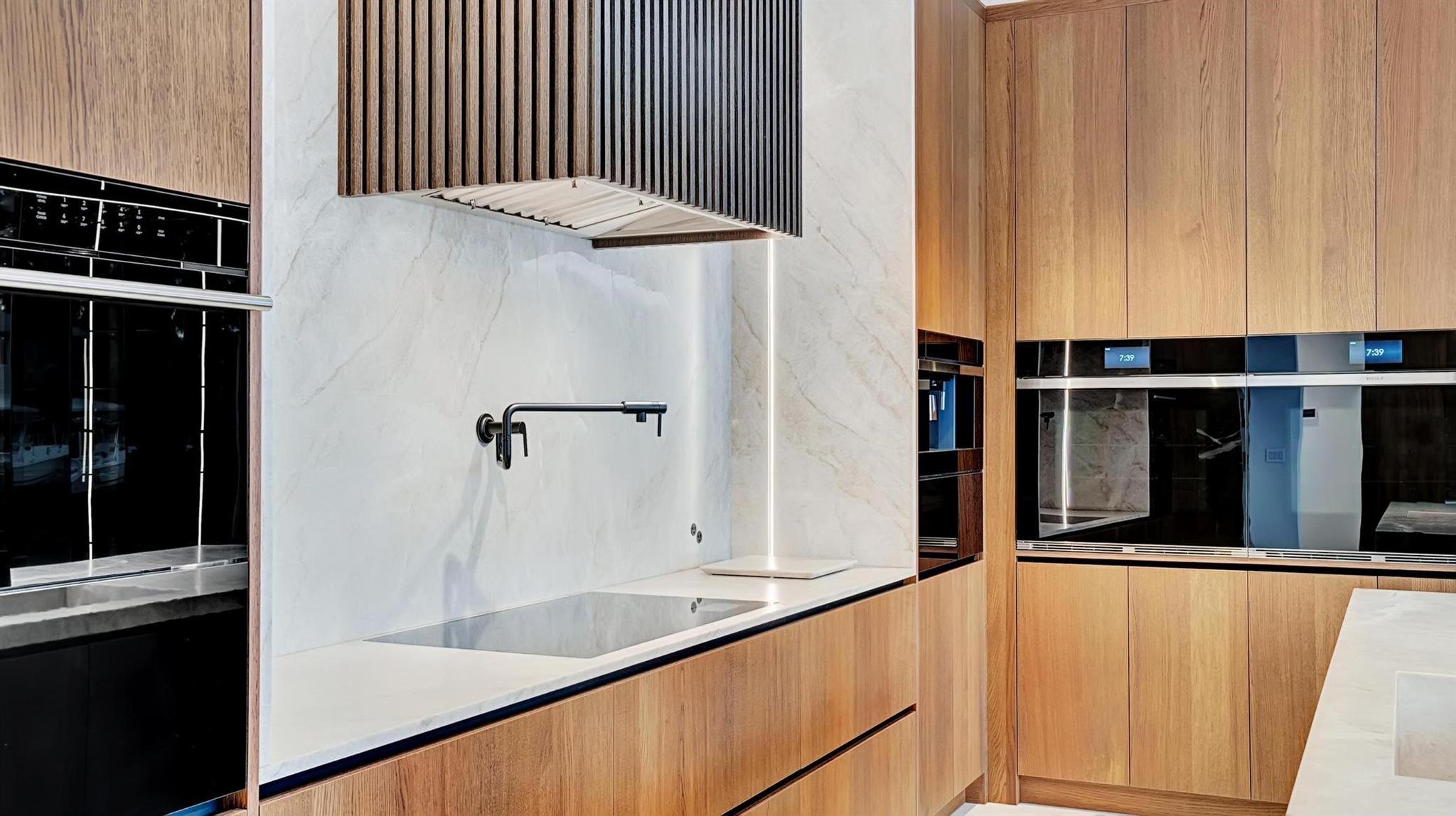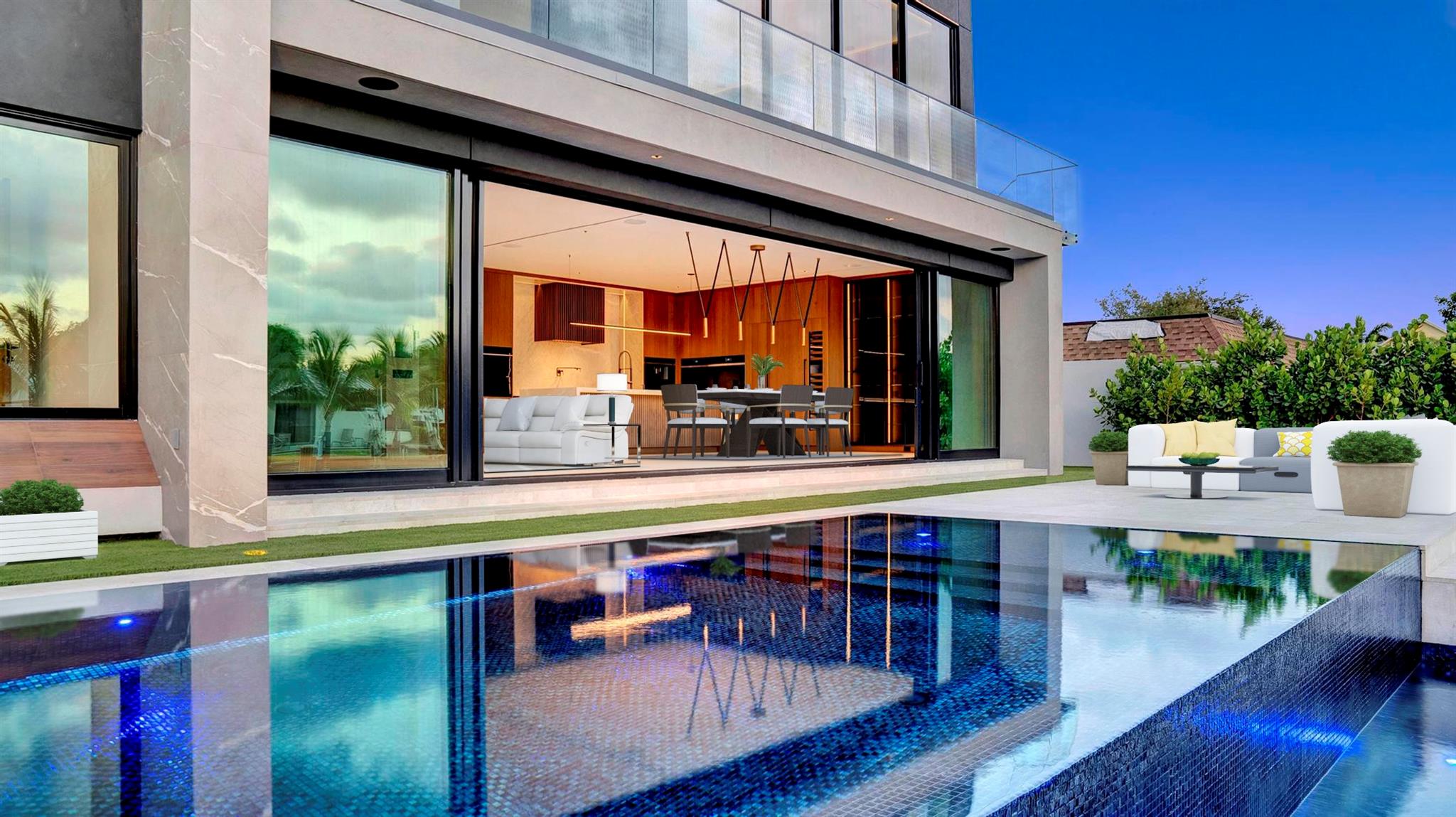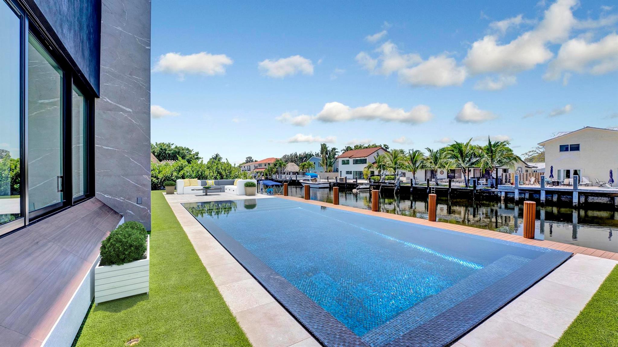 It was all a dream! Brand new construction with every bell and whistle you can dream of. Step through the pivot front door to a jaw dropping floating staircase, earthy tones, good energy, clean lines, this waterfront 5 bed, 5.5 bath is a true showstopper. The custom kitchen has Wolf & Jenn Air appliances, Taj Marble counters, wine and liquor cabinets! The kitchen opens to the living room with Italian oak paneled walls, a fireplace with expansive 33’ of floor to ceiling glass with a view of the pool and canal. The primary suite has custom closets and a bath like you have never seen before, floating cabinets, towel warmers and even an Apple TV in the mirror. Mosaic tile infinity pool, turf yard, glass panels the list goes on. The house is 100% smart with IPADS in each room.