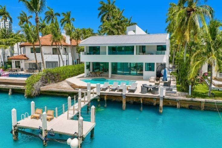 Welcome to waterfront luxury living in the exclusive gated community of North Bay Island. This stunning residence offers unobstructed bay views and a spacious, open layout perfect for both relaxation and entertaining. Featuring 5 bedrooms, 4 bathrooms, and a versatile den that can serve as a fifth bedroom, the home boasts 3,758 sq ft of interior space on an 8,050 sq ft lot. Enjoy a modern open kitchen, two expansive living areas, and a master suite with a jacuzzi and private terrace. The backyard is an entertainer’s dream with a private pool, ample patio space, and a 70-foot dock ideal for a 45’ boat. Additional highlights include closet cabinetry, kitchen island, walk-in closets, and central air and heating. No HOA. Zoned 0900. Built in 1981 with concrete block construction.