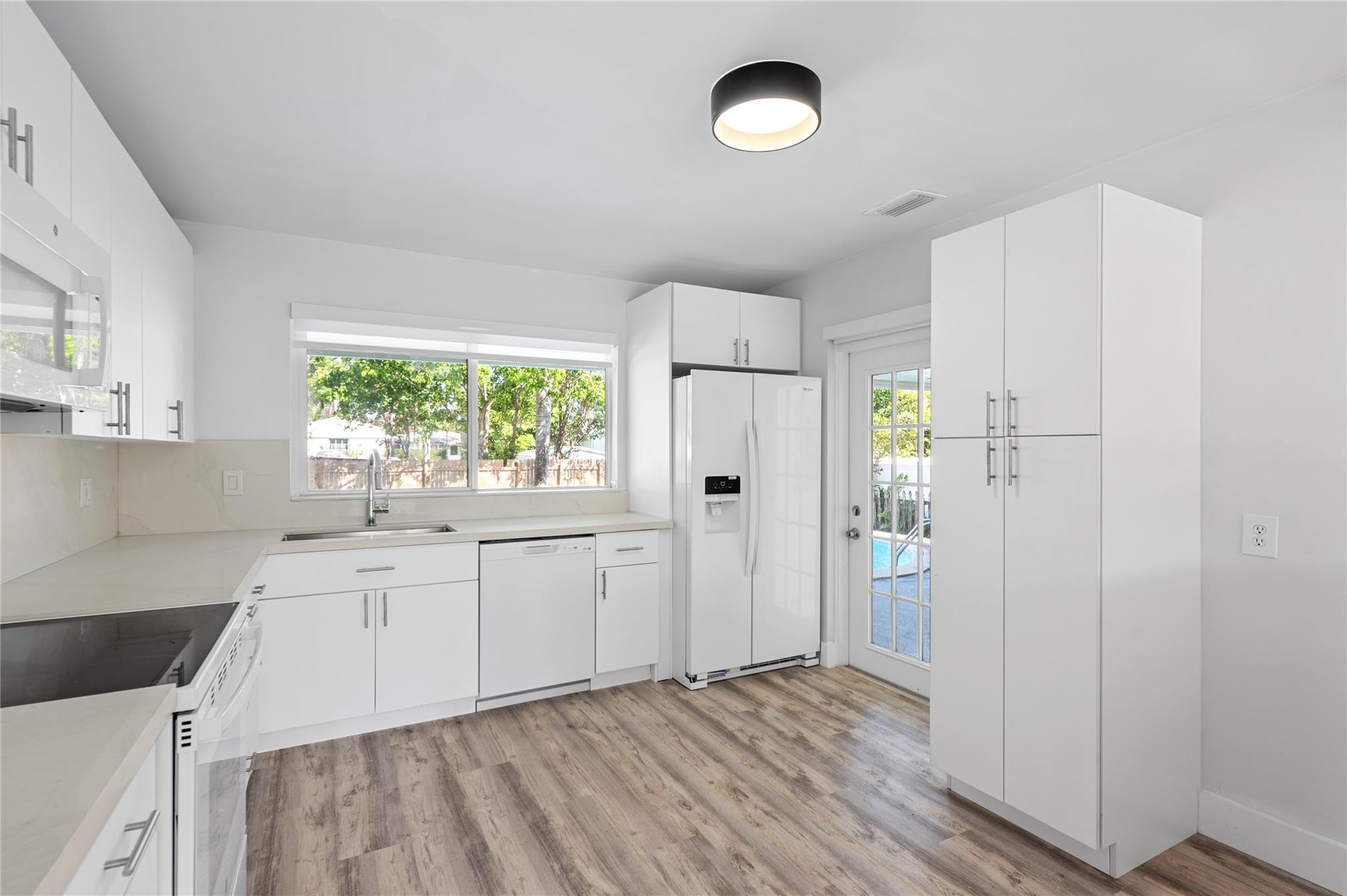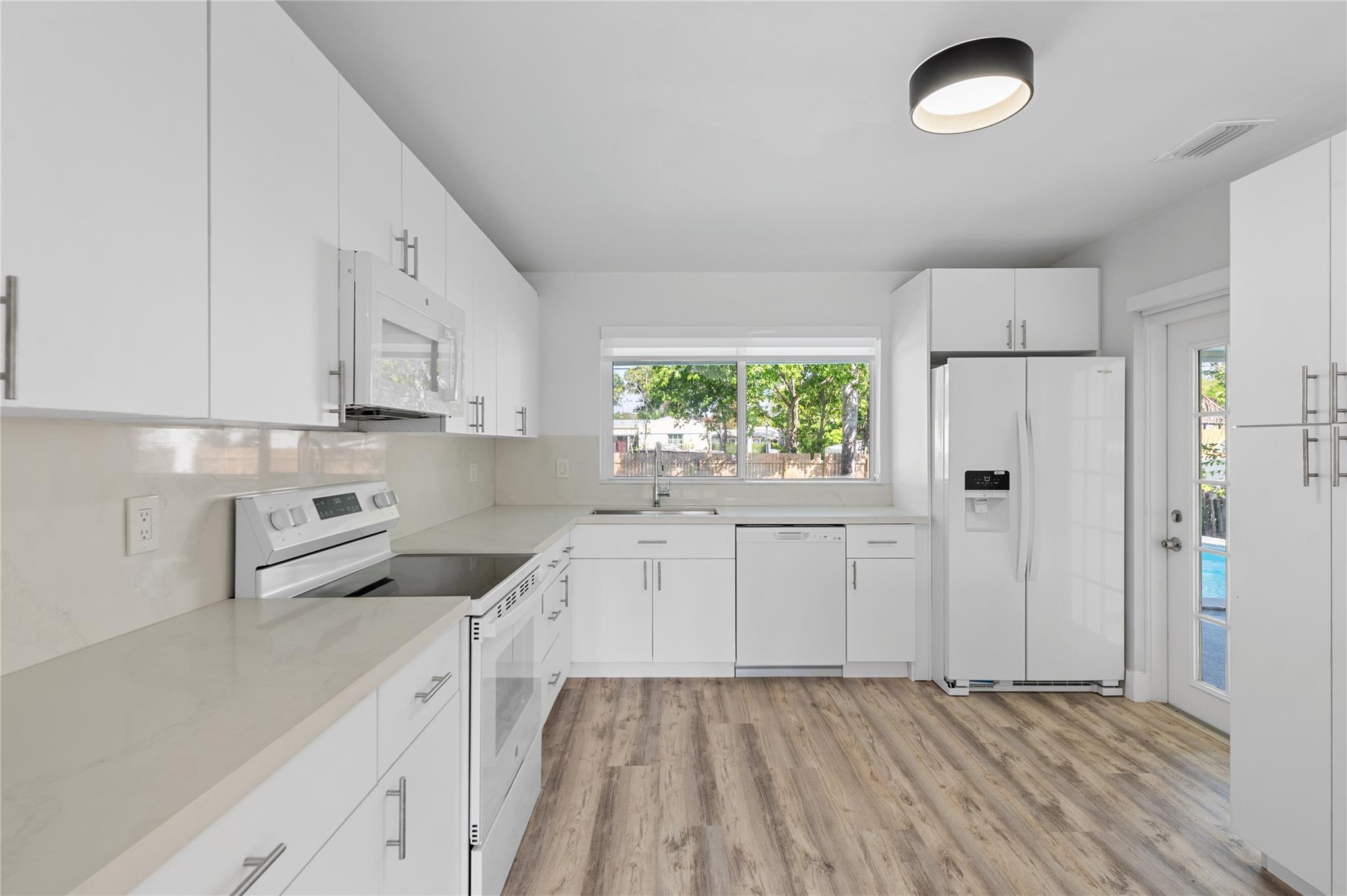 This Hollywood Lakes Gem Features A New Tile Roof! The Property Features A Total Of 4 Bedrooms, 3 Bathrooms, Two Car Garage, Pool And Fenced In Back Yard! Open Kitchen With White Cabinets And Appliances, Pantry & Countertop Bar. Spacious Primary Bedroom Features Sliding Glass Doors To Pool & Patio. Impact Windows (not Throughout). Wood Flooring Throughout! Freshly Painted! Walk In Closets! Laundry Room! Spacious Outdoor Living Area With Pool And Wood Fence, Fabulous For Entertaining! The Main House Features 3 Bedrooms & 2 Bathrooms With Additional 4th Bedroom & Bathroom Connected To House Through Entrance Located Off Covered Pool Patio. AC 2024. Water Heater 2020 - 40 Gal. Amazing Location Historic District Of Hollywood, Walk to Beach, Young Circle & Downtown Hollywood. Virtual Staging.