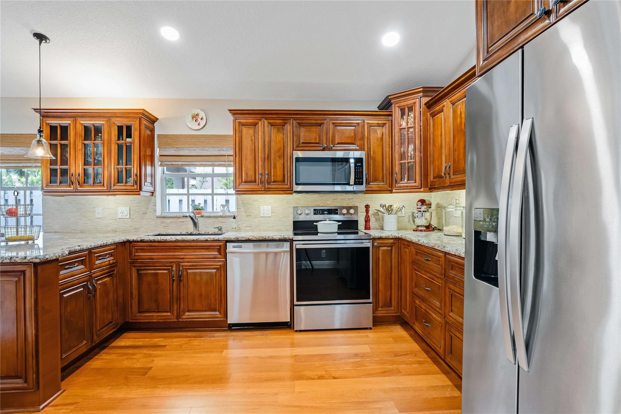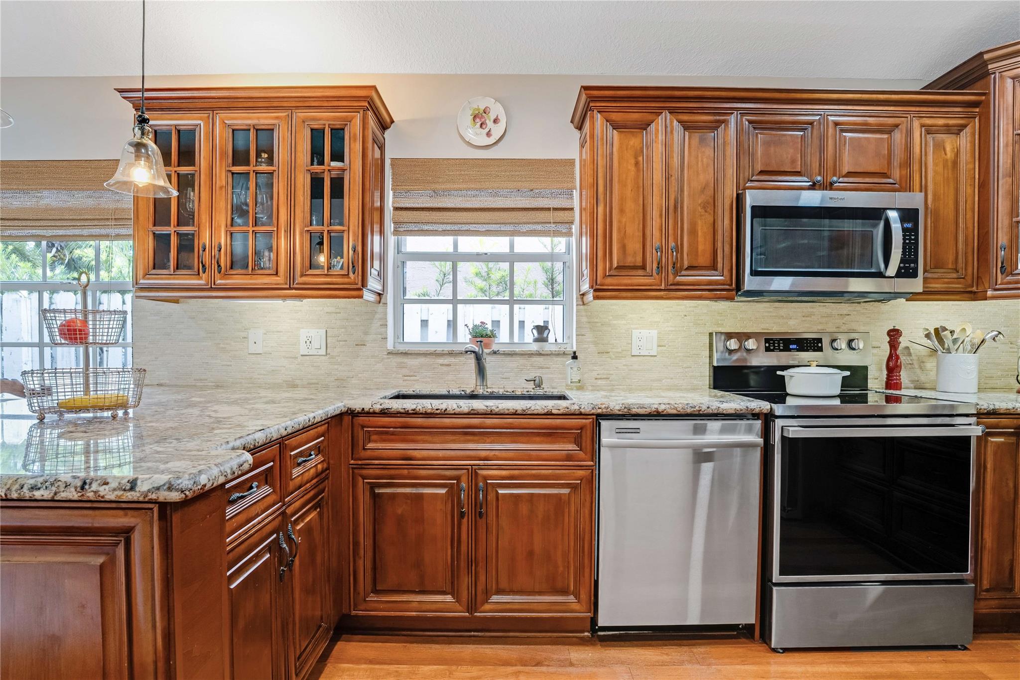 This well-maintained home is located in North Lakes, a highly sought-after neighborhood known for its top-rated schools and family-friendly atmosphere. The HOA, which is one of the lowest in Weston, provides a 24/7 manned guard gate, well-kept neighborhood landscaping and a beautiful community pool. Enjoy custom finishes such as knockdown ceilings, LED lighting, crown molding, hardwood floors, Italian brass fixtures, and travertine tiles. The water heater was replaced in 2021. All interior doors have been upgraded to a solid core, which creates a peaceful, quiet environment. Bathrooms include high-end fixtures and furniture. The master bath has been fully insulated to ensure temperature control. A new roof was installed in 2018 with an added secondary waterproofing on plywood seams.