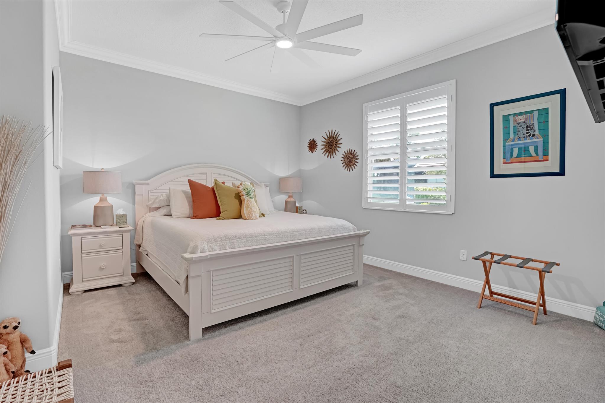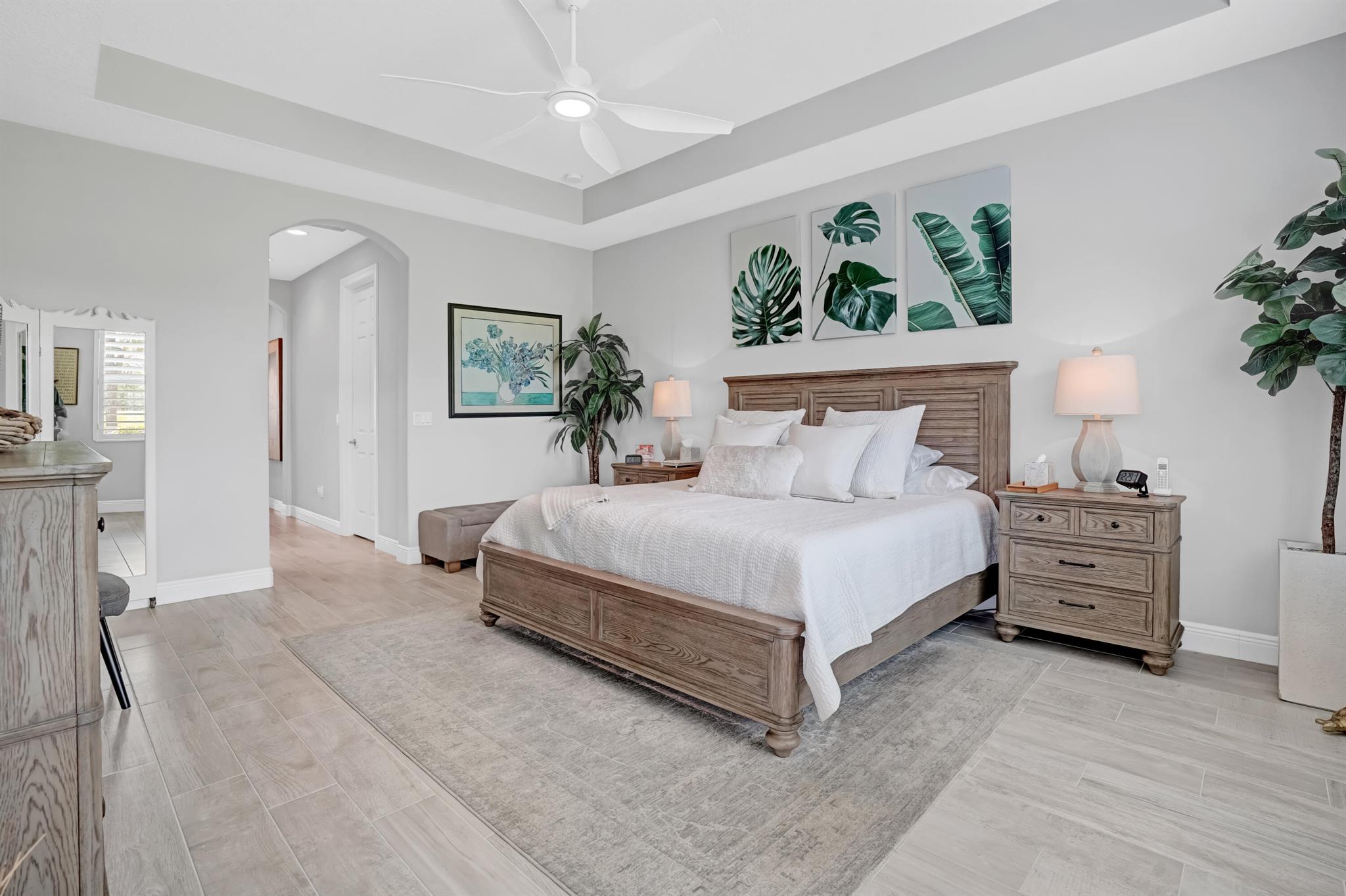 Stunning 3 bedroom, 3 bathroom GHO built pool home in the desirable Meadowood community. Designer style screened-in saltwater and heated pool with bench seating and jets. The home features an open main living area and split bedroom floor plan. Kitchen features quartz counter tops, subway tile backsplash, crown molding on the cabinets, a center island and breakfast nook overlooking the pool. Separate dining room with volume ceilings and archway details. The guest bedrooms feature crown molding and plantation shutters. Primary bedroom retreat is located on its own side of the home. The large bedroom features a tray ceiling, plantation shutters and a door to the back patio and pool area.