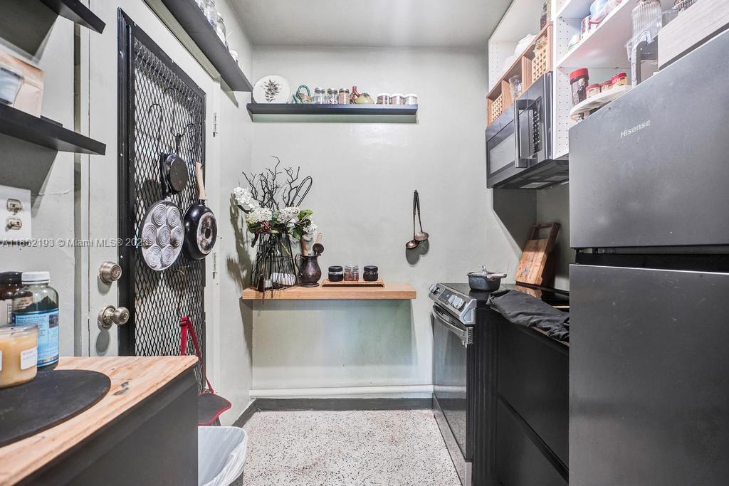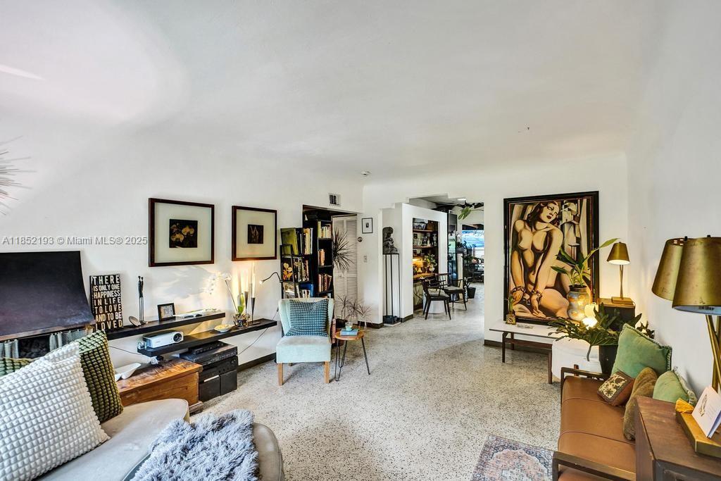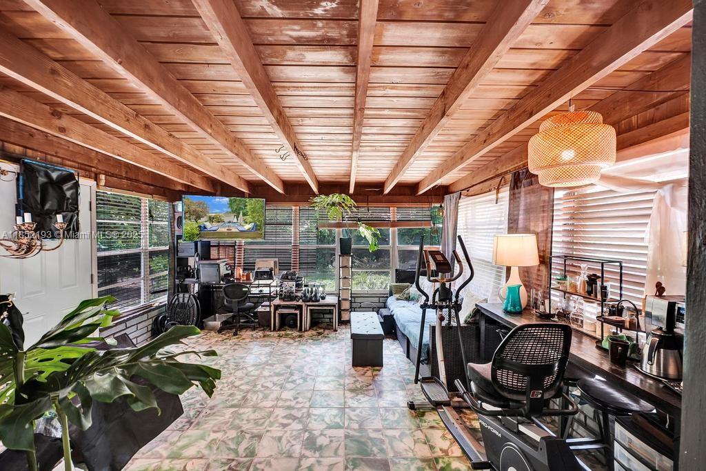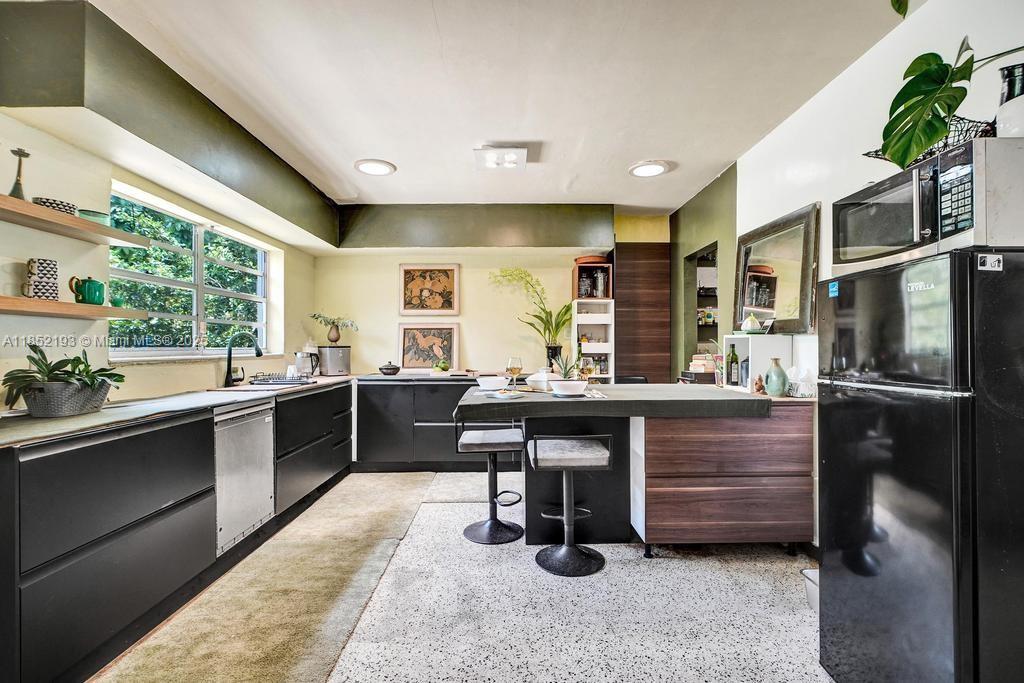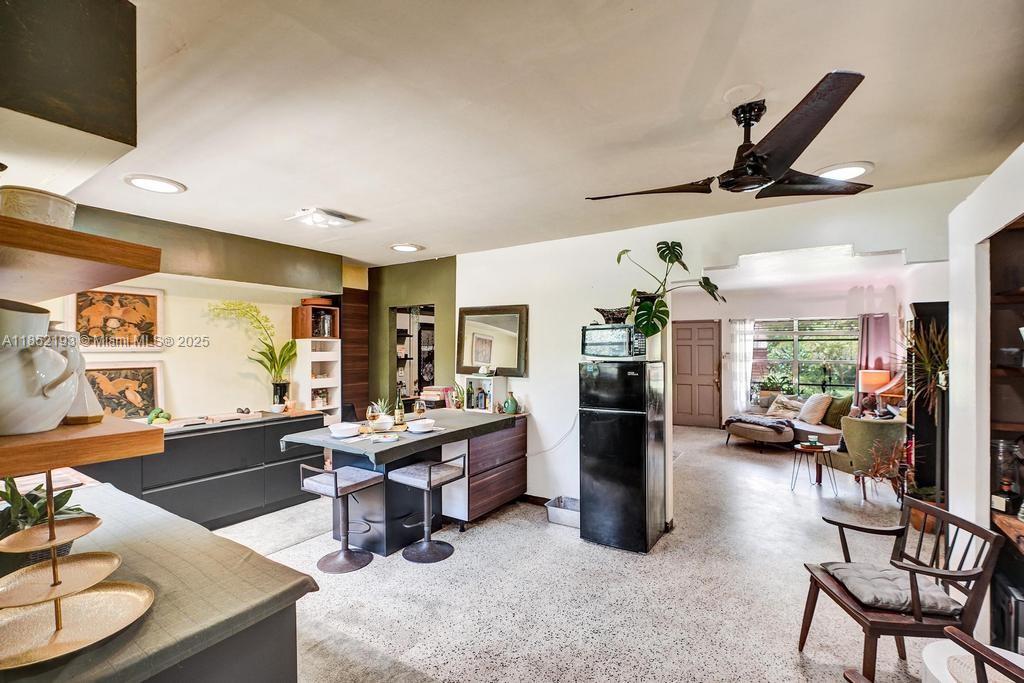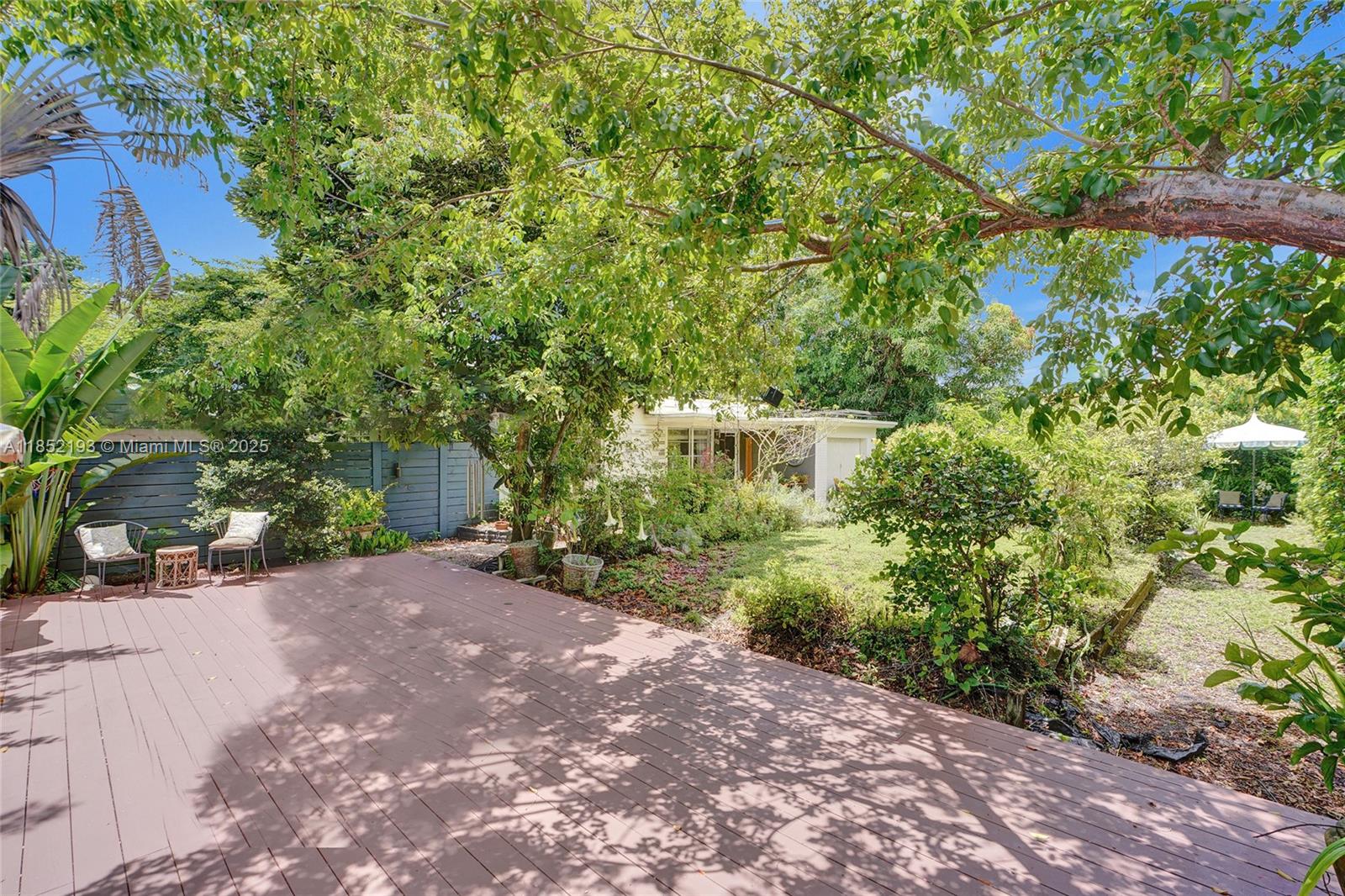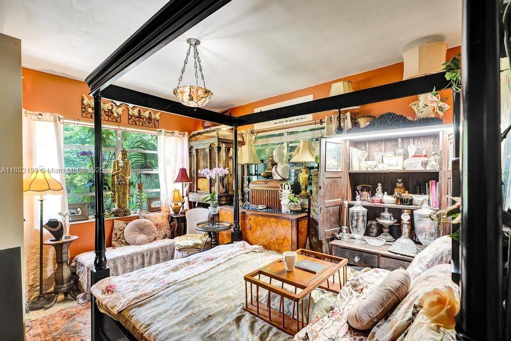 Lush mid-century 2BR/1BA+ large garage on oversized lot in quiet, flood-free Miami enclave. Immersed in a hand-planted butterfly, bee & bird sanctuary w/15+ mature edible trees incl. mango, lychee, macadamia, avocado, starfruit & bay leaf. Privacy—green views from every window, no shades needed! Solar panels, terrazzo flrs, vintage Cuban tile & cedar-beamed ceiling. Cocktail pool. Yoga deck, meditation path, Japanese garden & screened Orchid House ideal for guests. Expansive front feels like a private park perfect for entertaining. Extra drvwy fits RV/boat w/ W+E—rental/income potential. Skylit kitchen, scullery/mini kitchen, cozy guest BR & airy porch. Former wellness retreat w/room for permaculture or dream pool. Rare opportunity to own serene green space just mins from city action