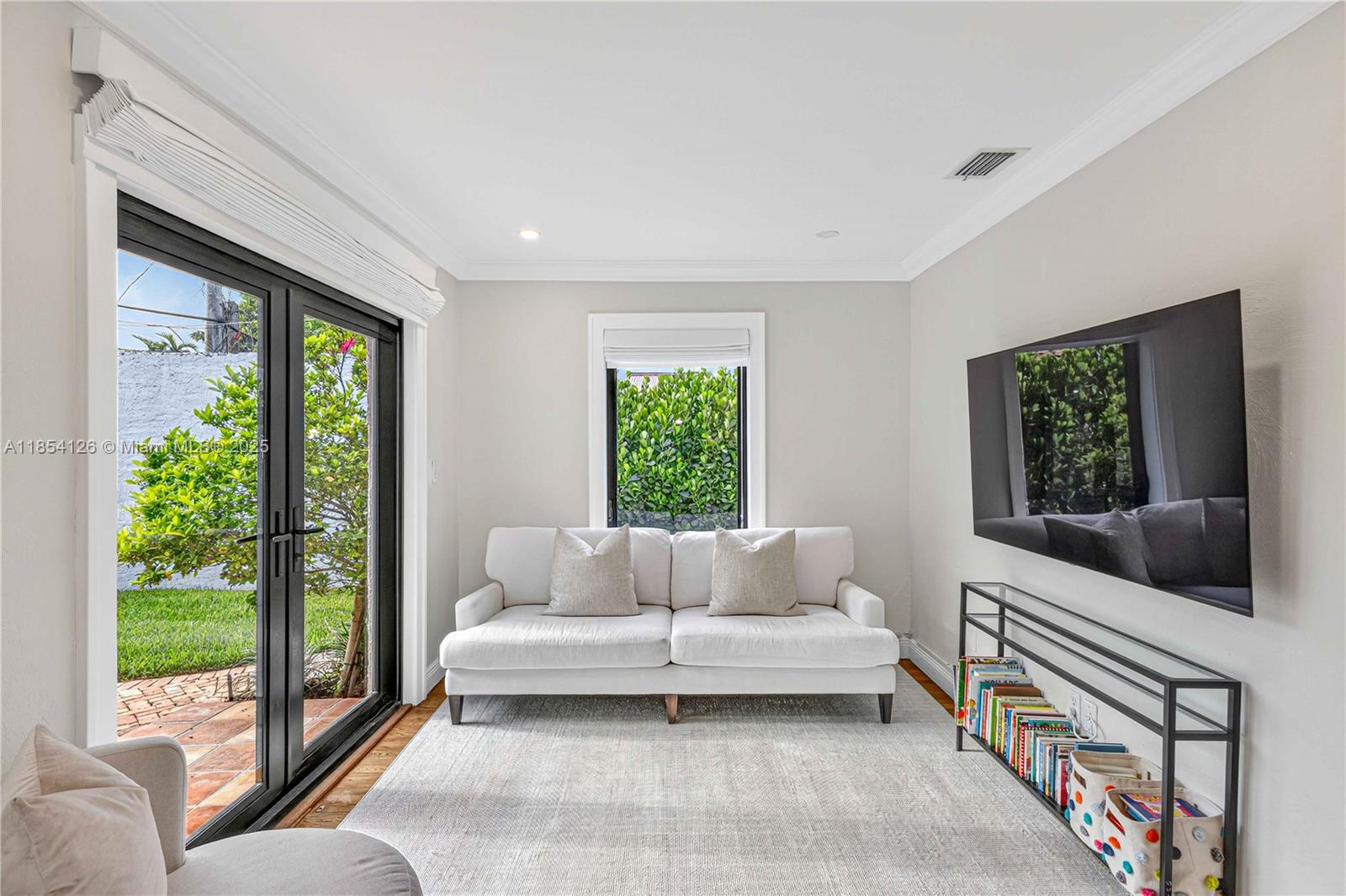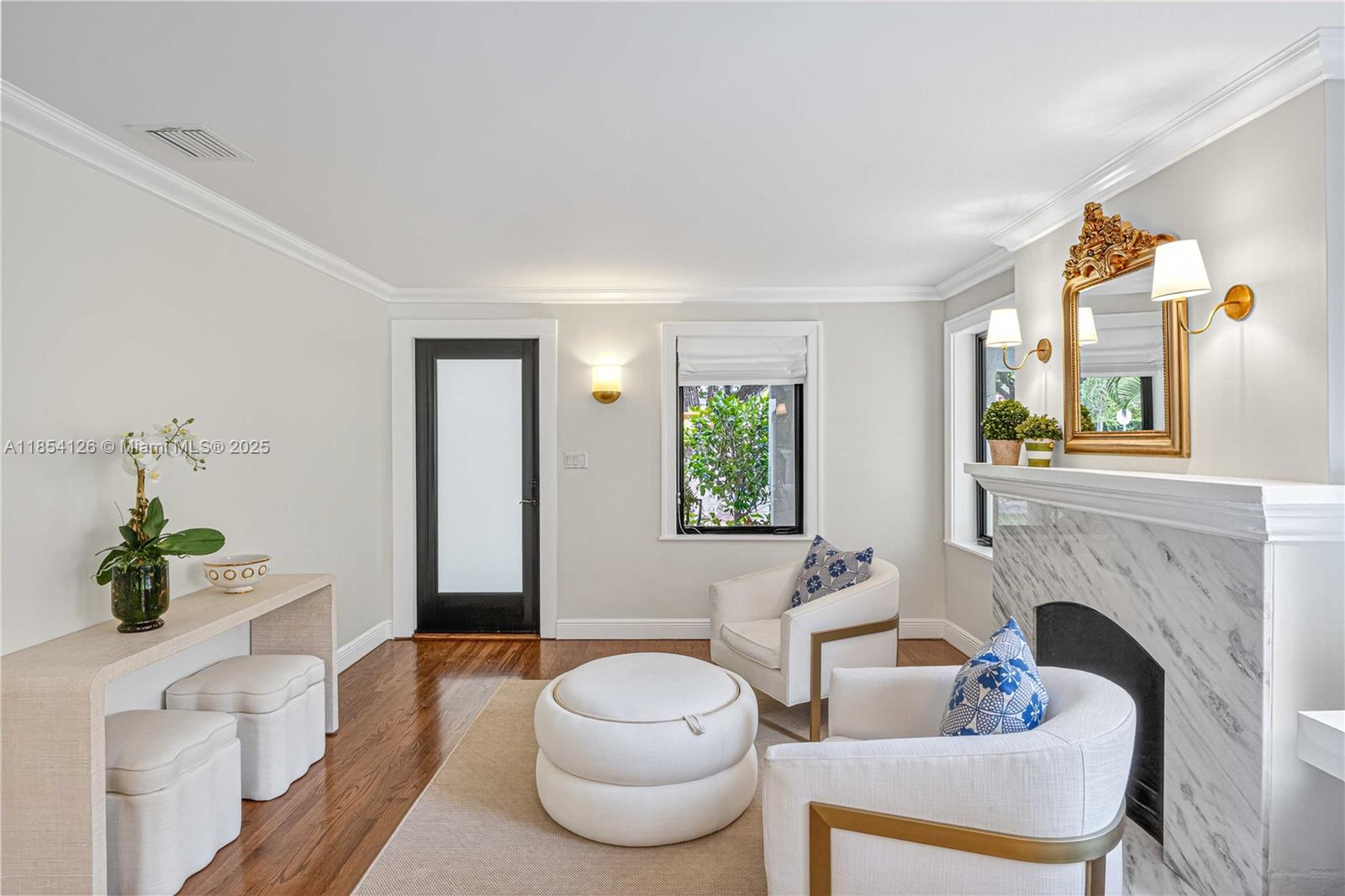 A picture-perfect gem in North Gables! This turnkey home showcases sophisticated living with luxury finishes throughout. From the welcoming covered porch, gleaming hardwood floors flow seamlessly through sun-drenched open living spaces centered around a stunning fireplace. The beautifully renovated chef's kitchen features high-end appliances and abundant storage, while updated bathrooms feature premium contemporary design. No detail was spared including generous custom closets and new impact windows. Step through french doors to enjoy the spacious bricked patio — perfect for entertaining. This exceptional property combines elegance with comfort in a highly desirable neighborhood minutes from top schools, parks and downtown Coral Gables.
