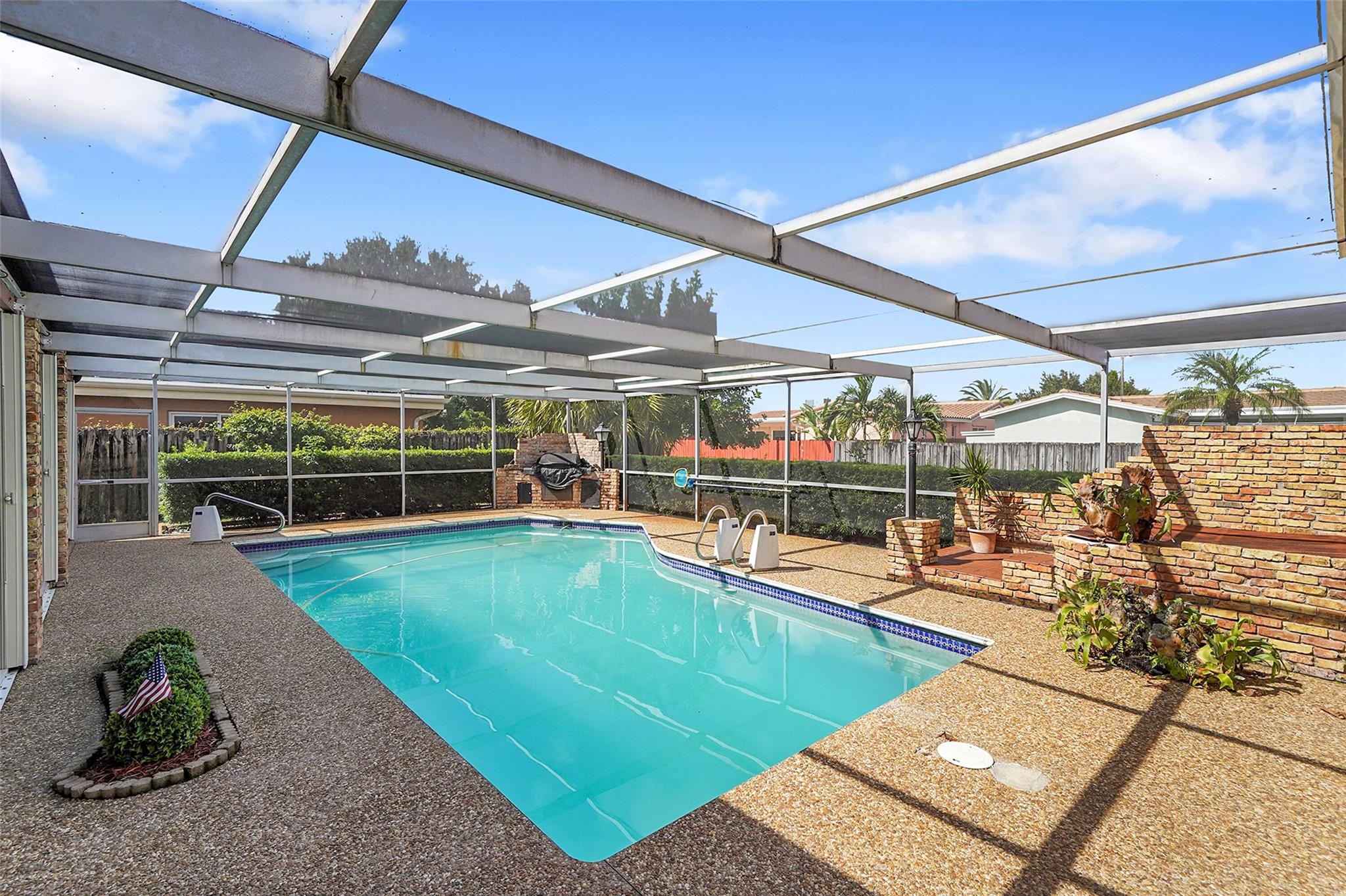 Spacious Hollywood Hills 3 bed 2 bath home with 2650 sq ft. Features wood & granite eat-in kitchen open to family room, game room with wet bar & fireplace, crown molding in living & dining rooms, all bedrooms with walk-in closets, covered patio, beautiful screened in pool with hot tub. New 5 ton A/C 2025, new barrel tile roof 2022, Rolladen Shutters. Near shopping, restaurants, I-95, Airport, blocks to Memorial Hospital, walk to houses of worship.