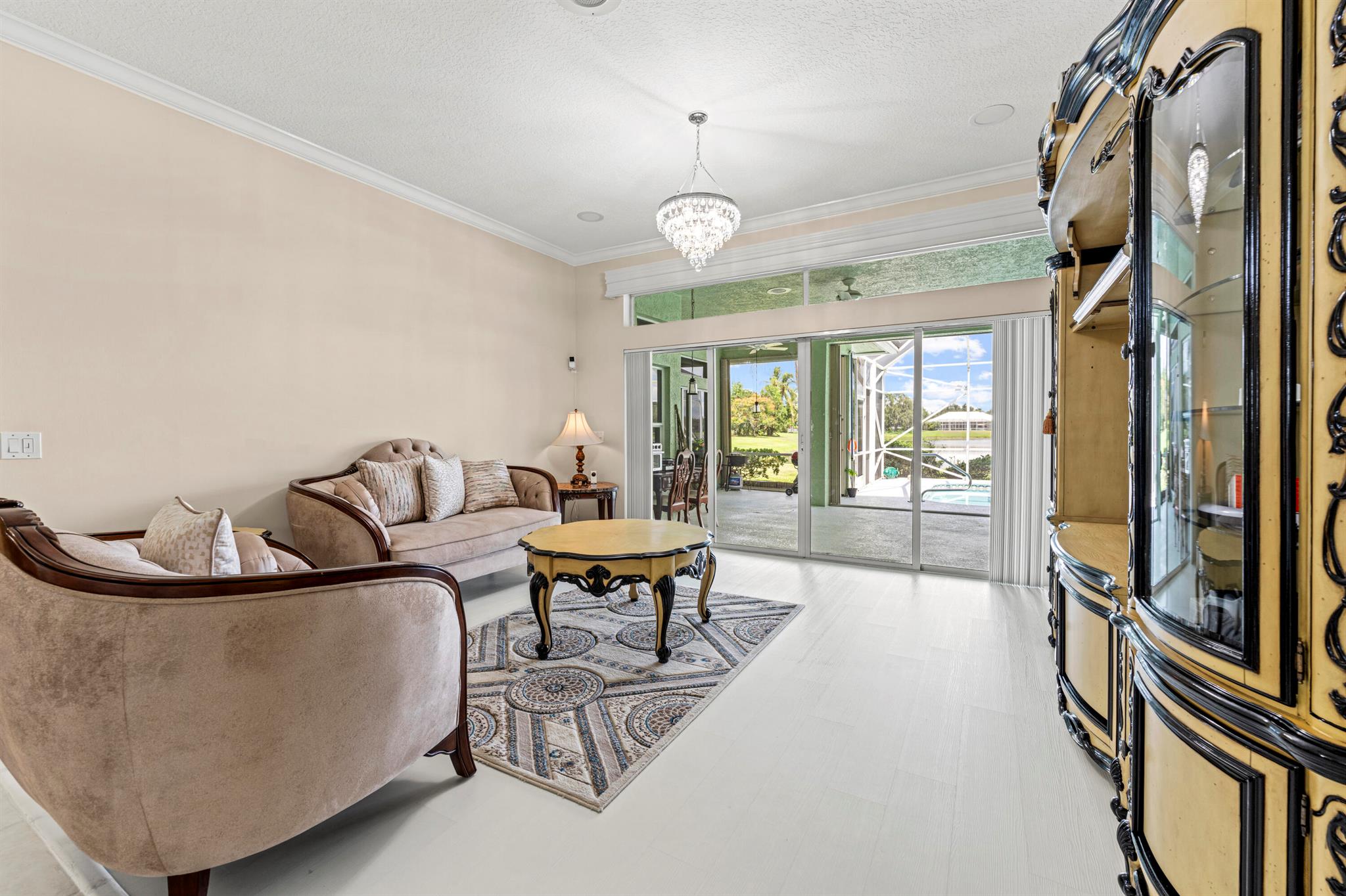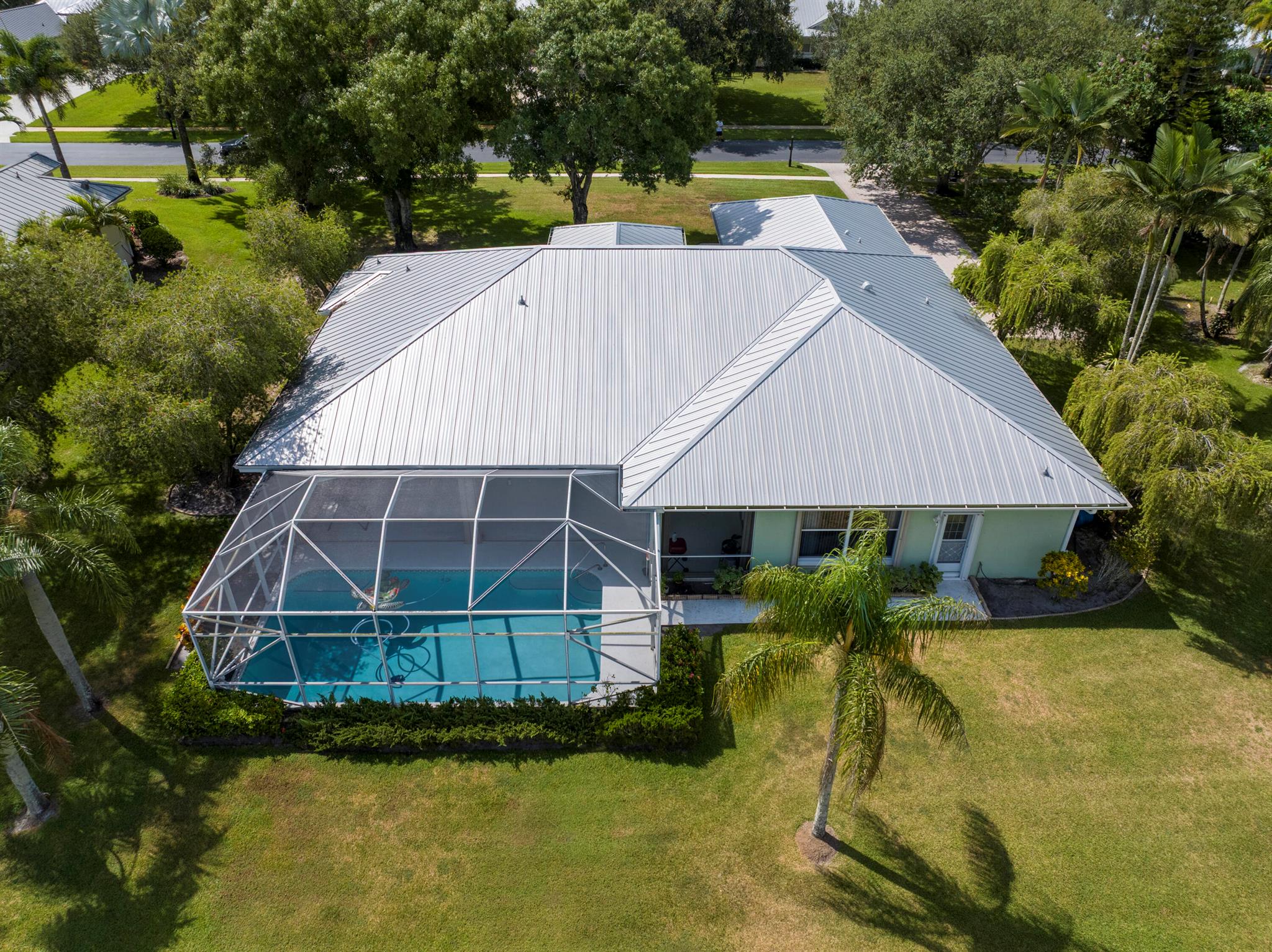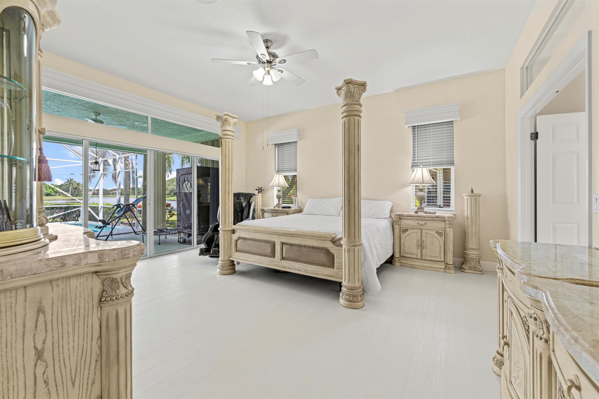 Beautiful lake front oasis situated on an half acre plus property. Glamorous 4 bedroom 3 bath pool home with a den/office. Lovely home with fabulous lake views. This single family home is in the exclusive gated community of Orchid Bay. The kitchen has new cabinets with quartz countertops. New tile floors in the living room, kitchen and dining areas. The bedrooms have been upgraded with quality laminate flooring. There is a large screened patio and pool area. The home is also equipped with a central vacuum system. The air conditioning units were installed this year. The water heater was installed in 2024. The meatal roof was installed in 2020. Multi colored lights surround the pool. New pool pump. High ceilings and many windows that provide substantial light.