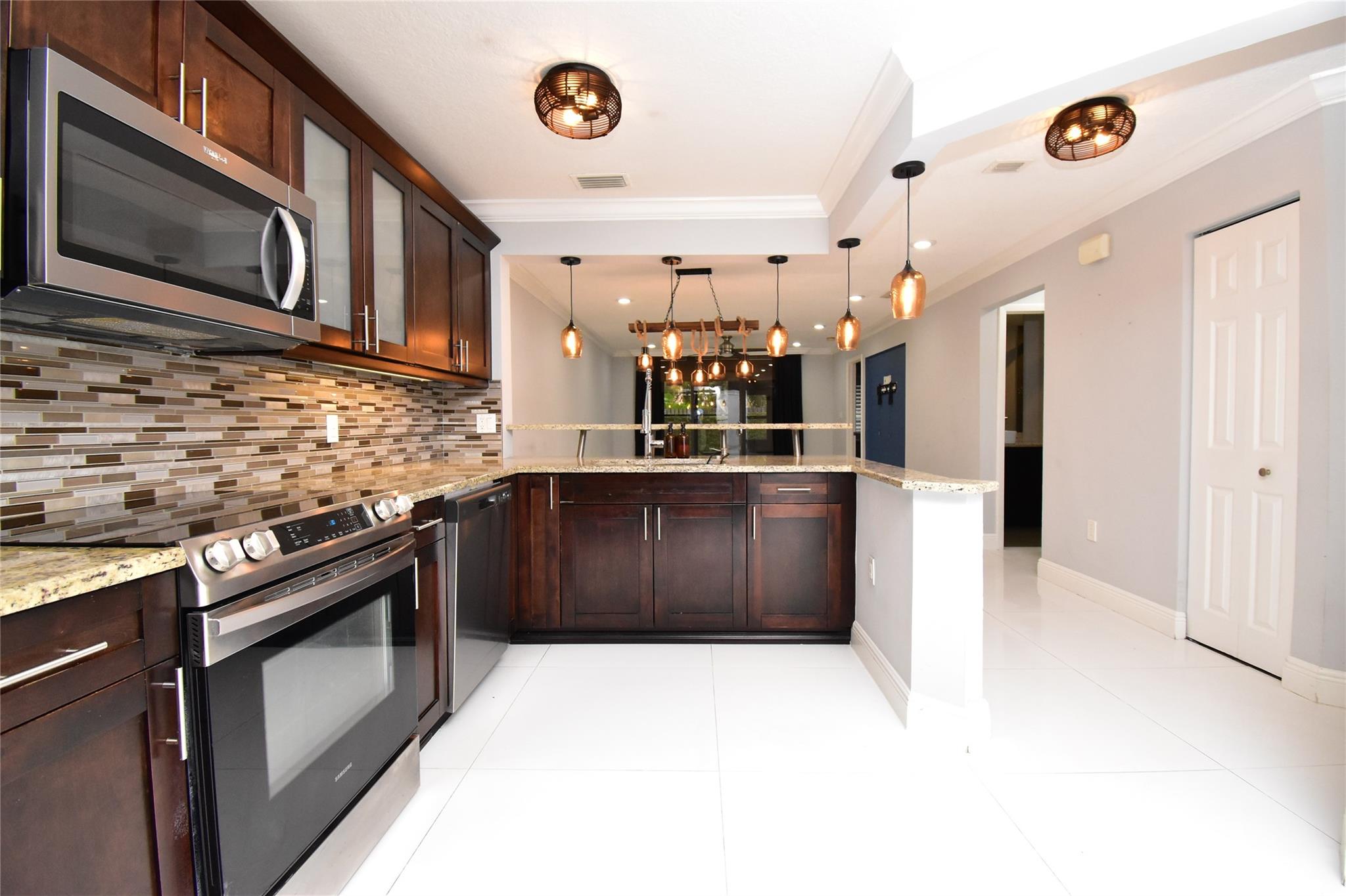 Step into a world of refined comfort and contemporary style. This exquisite home features a gourmet kitchen with sleek stainless steel appliances and chic backsplash, perfect for culinary enthusiasts. Luxurious bathrooms showcase designer touches, including a glass-enclosed shower and mosaic tile accents. The generous bedrooms, adorned with rich hardwood floors and modern ceiling fans, offer tranquil retreats. Bask in the abundance of natural light streaming through plantation shutters, creating an airy ambiance throughout. With its seamless blend of sophistication and functionality, this home is your gateway to an elevated lifestyle in the heart of Plantation, Florida.