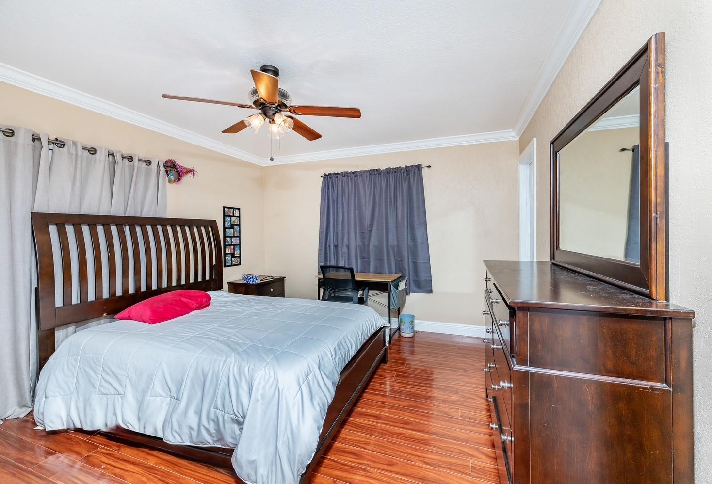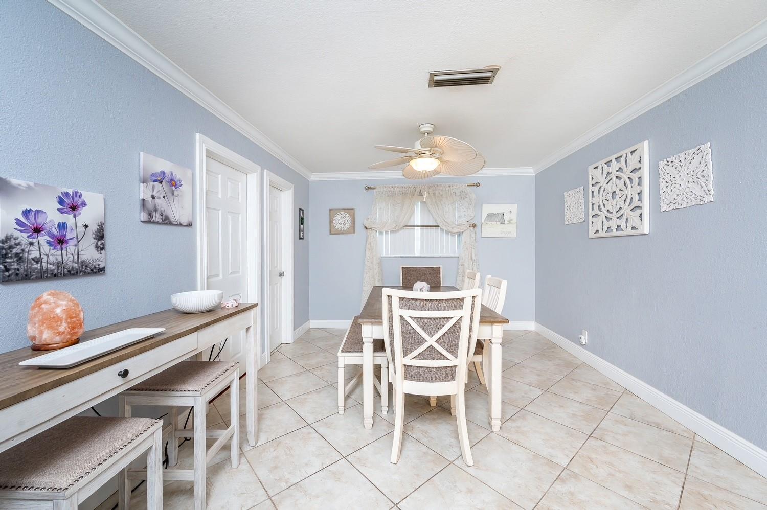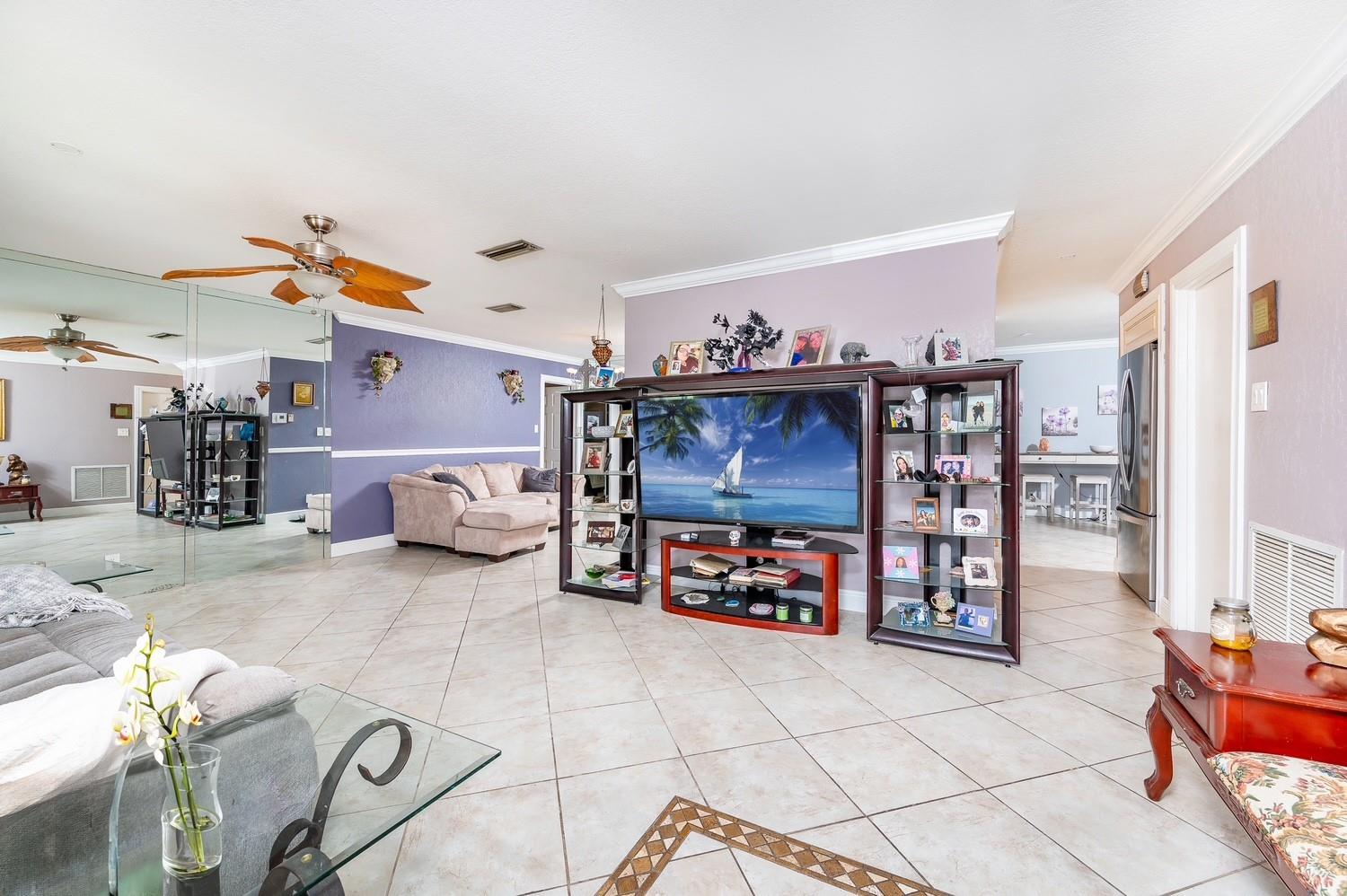 This exquisite home and spacious model with many beautifully upgraded features sit on a remarkable corner Lot backing to open space with no neighbors behind, and ideal plus to walk pets. Upgraded throughout: Dream Kitchen Cupboards, granite counters, gas burner stove, and appliances, 2 baths, huge Master bedroom w/ girl cave. It boasts an open floor plan, attractive ceramic tile flooring, well painted, crown molding, and floor to ceiling mirror. New Windows, Roof and A/C approximately 2017, 2019, tankless water heater, 2 refrigerators, Community Pool and Clubhouse. Note: Family rm wall A/C unit not working. Association requires minimum 700 credit score. Standard PG 3 requires all buyers to make capital contribution at closing. Easy to show. One block to main.