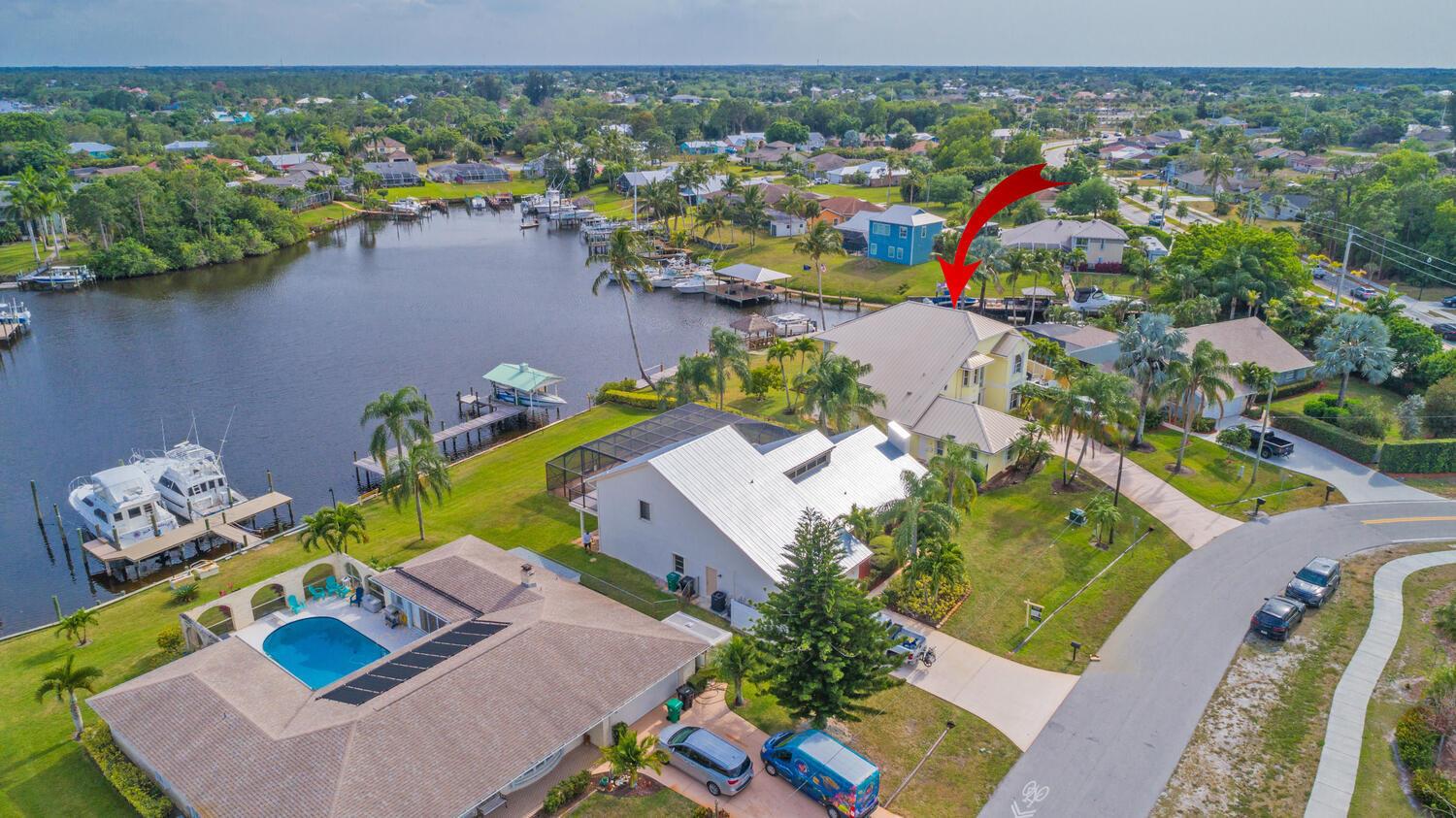 Enjoy tranquil water views and beautiful breezes from the back porch of this gorgeous home that sits on a cove in the St. Lucie River. This custom built 2 story 3/2.5 home has 180' of waterfront complete with dock, tiki hut and boat lift. OCEAN ACCESS. Amenities include full house generator, first floor master bedroom suite, office with french doors, oversized craft room with its own entry door which can be easily converted into guest suite, oversized air conditioned 2 car garage. Fully air-conditioned attic/storage. Accordion storm shutters. Metal roof 2016. Two A/C units 2014. Laminate and tile floors throughout and loft area and porch with amazing views of the river. Newly installed elevator. Some pictures have virtual staging