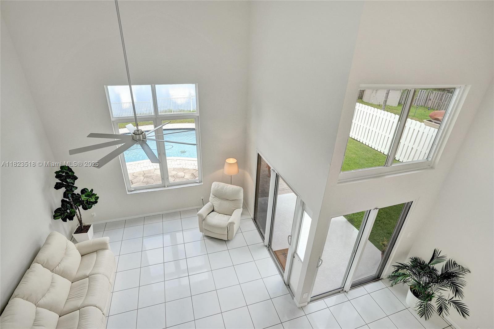 Bright, spacious, and well-maintained 3-bedroom + den, 2.5-bathroom home featuring a pool & serene lake views. Located in a cul-de-sac and tranquil neighborhood, this home offers both comfort and potential. Freshly painted and popcorn removed. The original spacious kitchen & two bathrooms provide an excellent opportunity for the new owner to renovate and design to their taste. Enjoy peace of mind with a New Roof (2024) and A/C (2022). Impact Windows throughout. The Volume ceilings enhance the natural light and create an open, airy feel. Step outside to your private fenced backyard, perfect for relaxing or entertaining. Whether enjoying quiet mornings alone or hosting family and friends, this home provides the ideal setting. Conveniently located near parks, shopping, dining, and more.