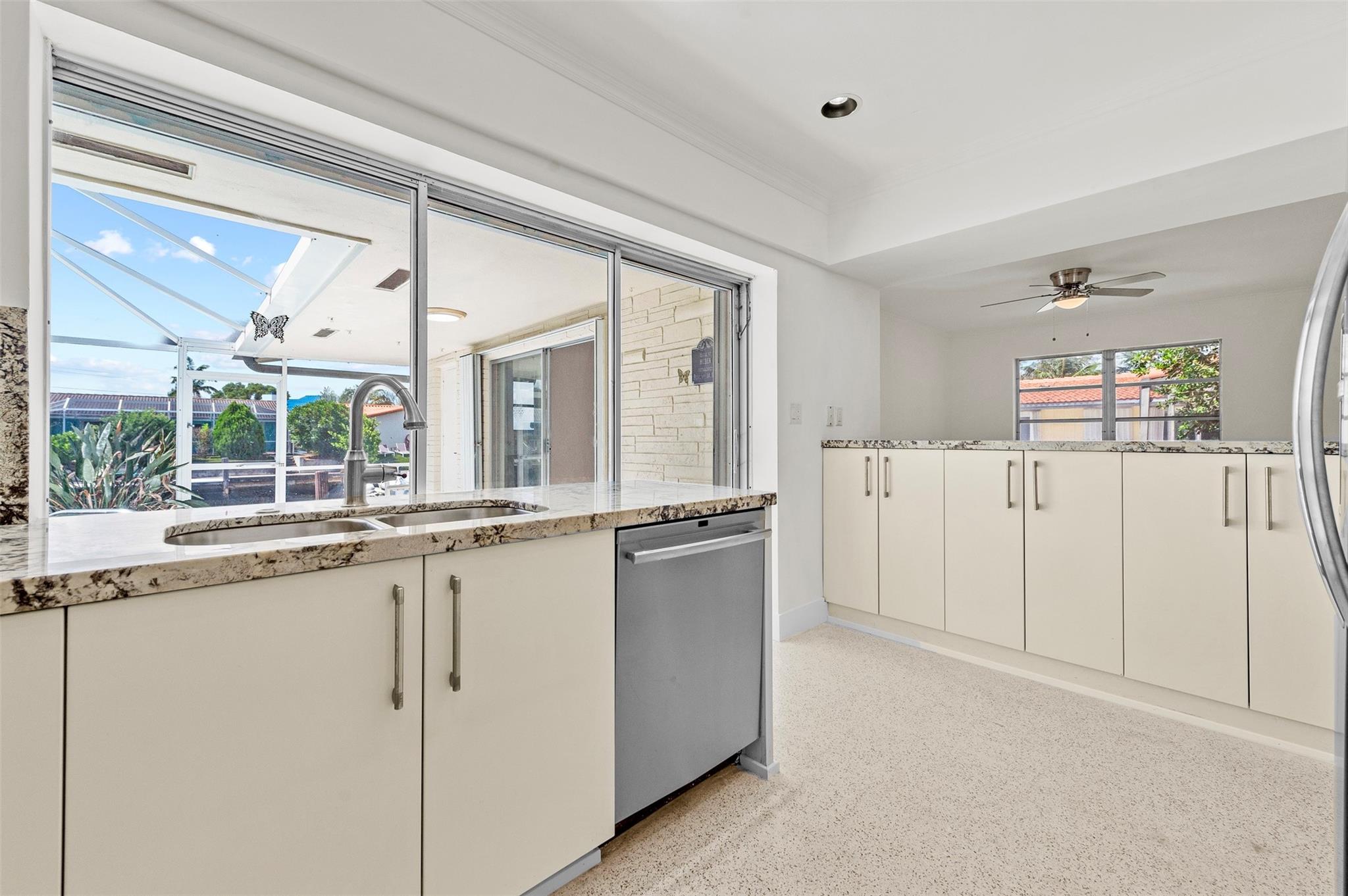 Bring your boat and vision! This waterfront gem in a quiet Fort Lauderdale neighborhood is priced below market value and loaded with rare features. Enjoy 75 feet of seawall, a 22 ft boat dock (lowest bridge clearance 7 ft, 5 bridges to the ocean), and a screened pool perfect for relaxing or entertaining. Home features include original polished terrazzo floors, new central A/C (2023), an upgraded kitchen, accordion hurricane shutters on all windows, and a newer roof for peace of mind. You’ll also find a natural gas Generac generator that starts automatically during power outages, an upgraded electrical system, a two-car garage, and a working sprinkler system. Quiet street yet close to beaches, dining, shopping, and major highways.