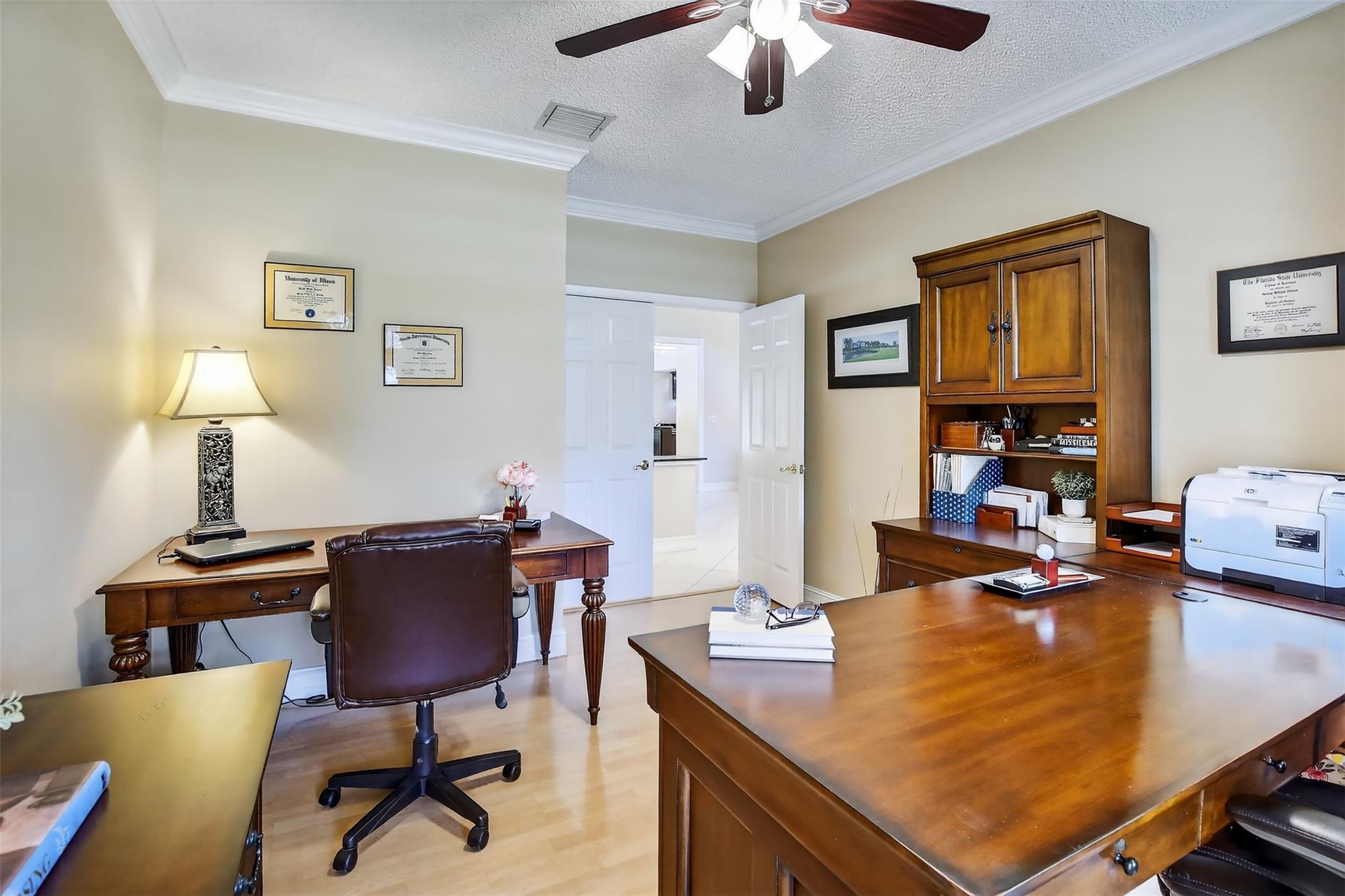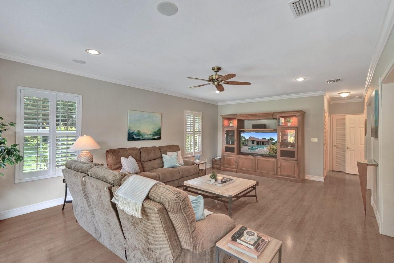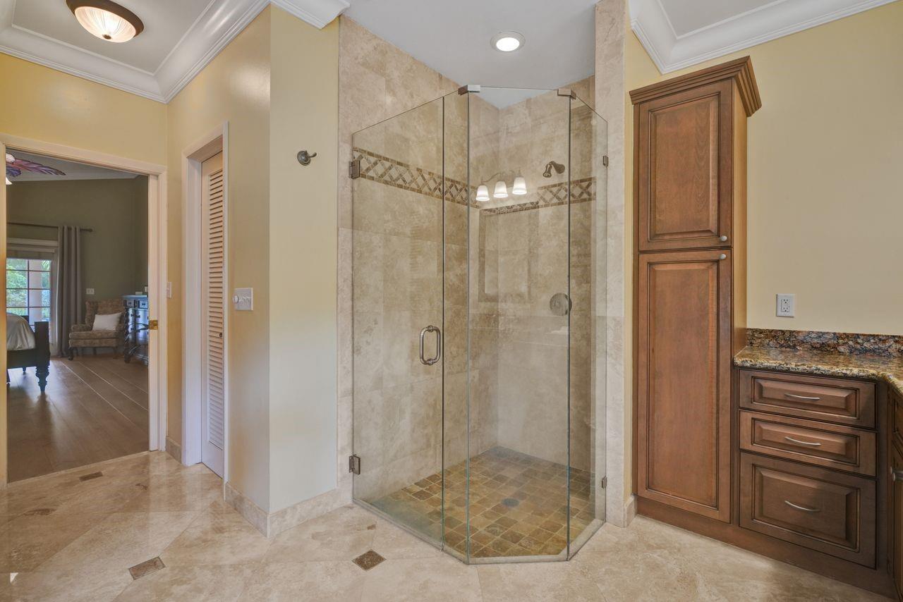 Sprawled on an expansive builder's acre on a cul-de-sac street in Shenandoah’s most exclusive enclave, this beautiful, immaculate 4+Den/3BA home of almost 3500sf, with timeless charm & inviting comfort, is set back from the road with manicured grounds, a long driveway, travertine walkway & magnificent, fenced resort-style pool/spa area, outdoor lighting & tropical landscape. Gracious formal areas, charming atrium w/fountain. Granite kitchen with white cabs, wine fridge, double ovens & breakfast area overlook the generous covered patio w/twinkling lights. Family Rm w/wet bar leads to a spacious recreation room, perfect as game or media. Plantation shutters, new flooring in primary suite, new ACs & oversized 2.5CG. Welcome home to peaceful country living, just minutes from city conveniences.
