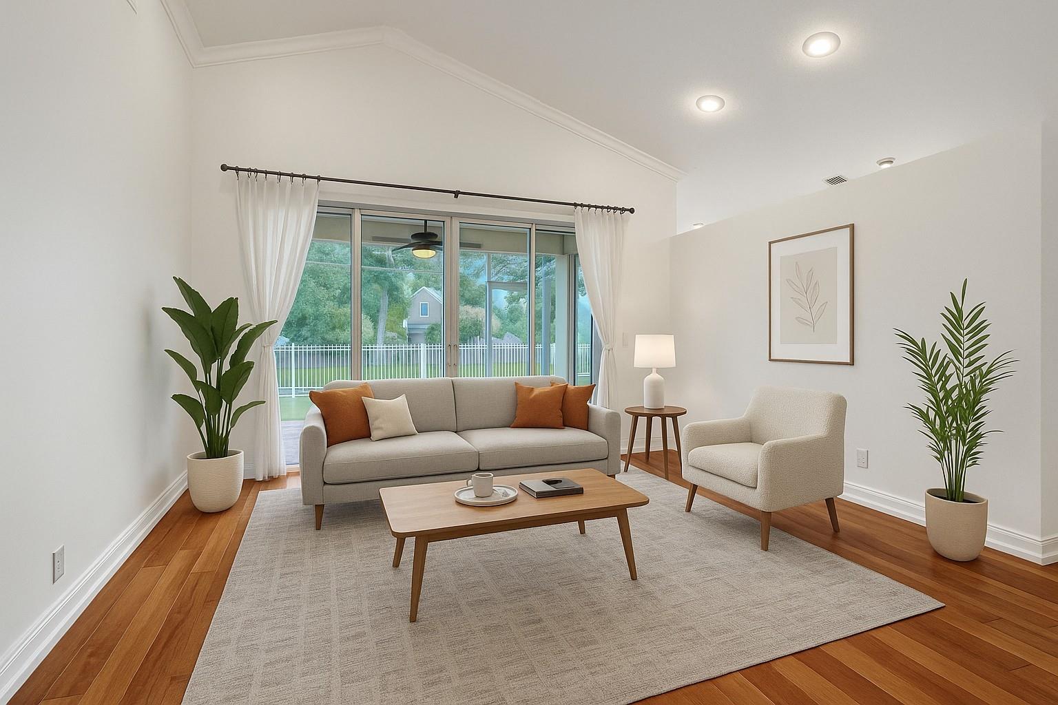 Lakefront Paradise in Plantation – Don’t Miss Out! Fall in love with this immaculate 3BR/2BA split-floorplan gem, perfectly tucked away in a quiet cul-de-sac with panoramic lake & fountain views from the screened patio, family room, kitchen, and spacious primary suite. 3rd bedroom (no closet) is perfect for a home office or den. Loaded with upgrades – impact windows, vaulted ceilings with elegant crown molding, rich Brazilian cherry wood floors, and a chef’s kitchen with stainless steel appliances, wood cabinetry, induction cooktop. Enjoy peace of mind with a NEW A/C (2023) plus a fenced yard and brick paver patio for effortless outdoor entertaining. 2-car garage. Lawn maintenance, 3 Community Pools included in HOA. Across from Diecke Park-Tennis, BB, Playground, Volleyball, and more!