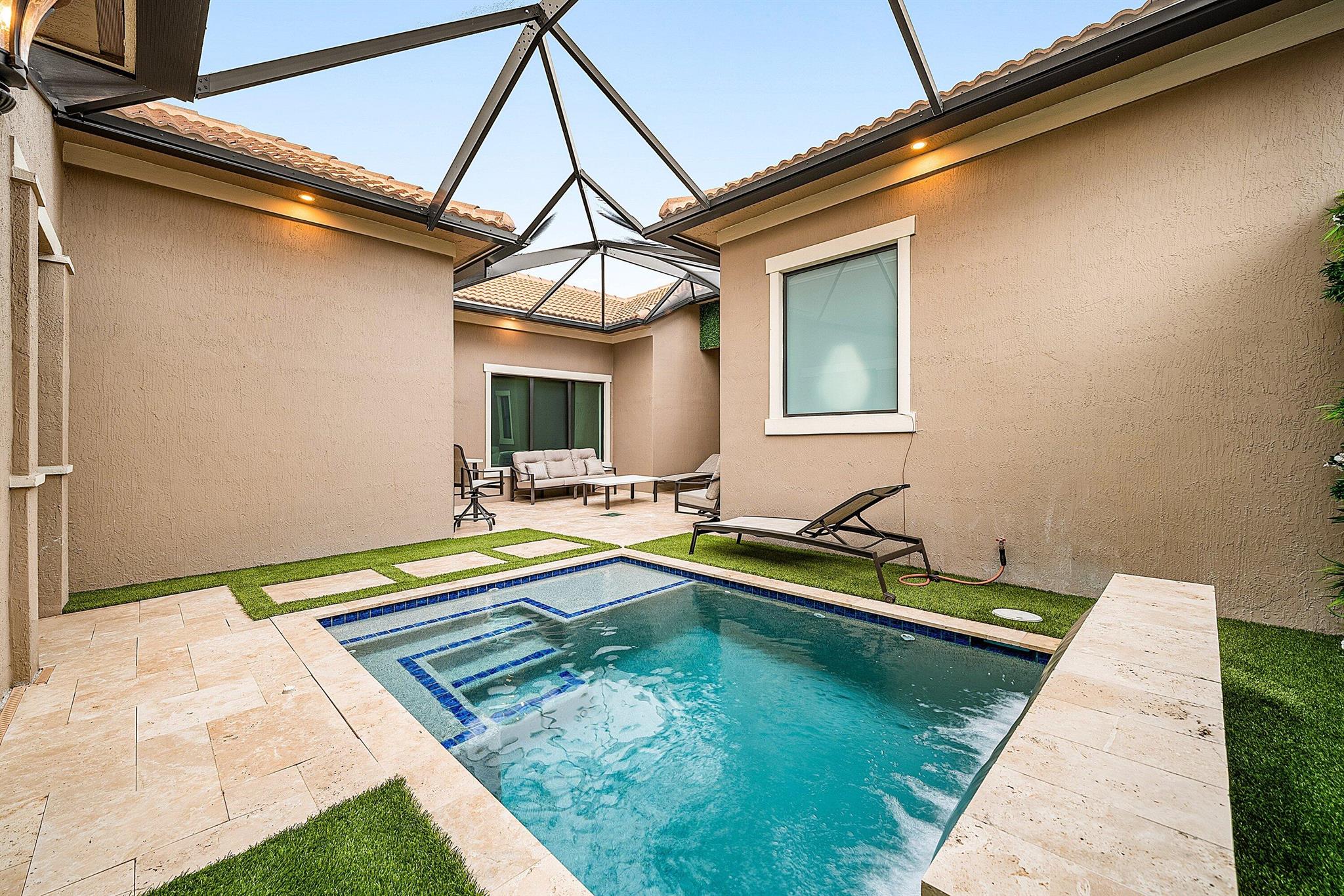 Step into luxury with this beautifully upgraded Landon model--3-bedroom, 3.5-bath courtyard home with private casita--designed for effortless indoor-outdoor living and entertaining. The heart of the home is a gorgeous gourmet kitchen, perfect for hosting, with seamless flow to the spacious living areas and screened travertine courtyard with private pool. Enjoy the convenience of power blinds throughout, huge walk-in closets, and a detached casita with its own new Daikin A/C. The garage is fully insulated (including the door), air-conditioned, and finished with epoxy floors. Recent updates include all-new landscaping, LED eave lighting, R.O. and water softener systems, UV air purification, and a whole-home generator. The roof, house exterior, and pavers were cleaned and sealed in 2025.