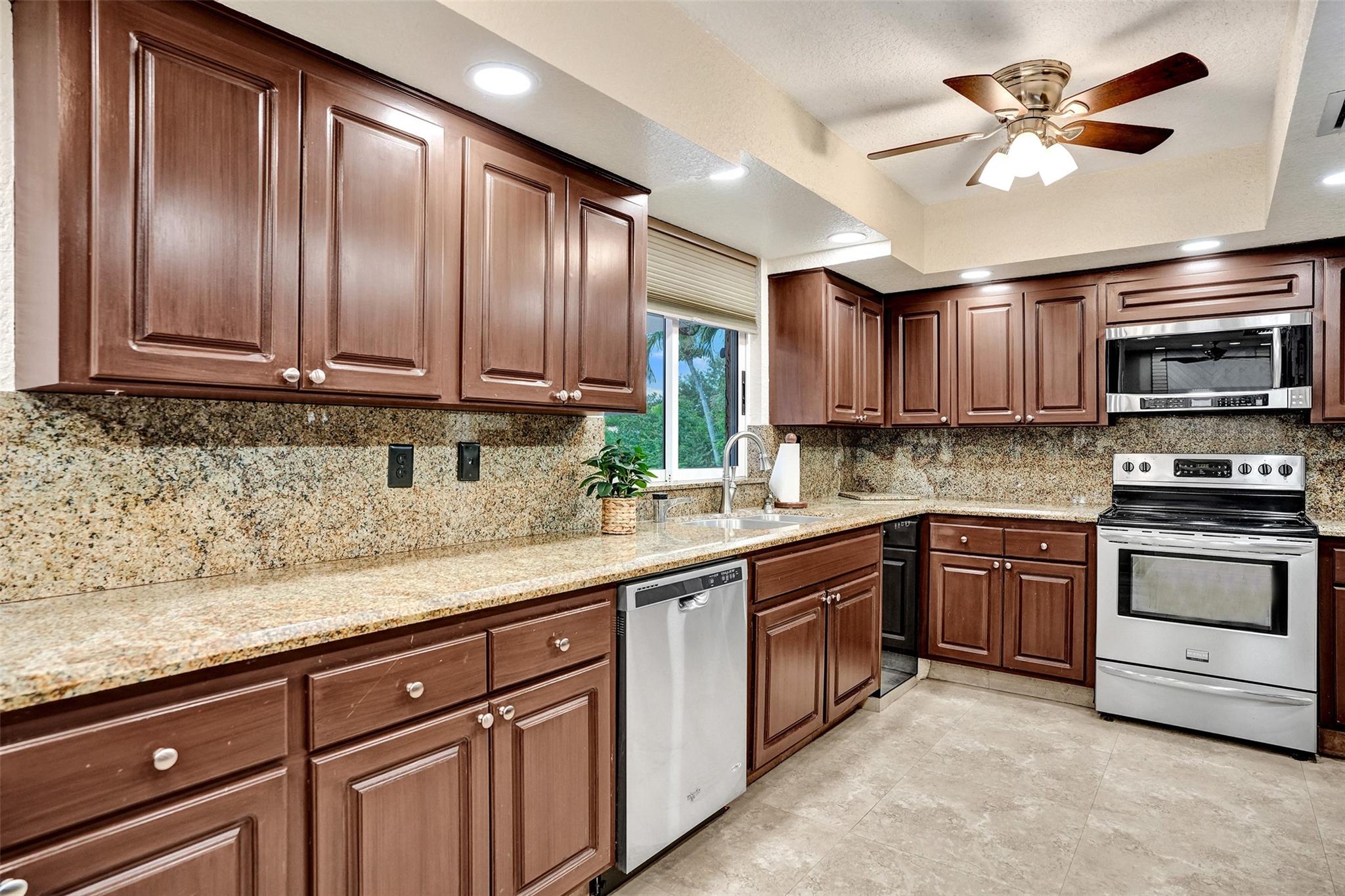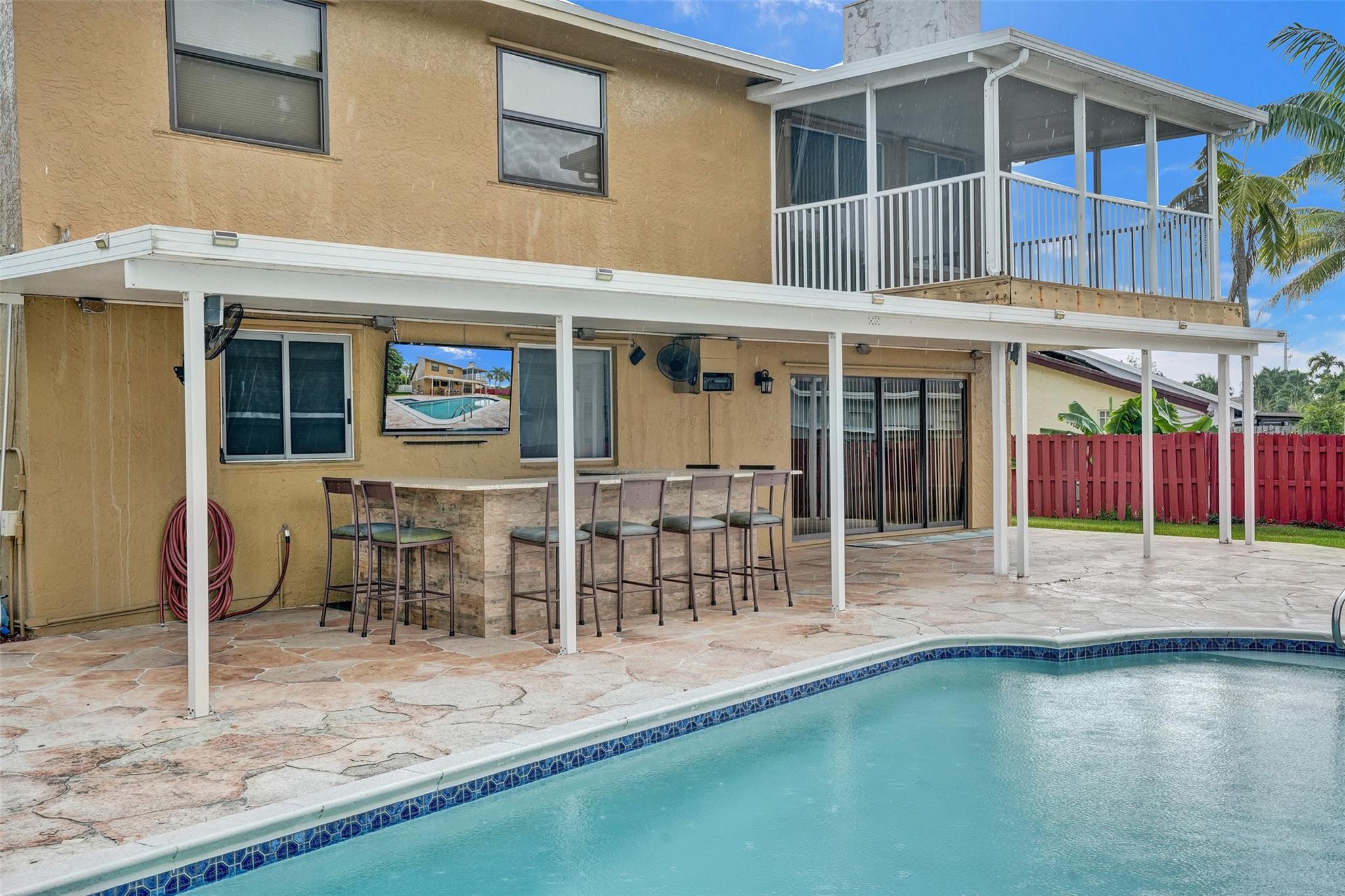 Priced for quick sale plus has a NEW ROOF and 2 NEW A/C units ..LAKEFRONT POOL home in West Sunrise's small quaint community with NO Hoa! This 3 bedroom, 3 full bath home is great for entertaining with 2,400 sqft under air. All bathrooms updated with spa-like feel. Kitchen is spacious with tons of cabinetry, sleek counter tops, breakfast island and SS appliances. Lots of recessed lighting, neutral interior paint and tile floors thru out first floor. Master bedroom is on 2nd floor with an additional sitting area or desk area + a private covered/screened balcony. This backyard is your own tropical oasis with pool, spa, outdoor bar that seats 8-10 people. Partial lake view with full access, great for fishing/boating! Fenced yard with almost 1/4 acre lot & double gates for parking your boat.