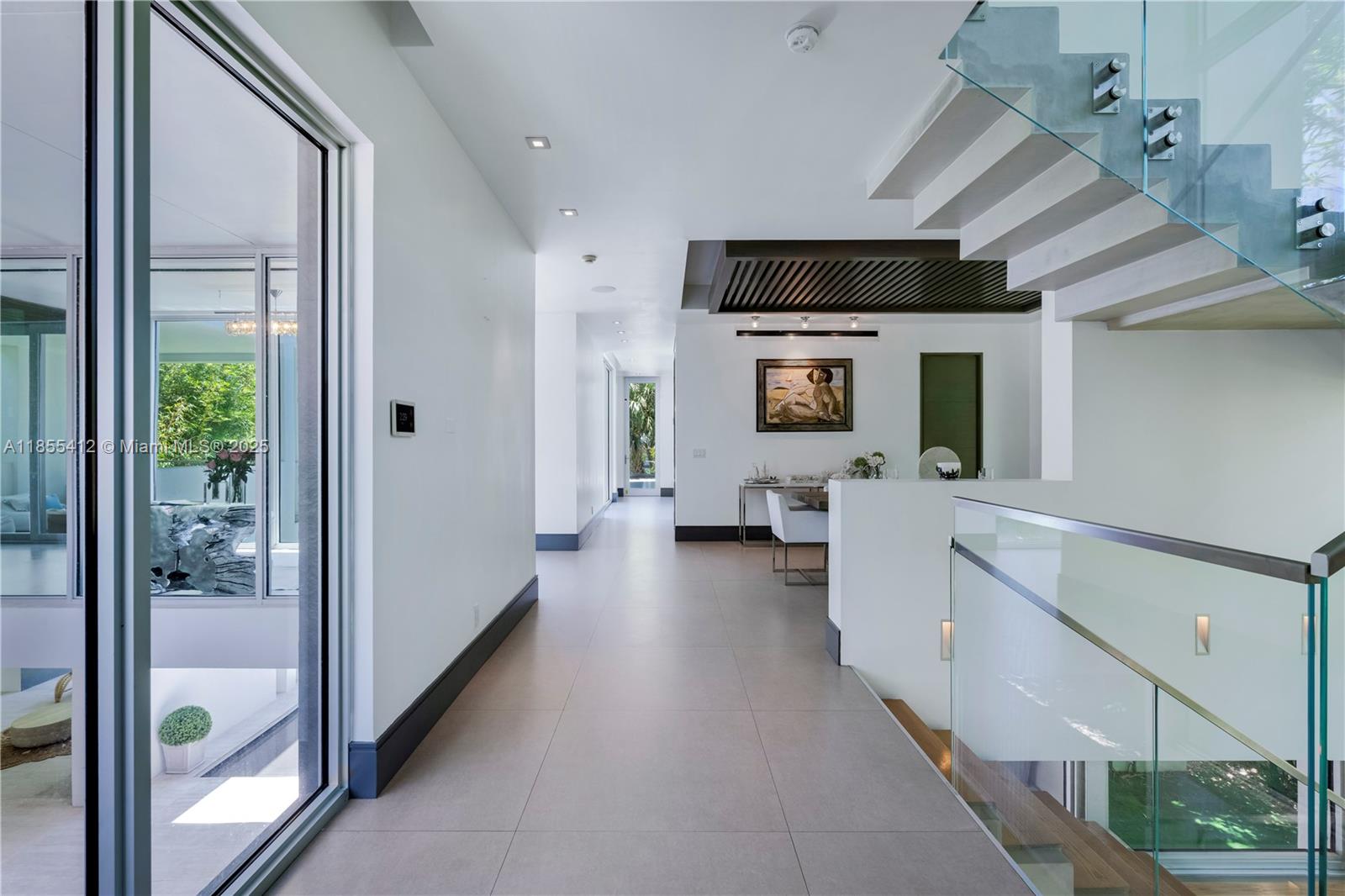 Key Biscayne – Architectural Masterpiece On a secluded 9,633 sq.ft. lot near Harbor Drive, this 6,800 sq.ft. residence by Village Architects (Deborah de León) blends modern elegance with tropical serenity. A dramatic double wood door opens to a lap pool reminiscent of Amanpuri, framed by 2,000 sq.ft. of covered entertainment areas. Inside, a glass-walled foyer, soaring ceilings, and a sculptural staircase set the tone. Formal dining, reception, and a chef’s kitchen flow seamlessly for refined living. The master suite offers vaulted ceilings, walk-in closets, a spa bath, and an adjacent office, complemented by three additional en-suite bedrooms. Rare offering of design,privacy & resort-style living in the heart of Key Biscayne.Please view unbranded matterport t, floor plans & video.