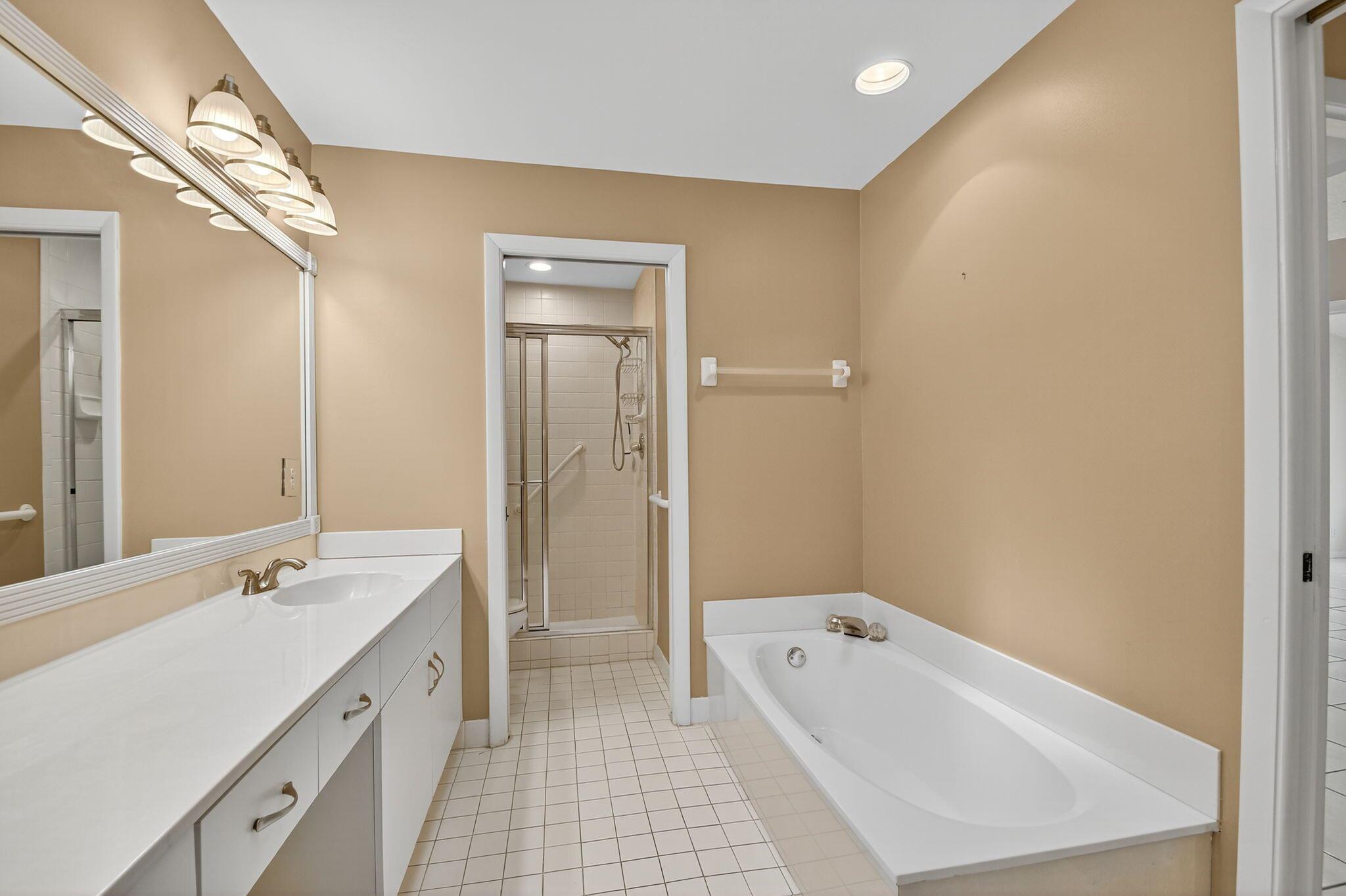 Welcome home to this Beautiful 3 bed, 2 bath lakefront home in the fabulous low HOA 55+ community of LAKERIDGE! Enjoy the stunning kitchen w/ granite counter tops, glass tile back splash, white cabinetry & stainless appliances. The extended roofed screened patio looks over the serene lake, perfect for entertaining, or enjoying quiet moments. Primary suite boasts dual sinks, soaking tub and separate shower as well as access to patio. The home boasts tile floors throughout living areas, laminate in bedrooms. Roof 2018, water heater 2024. Den/3rd Bedroom has double glass doors. Don't miss this move-in ready gem in an active, amenity-rich neighborhood!