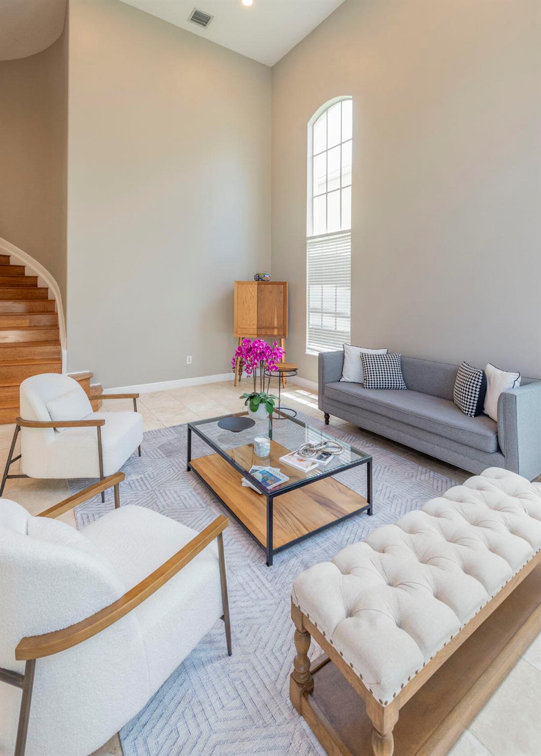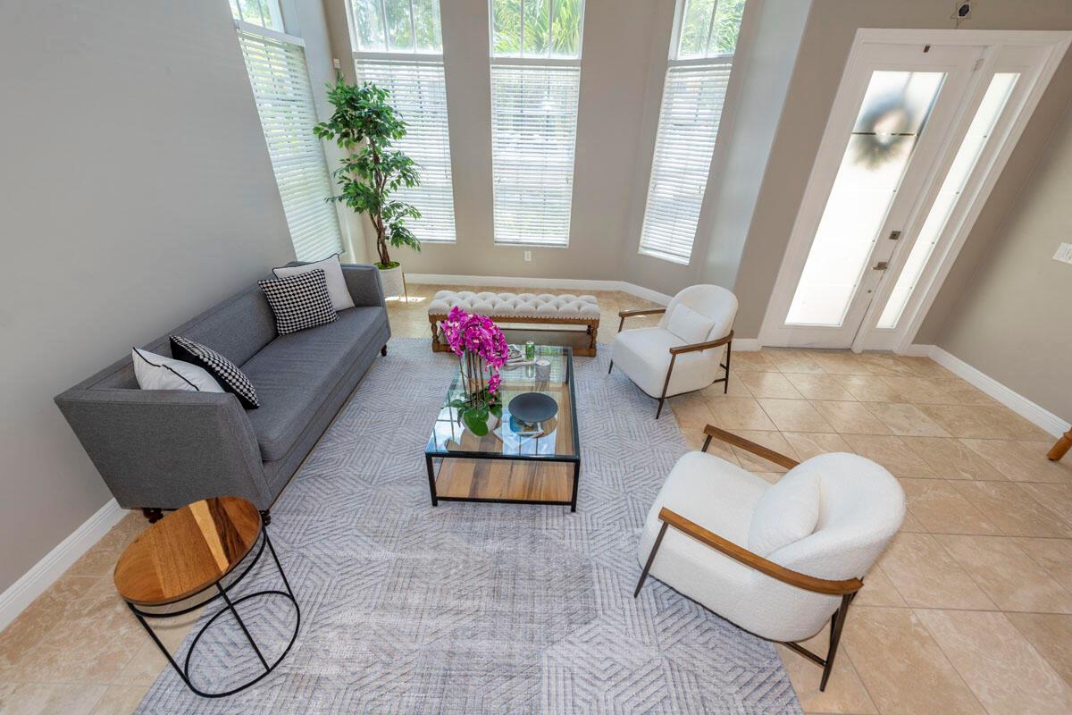 Elegant 2-story lakefront home in Olympia's sought-after Easton community. This spacious 5-bedroom, 2.5-bath residence with a 2-car garage offers 3,027 sq. ft. under air and a bright open floor plan with soaring ceilings. The modern kitchen is equipped with quartz countertops, stainless steel appliances, and ample cabinetry. The first-floor primary suite includes dual walk-in closets.. Sliding doors open to a covered patio with tranquil lake views, ideal for entertaining or relaxing. Olympia offer a resort-style amenities including a clubhouse, pool, fitness center, tennis, and basketball courts. Perfectly located across from Wellington Green Mall, near top-rated schools, dining, shopping, and minutes from world-class polo grounds and equestrian venues.