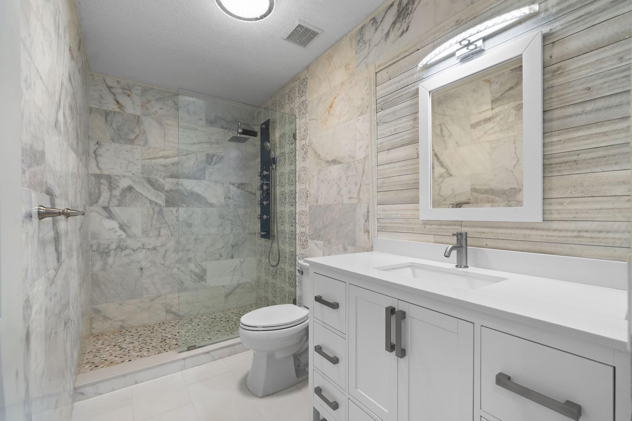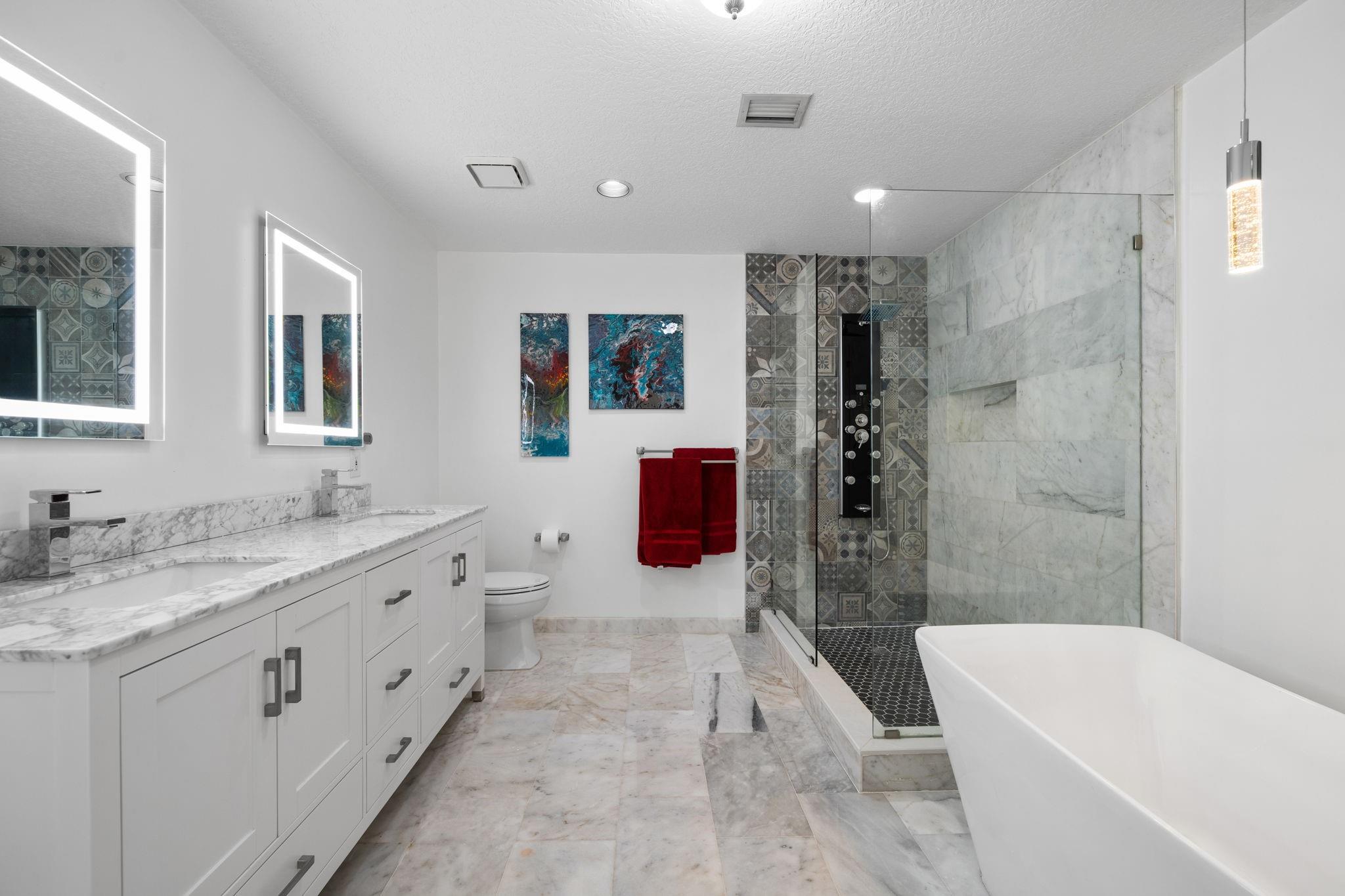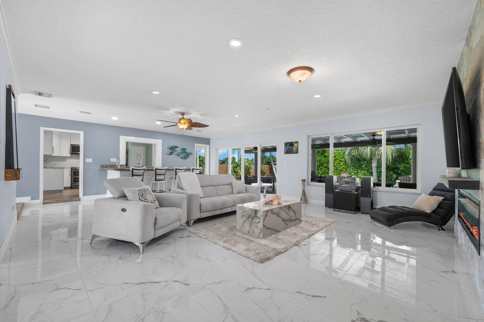 Fully remodeled 4BR/2.5BA tropical paradise gated home on cul-de-sac! Towering palms and vibrant greenery create a private retreat, while the oversized driveway offers plenty of space for guests. Features impact windows, a 2-car garage, RV/boat parking & a 300 sq. ft. bonus room on side of home perfect for office, gym/studio. Light-filled open layout with custom cabinets and lighted quartzite in kitchen and a spacious living area. Primary suite offers a large modern en-suite. Backyard is a private resort with pool, basketball court, lush landscaping, avocado & tangerine trees. Backs to 20 acres of FPL land—no rear neighbors! Garage has A/C. Tropical landscaping creates a serene retreat, perfect for relaxing in the ultimate Florida lifestyle. NEW ROOF being Installed before close.