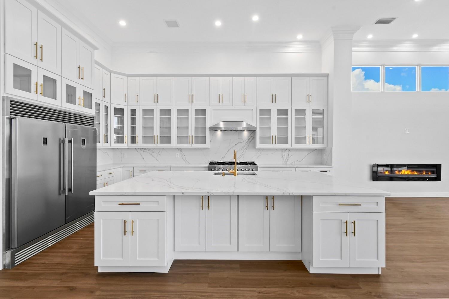 This newly totally remodeled/renovated home presents the best of both worlds combining an exterior of classic elegance and timeless grandeur of a Mediterranean home combined with a contemporary, open, modern, and luxurious stye inside that is seen in new high end homes currently being built. This beautiful residence is nearly 4,000 square feet. It has four bedrooms, five bathrooms, a pool, and a stunning backyard view of waterways, the golf course, and the magnificent, three-story Tesoro Club clubhouse. The home was built by the renowned custom home builder Costa Homes, and the home exemplifies their companies superb construction and artisanal qualities that are rarely seen in even the newest high-end homes today. While most homes around 20 years of age require extensive updating and