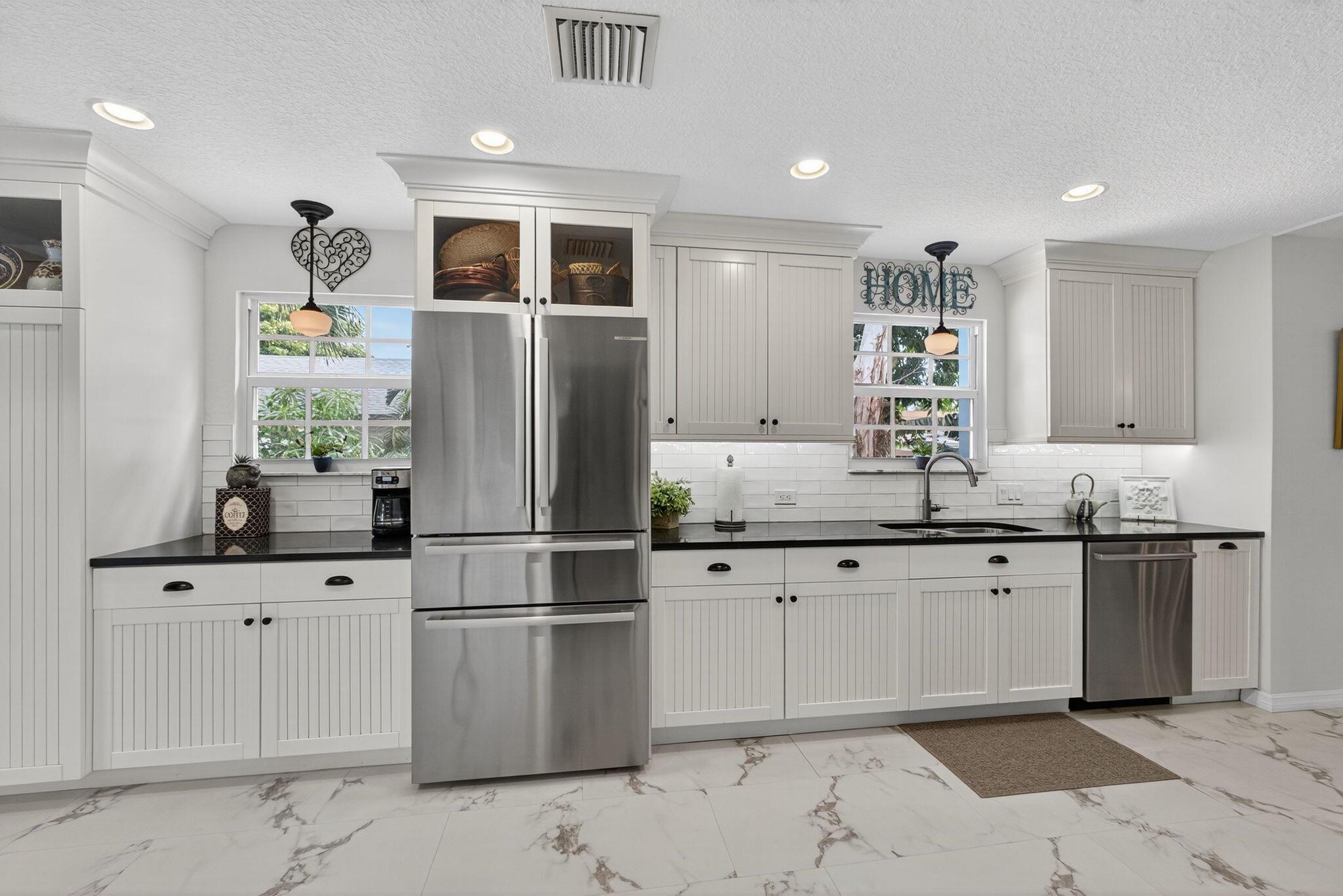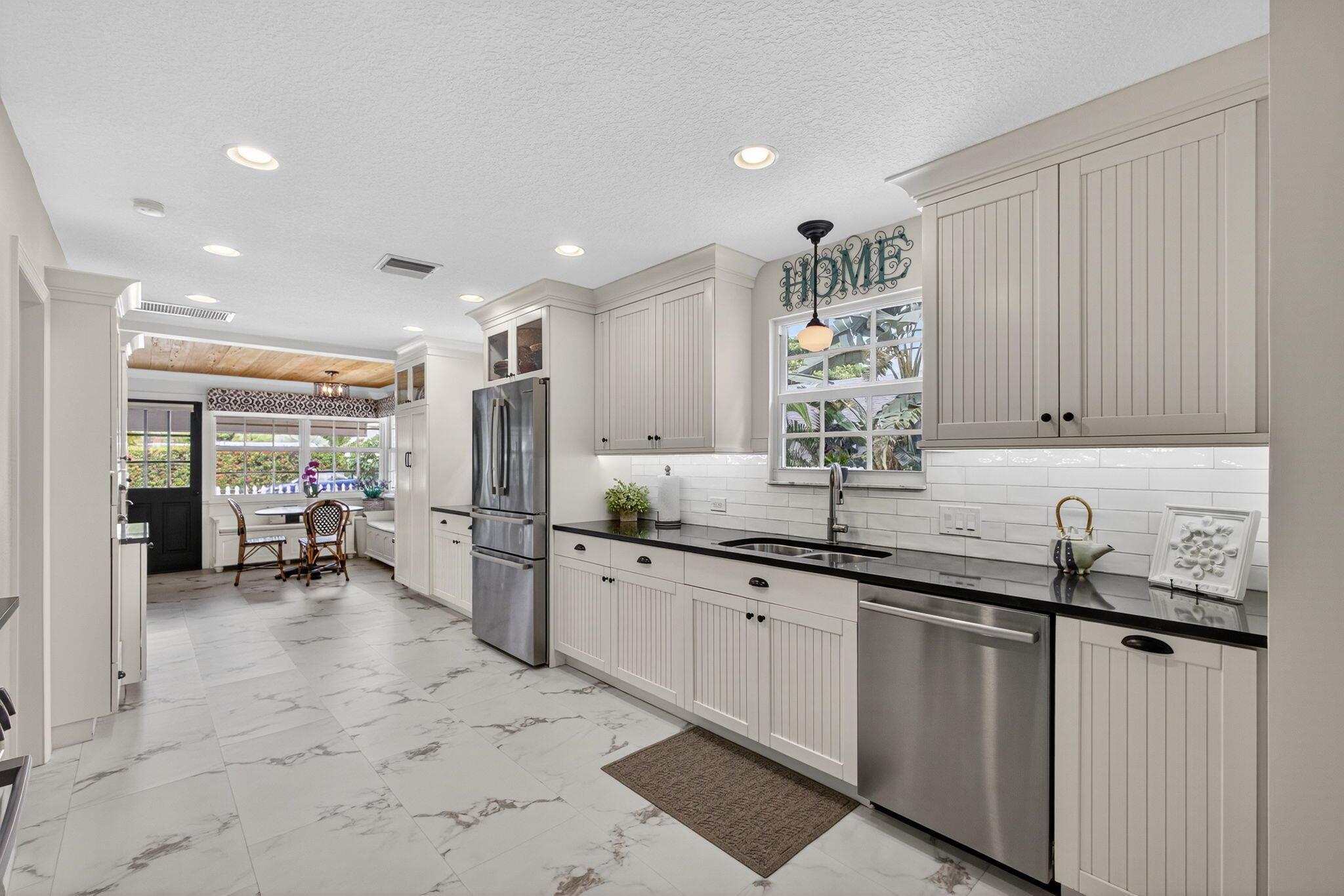 JUST REDUCED. SELLERS ARE SERIOUS AND ARE RE-LOCATING. Their motivation is your advantage. If you've been longing to find a coastal cottage that is an easy walk to the beach and downtown, here it is! This unique, historic cottage is conveniently located near the beach and downtown shops and dining. Smartly updated with impact windows, split-zone A/C (2022), and a tankless gas water heater (2019). The home features a spacious Florida room with tongue and groove ceilings and has been thoughtfully renovated with a modern farmhouse-style kitchen with Shaker cabinets, black granite counters, coffee bar, stainless appliances, 5-burner gas stove, as well as a renewed guest bedroom with bath. The 1216 sq.ft. addition (2009) includes