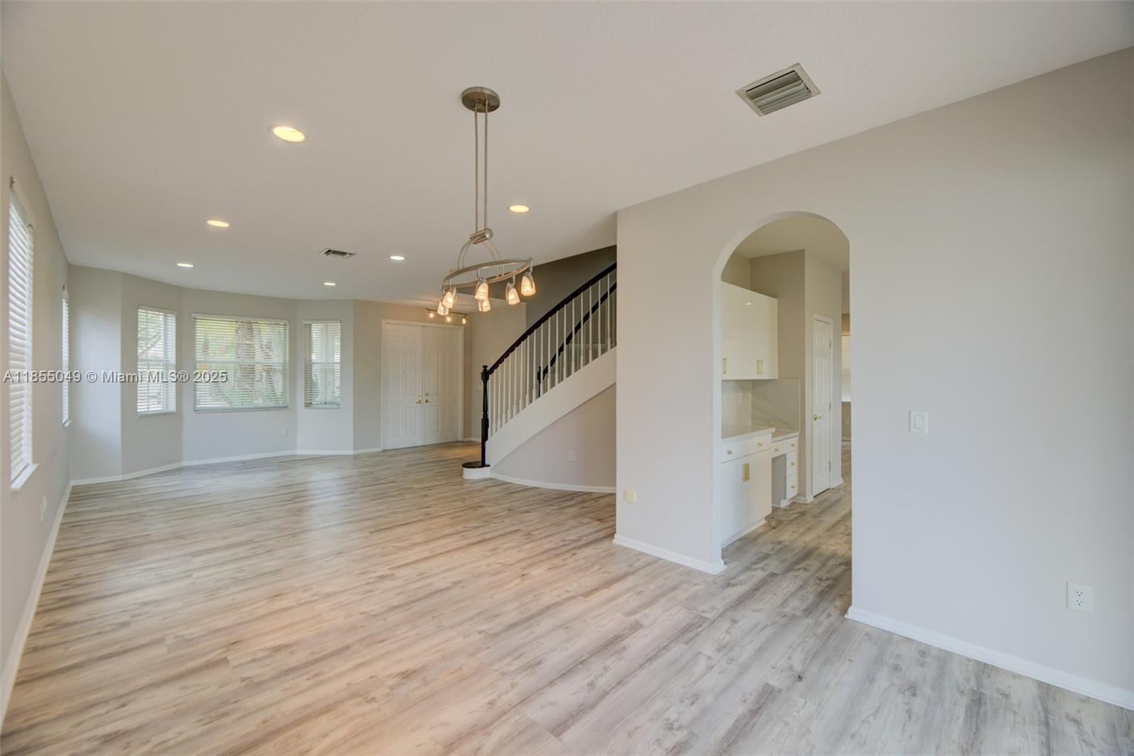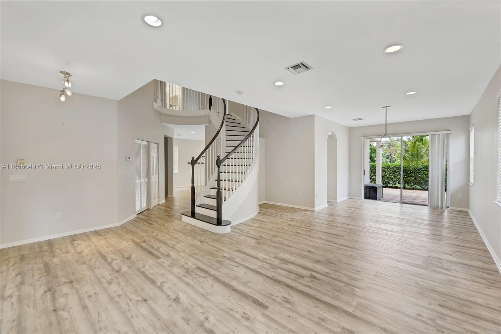 Fabulous two story home in a gated community in Riviera Isles with amazing lake view, 5 bedrooms /2.5 baths, two-car garage + 3 parking spaces. Volume ceilings and lots of natural light. Formal & separate dining / living room. Spacious kitchen with a large family room that overlooks the beautiful lake area and Great Backyard. Master bedroom on the second floor. Club House with tons of amenities: tennis-basketball courts-pool-gym. Close to I-75-Schools-Hospitals-Dining-Malls-Airports.