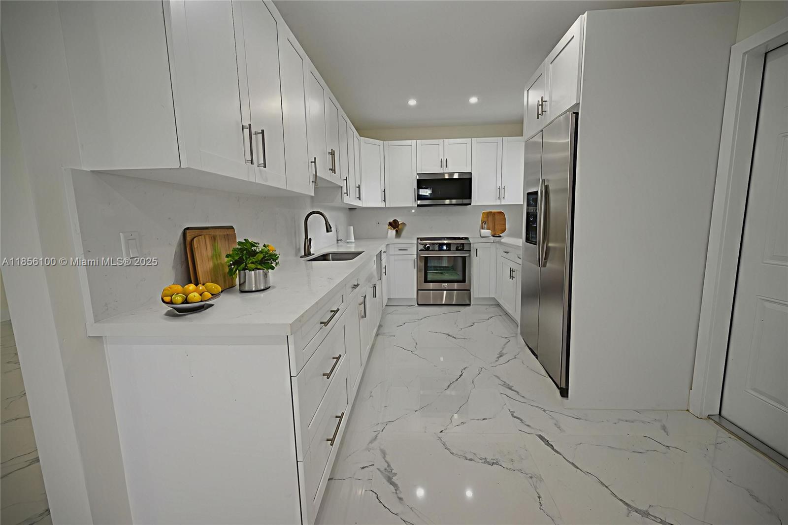 Charming and fully remodeled 2-bedroom, 2-bathroom single-family home situated on a spacious corner lot. Features a brand new A/C unit, impact windows, beautiful kitchen, renovated bathrooms and tiled throughout. This home offers abundant natural light, a spacious yard suitable for a pool or additional parking, and a one-car garage that can be customized into an in-law suite for rental income. Ideal for buyers seeking a move-in-ready property with versatile features and significant investment potential.