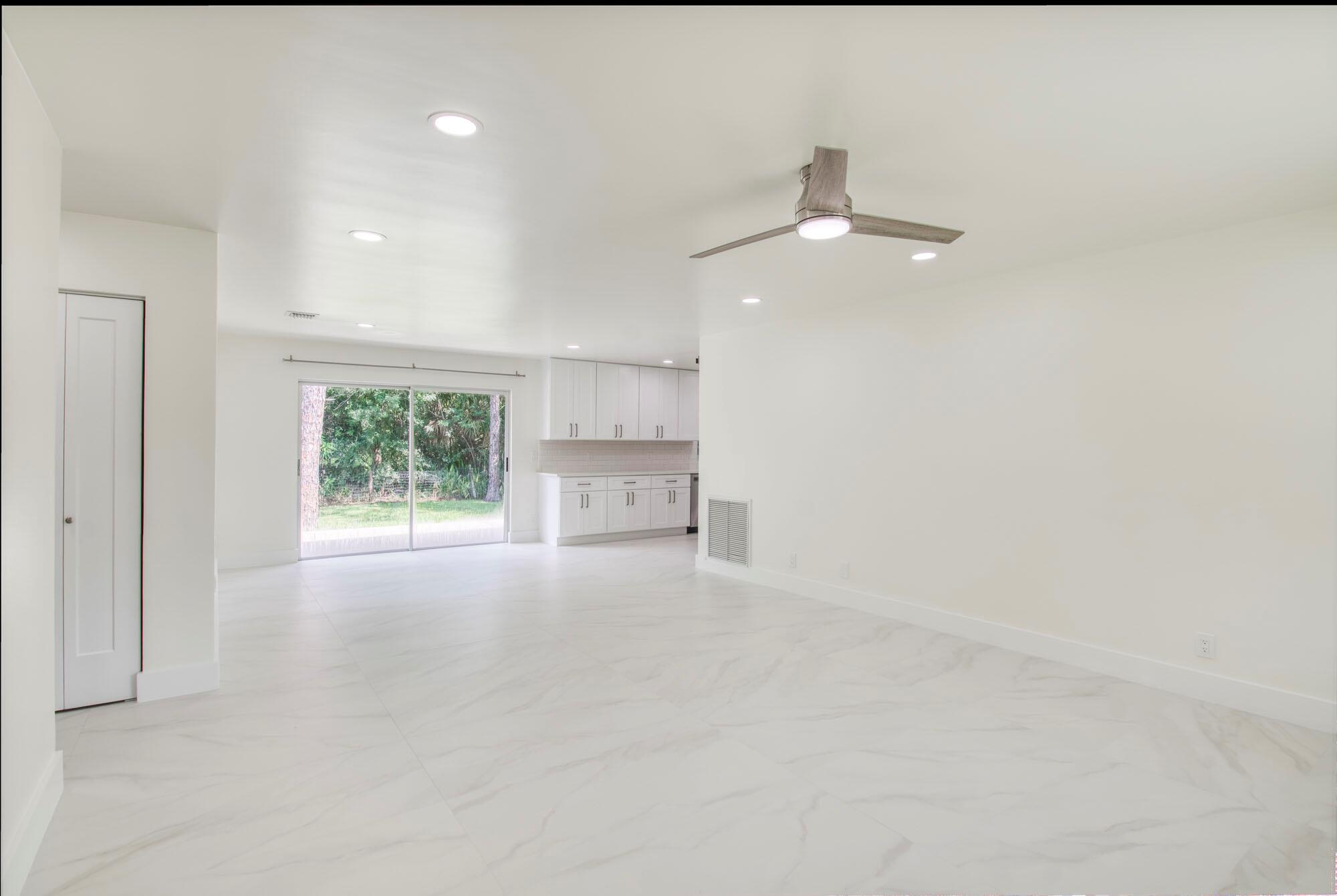 This beautifully renovated 3 bedroom, 2 bath home offers unparalleled privacy and tranquility on a spacious half-acre lot. No detail has been overlooked in this stunning renovation, featuring a new roof, AC, hot water heater, and impact windows for added peace of mind. Step inside to the expansive main living area with sleek 24x48 matte porcelain tile flooring and custom luxury finishes throughout. The fully renovated kitchen boasts quartz countertops, stainless steel appliances, custom cabinetry, and a large pantry for ample storage. Outside, you'll find a brand-new deck perfect for relaxing or entertaining, all while enjoying the serene, tree-lined backyard with plenty of space for outdoor activities. This exceptional property offers the freedom and flexibility that comes with no HOA