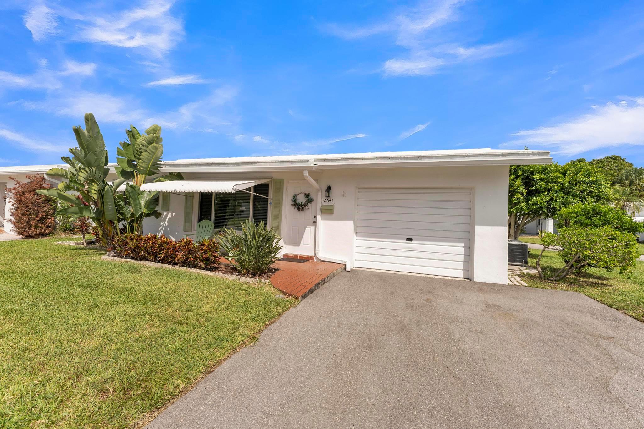 Peace of mind comes built- in with this beautifully maintained, 2 bedroom, 2 bath, gem on a huge corner lot in a vibrant 55+ community. Move right in and enjoy the many major updates. Upgraded second bath 2023, new A/C 2022, impact windows 2024 with stylish old Florida charm window awnings. New roof 2019, energy efficient Simpson roof coating 2022, upgraded double driveway leading to your 1 car garage. Relax in the bright Florida room, leading to your private outdoor patio. Take advantage of this active community, golf, 2 pools, clubhouse, classes, shuttle and so much more. Community is centrally located close to all Pompano Beach has to offer, shopping, casino, beach, wonderful dining, Pompano Pier. Community includes painting of house, lawn, landscape, water, so much more NO LAND LEASE