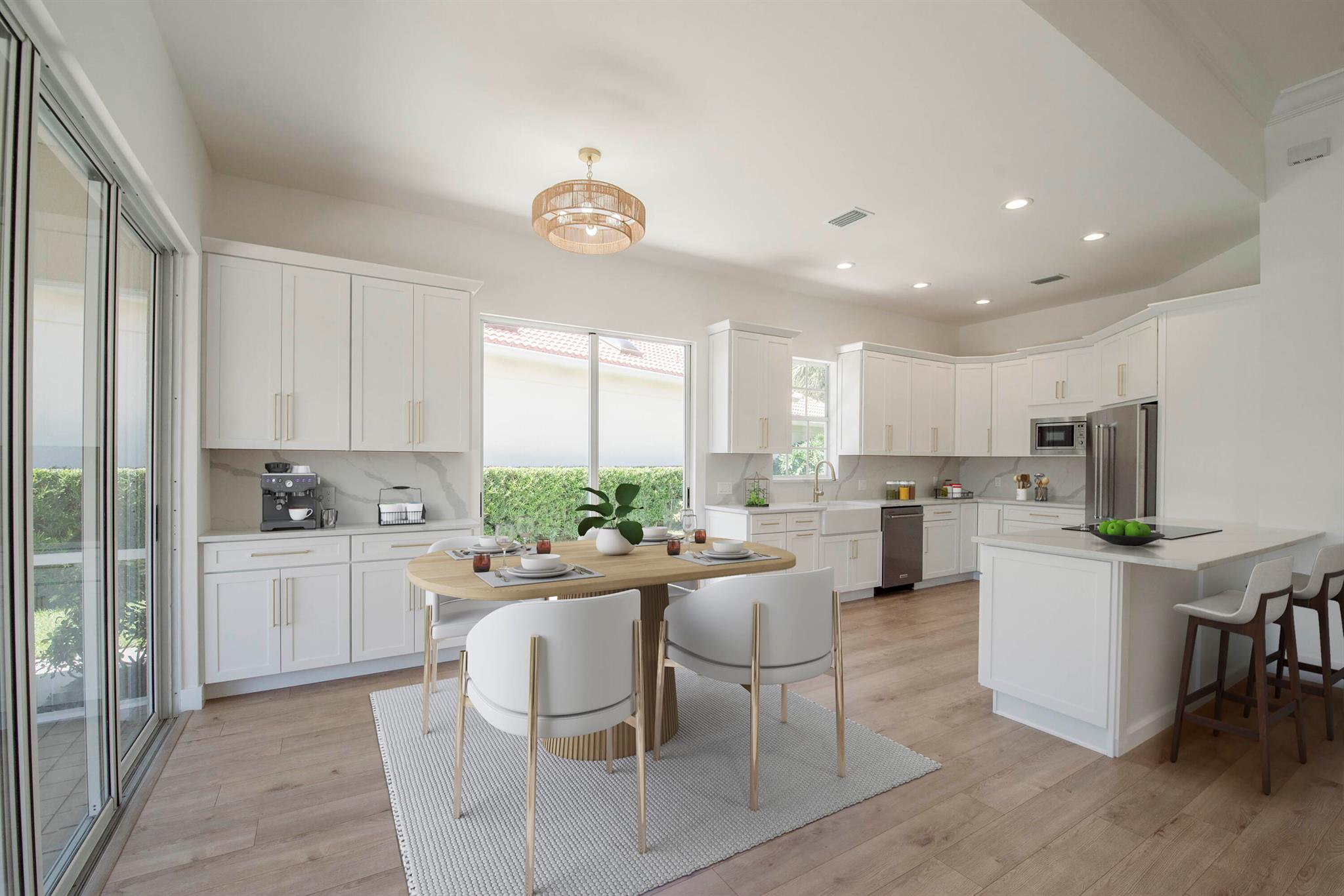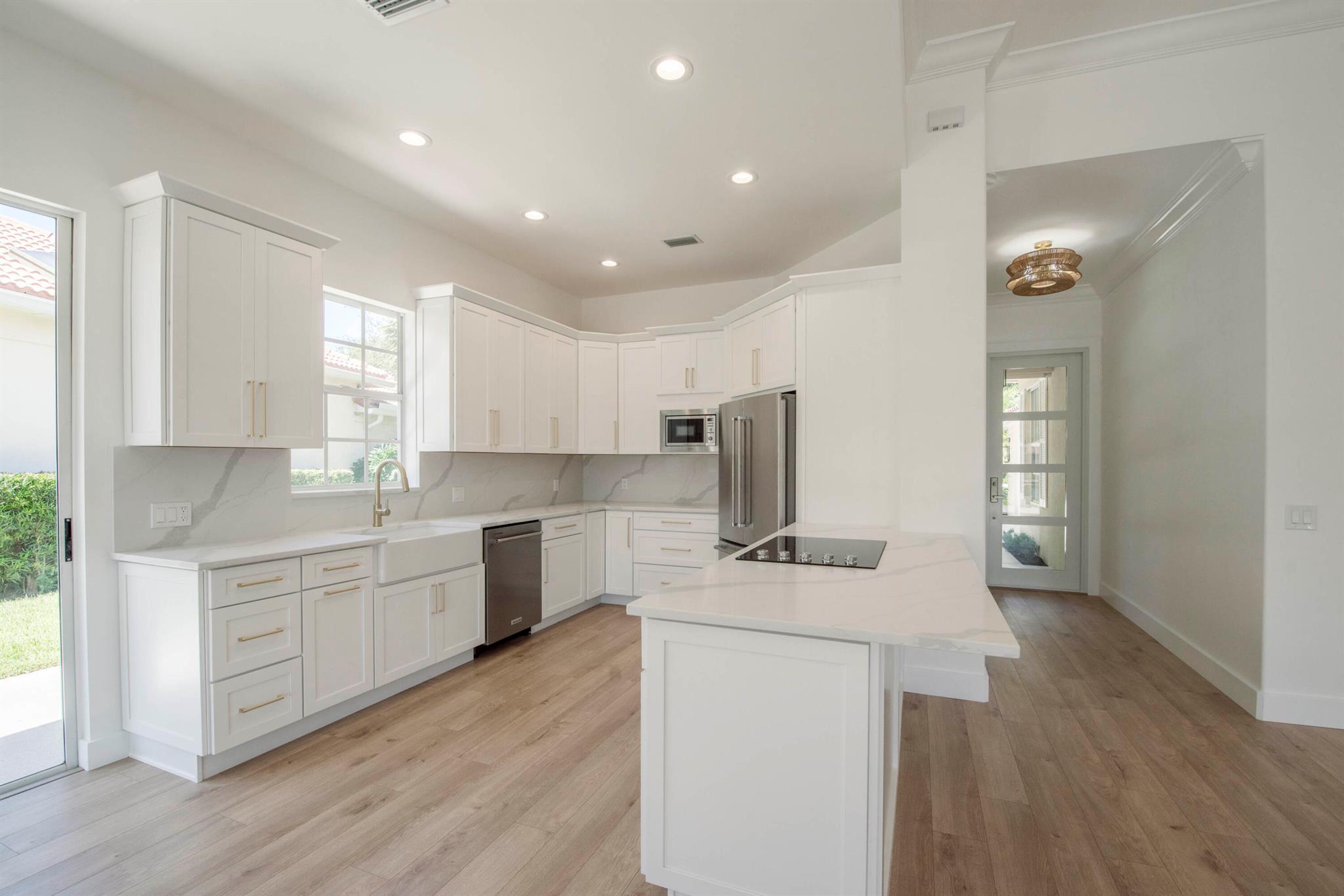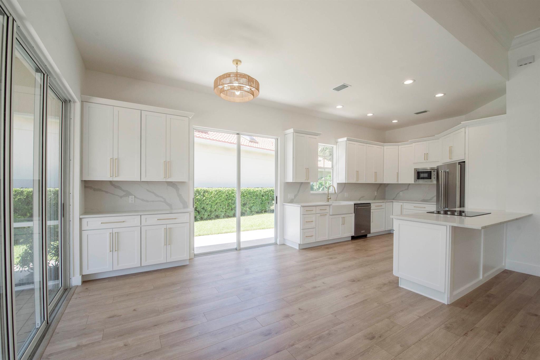 Be the first to put your personal touch on this fabulous and superior newly renovated single family home located in the premier community of Oaks East. The gorgeous and spacious eat in kitchen features stunning white custom cabinetry throughout, brand new high end KitchenAid appliances, custom quartz countertops, farmhouse sink, new recessed lighting, a large peninsula open to the main living space perfect for entertaining, and a bonus built in bar/coffee space to enjoy while soaking up the spectacular lake views. The living and dining rooms offer tons of natural light, high ceilings, recessed lighting, durable and waterproof luxury vinyl plank transitionless flooring throughout, and wall to wall sliding glass doors that open onto your tiled screen enclosed