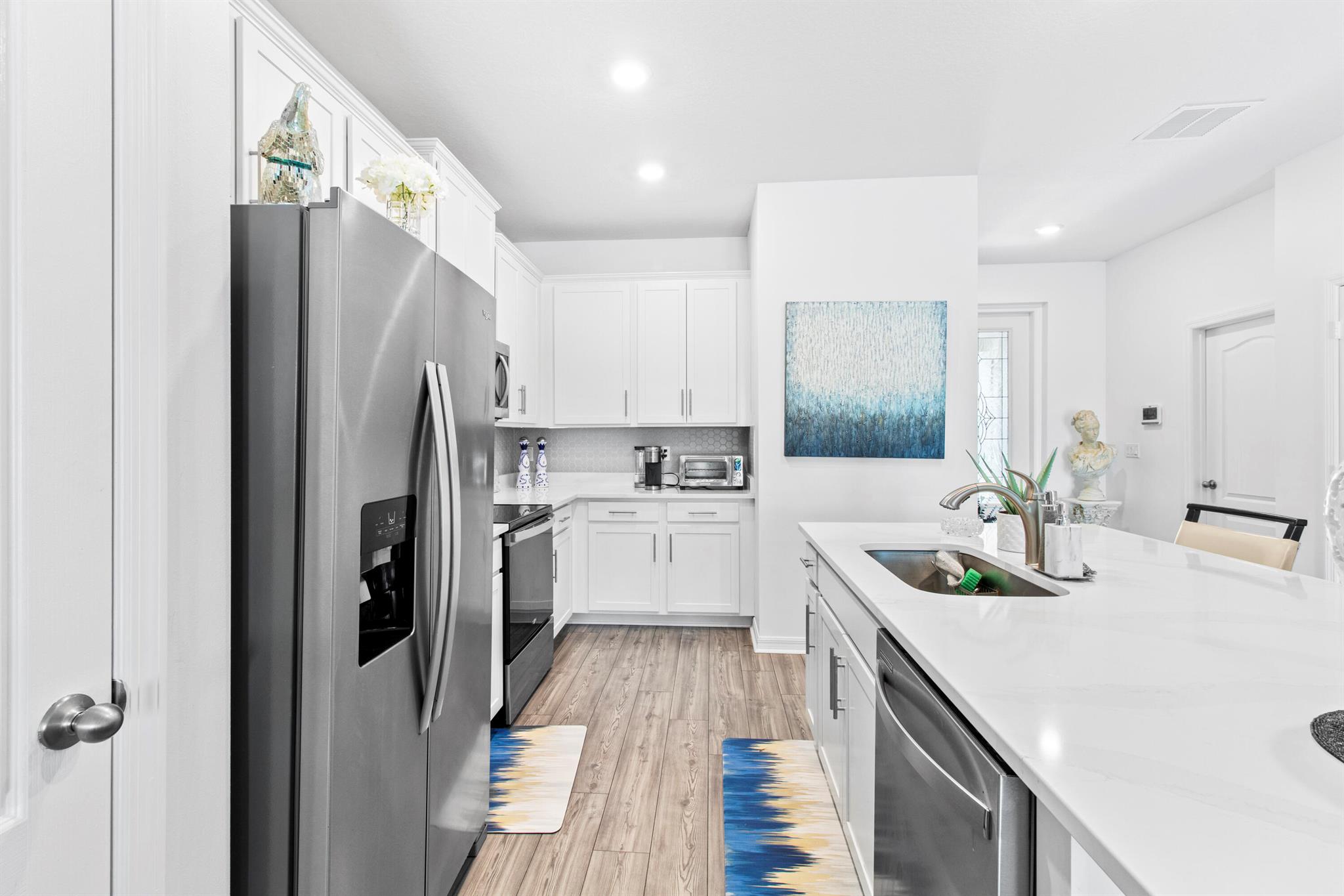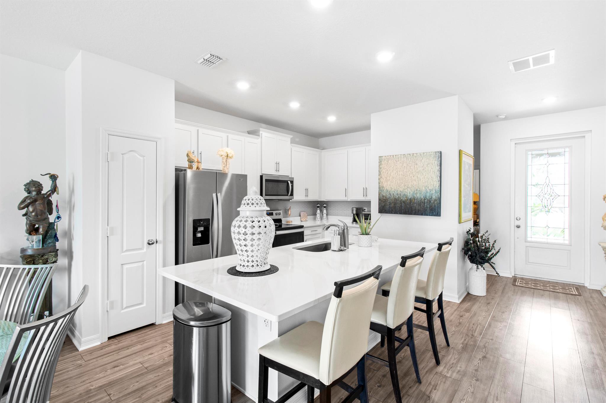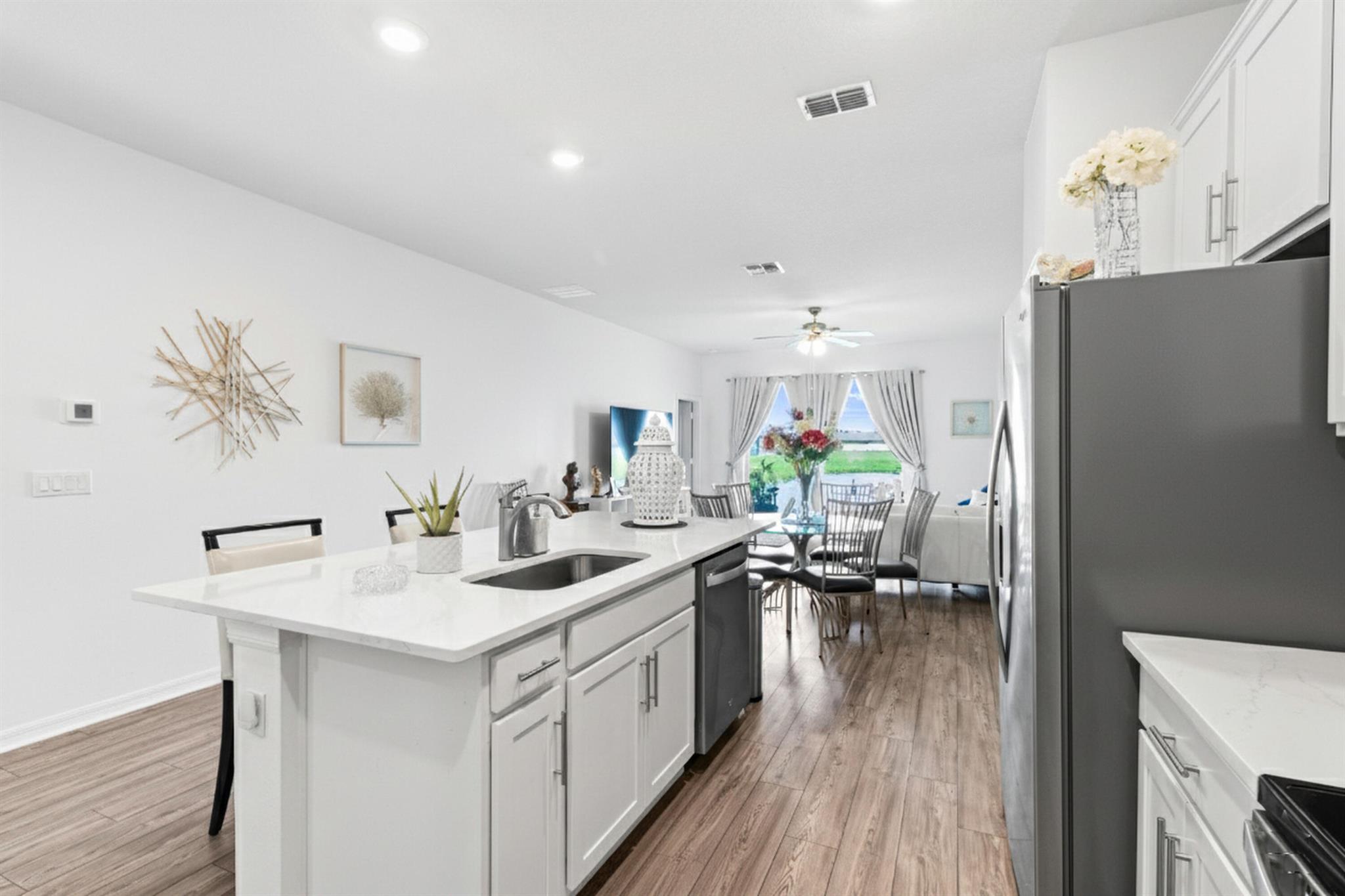 This beautifully designed 3-bedroom, 2-bath waterfront home welcomes you with a bright, open floor plan. From the moment you walk in, the water view is the first thing you notice. The layout keeps the living, dining, and kitchen areas connected, creating a space that works just as well for quiet mornings as it does for hosting friends.