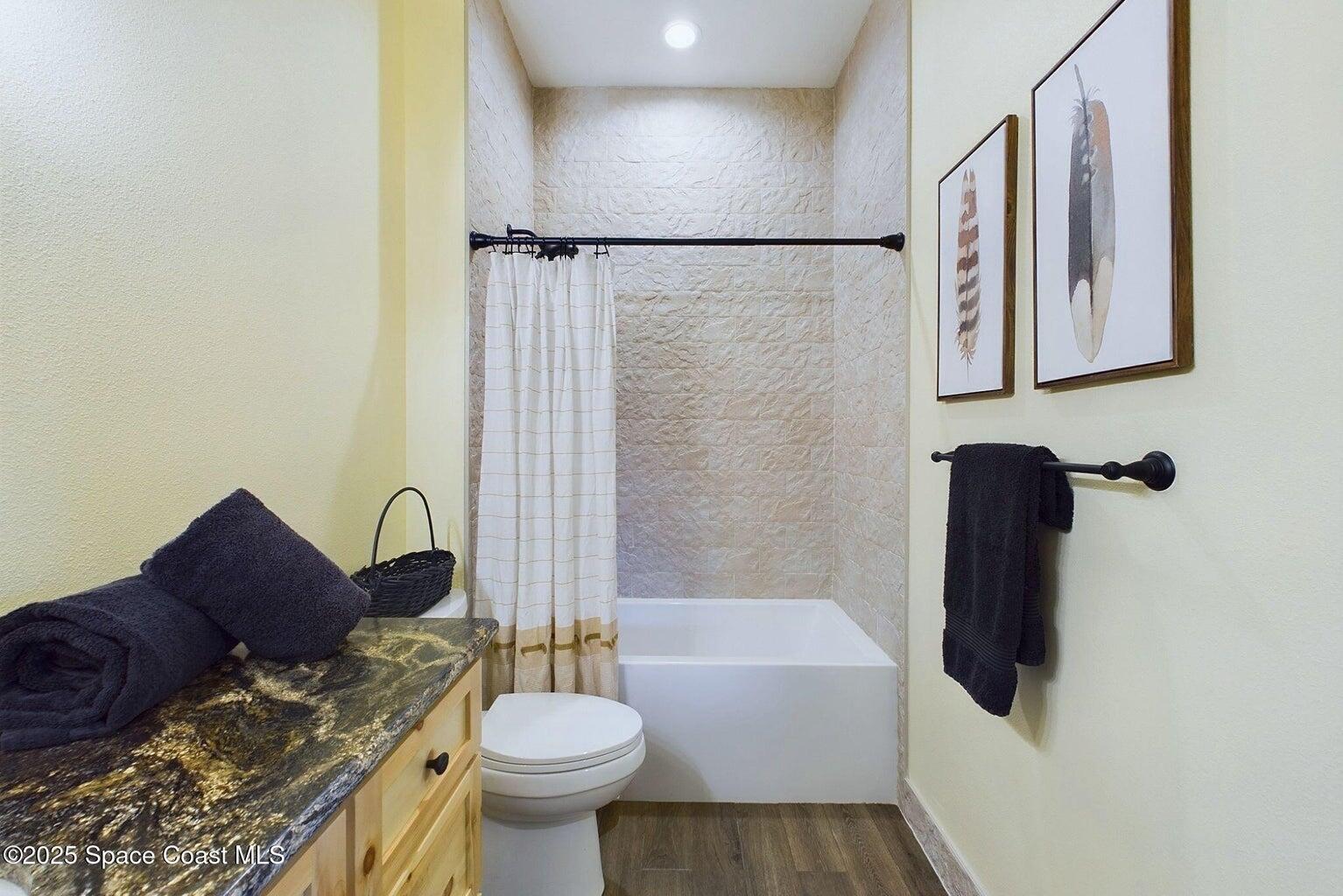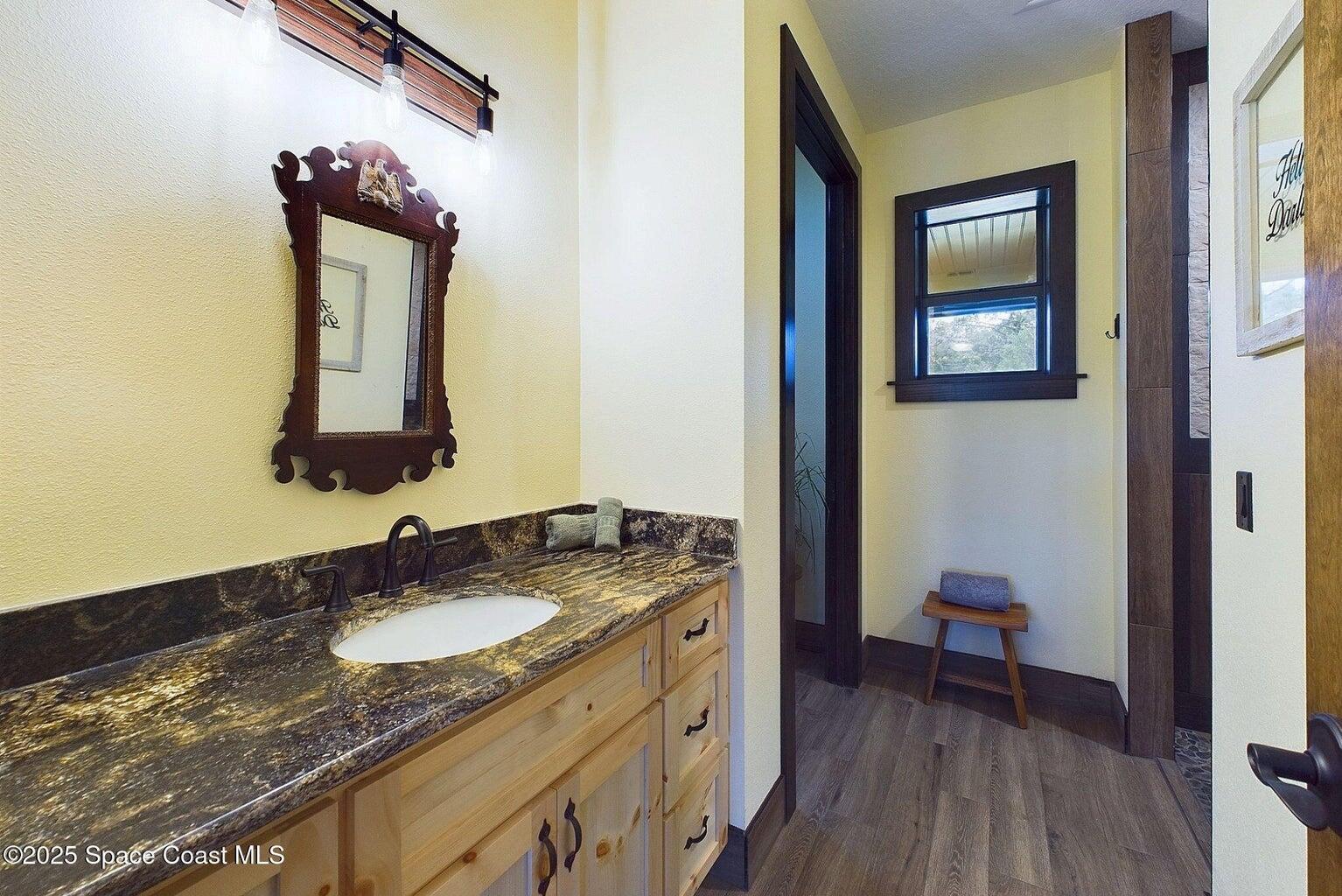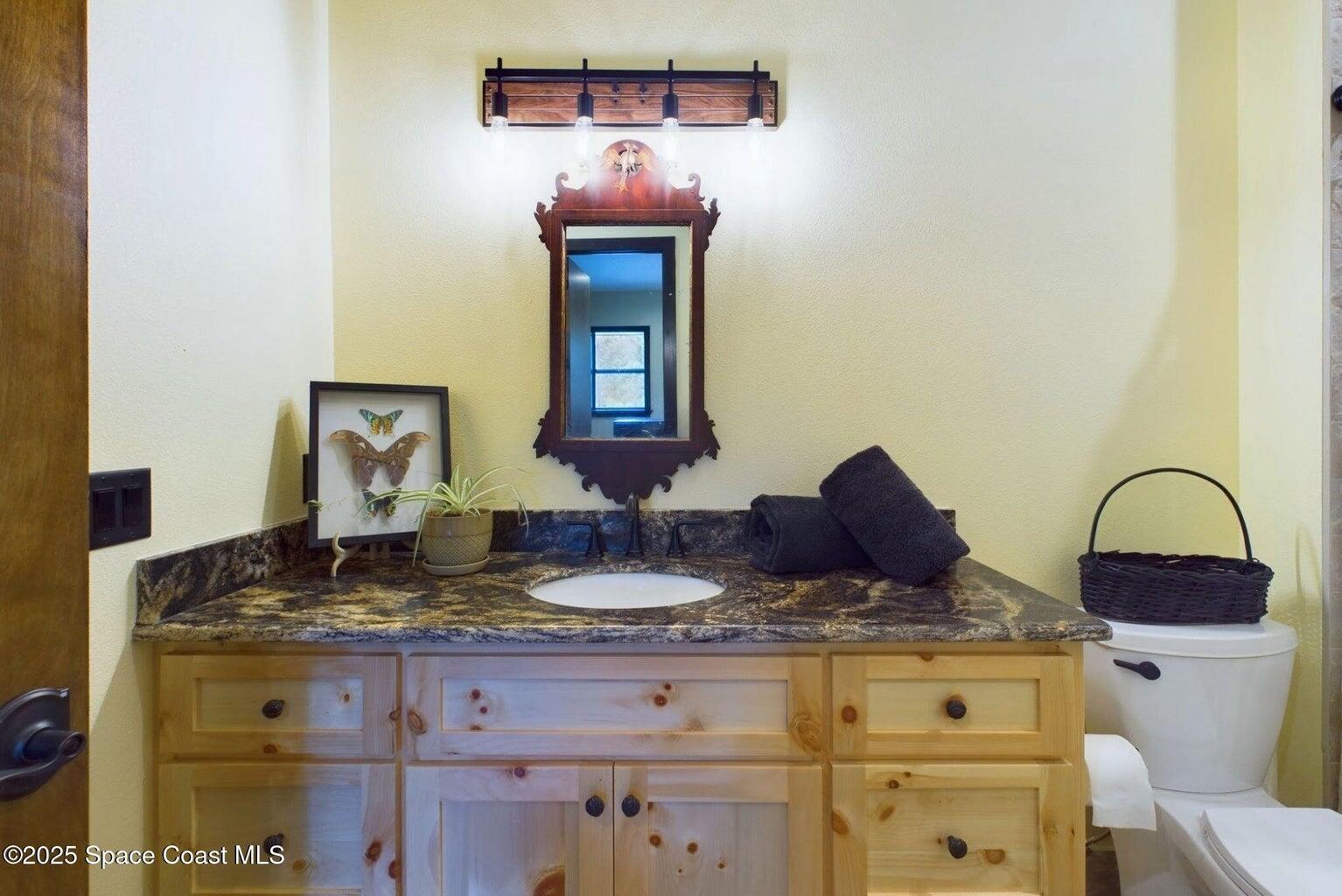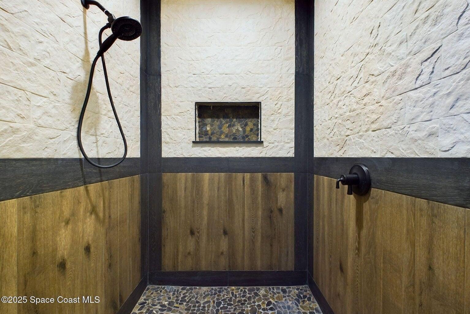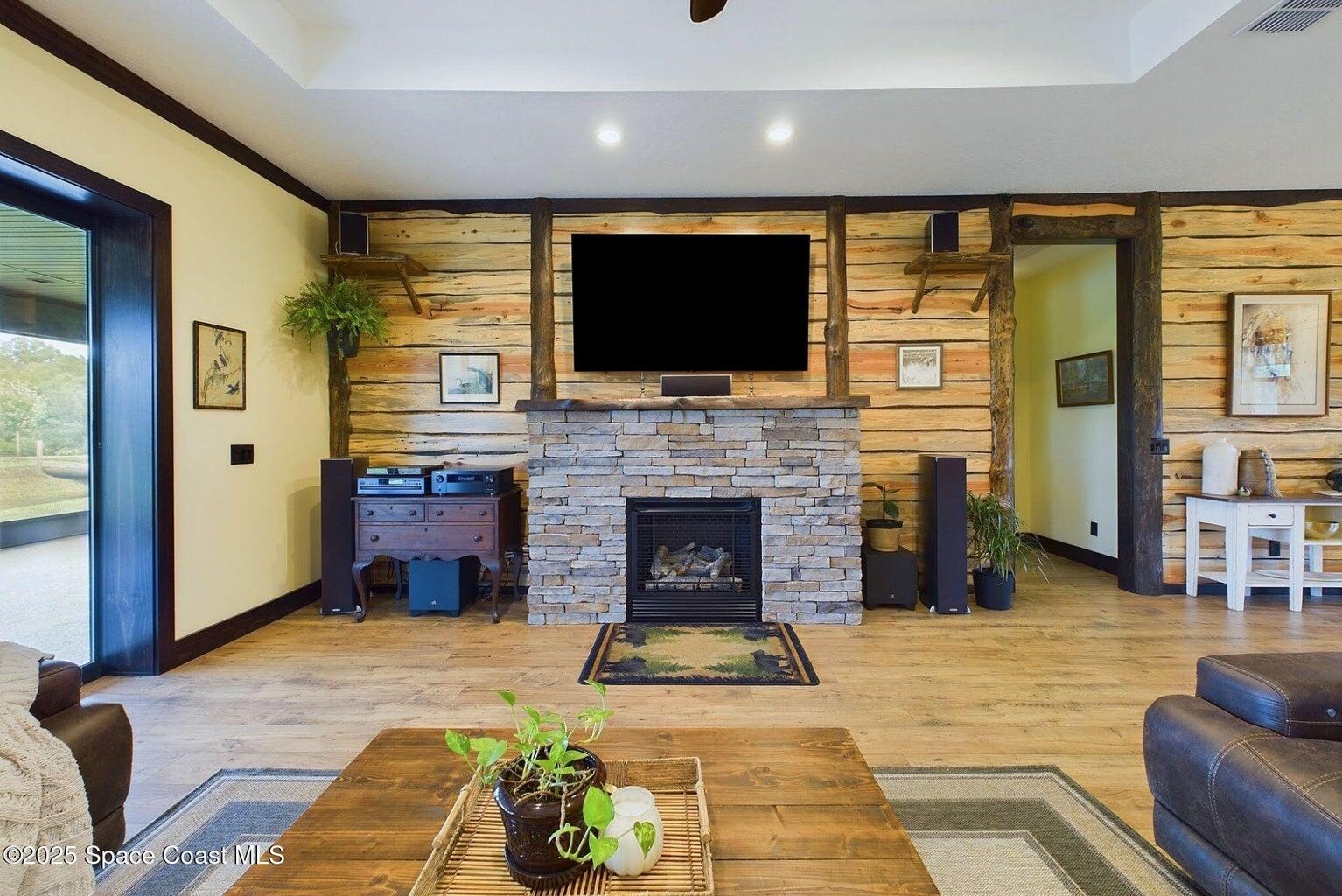 Discover peaceful seclusion in this custom CBS two bedroom two bathroom split floor plan home on five private acres. A pond with an island, waterfall, and land bridges creates a serene retreat. Beetle kill pine adds natural warmth throughout the interior and triple sliding doors open to relaxing views. The kitchen and baths feature granite counters and knotty pine accents. The primary bath offers a walk in shower and the guest bath includes a deep soaking tub. An oversized flex space holds laundry and includes a built in dog wash station. A forty by sixty pole barn, two RV hookups, room to expand, more than three hundred trees, and frequent wildlife sightings complete this private setting near the Space Coast and Orlando attractions.