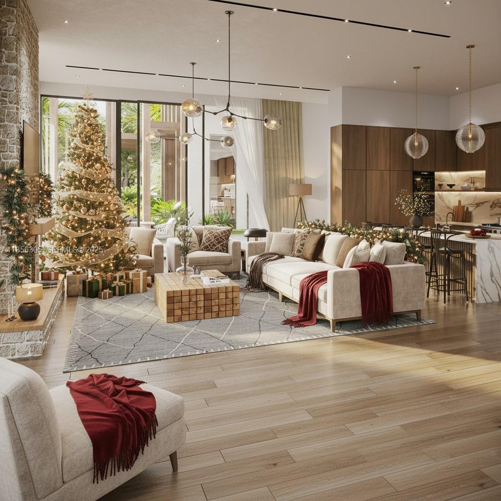 One-of-a-Kind Architectural Masterpiece – Designed by famed Affinity Architects, this 6BR, 6BA, 3HB estate is situated on over 2 acres of land offering refined living with exceptional design. The flexible layout allows for 7+ bedrooms. This rare and unforgettable Bali inspired architecture blends natural materials, open layouts, and intricate craftsmanship, focusing on nature through walled compounds of separate pavilions for different functions, creating indoor-outdoor living with abundant ventilation and connection to gardens overlooking a pool, shaded lounge, and spa. Amenities include: a wellness room with sauna, private movie theatre, 2 family rooms, staff quarters, mud room, and 2 laundry rooms. A 4-car garage plus guest parking ensures ample space. Every detail reflects quality craftsmanship, timeless style, and a seamless connection between indoor and outdoor living.