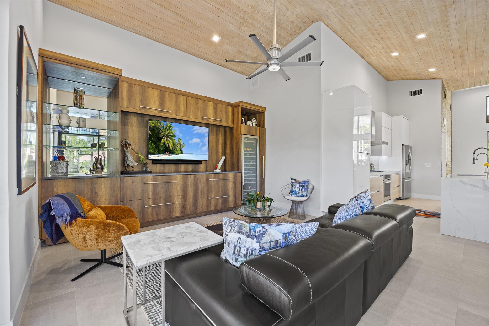 Step into a world of unparalleled elegance and luxury, where every detail has been artfully designed. This exquisite 4bd/4.1ba home has been completely remodeled with the finest designer finishes, blending sophistication and style at every turn. The kitchen, a masterpiece in itself, boasts high-end cabinetry, top-tier appliances, and a striking accent wood ceiling that extends seamlessly into the family room, complete with custom built-ins and a large wine refrigerator for the discerning connoisseur.Gleaming porcelain floors guide you through this stunning home, enhanced by tastefully designed accent walls and lighting that create an inviting atmosphere throughout. The primary suite is a sanctuary of serenity, featuring a (click 'more')