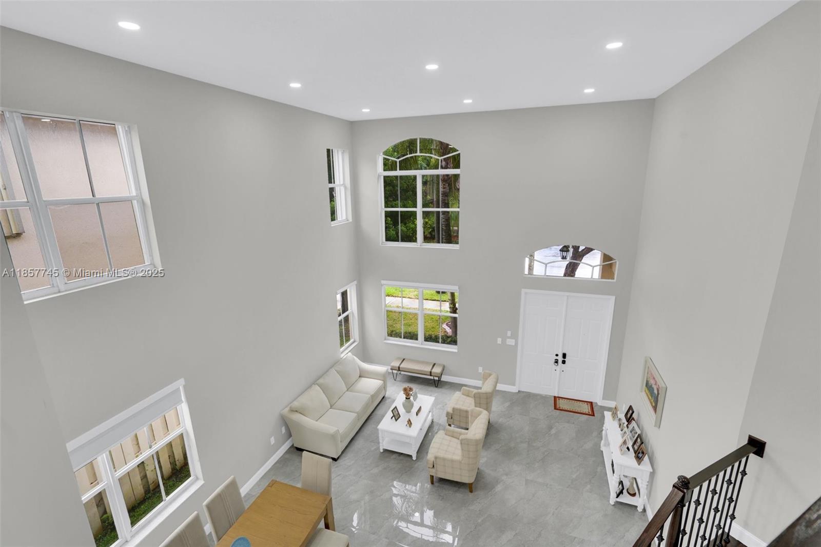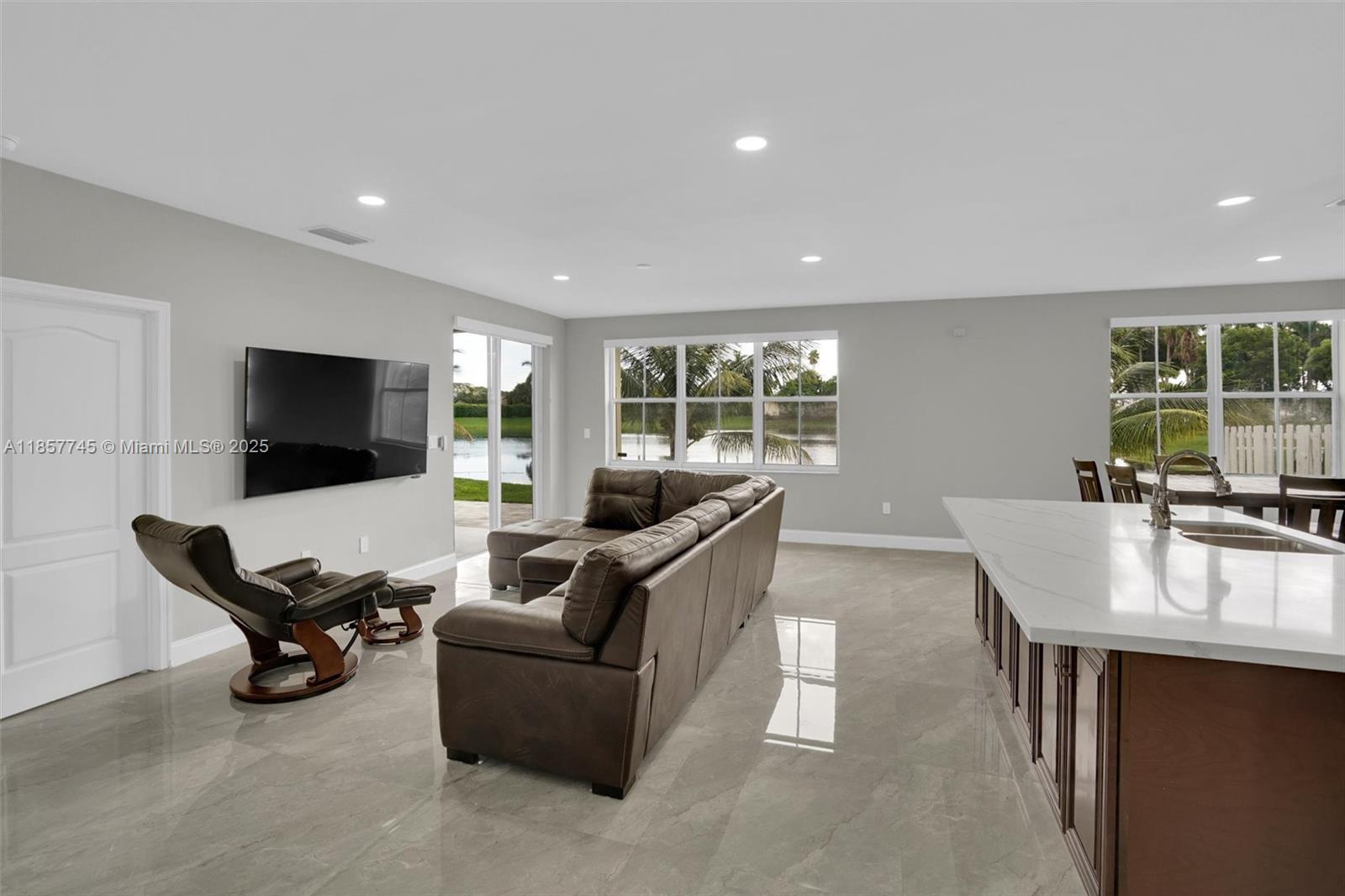 Magnificent lakefront home, lovingly maintained by its original owners and completely remodeled with many upgrades over the last years. Features include a 2-year-old barrel tile roof, accordion hurricane shutters, and new PEX-A plumbing throughout. The gourmet kitchen boasts a massive 8.5' x 5' quartz island, double ovens, newer appliances, and quartz countertops in both kitchen and baths. Elegant, oversized porcelain tile floors flow through the first floor, while upstairs showcases a beautifully redone hardwood staircase and hardwood floors in the loft. Freshly painted exterior, zebra blinds, spacious closets, and updated systems, including an improved AC, ensure comfort and peace of mind. Enjoy serene water views, community amenities, and a true turnkey property with countless extras.
