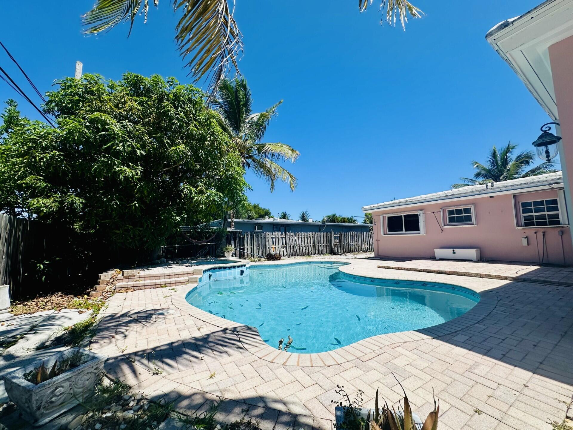 WELCOME! This charming East Boca style home offers 4 bedrooms, two full baths, and a private pool/spa. NO HOA. Exterior and Interior freshly painted. Original Terrazzo floors. Great backyard and pool deck! South Florida style living awaits the next owner!