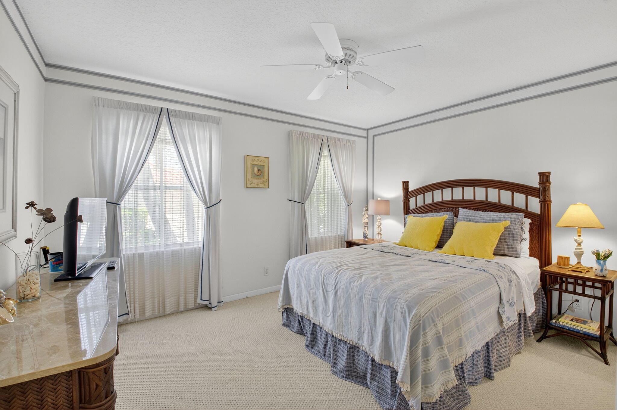 Welcome to The Cascades, a sought-after 55+ Community located in Boynton Beach. Drive into the community through a guard gated entrance to see the Clubhouse on your right and the Westchester Golf Course on your left. The Cascades is a NON equity community that gets to enjoy seeing the views of this beautiful public golf course. This open-floor plan house is a 3/2 where the 3rd bedroom is a den. The Kitchen is open to the Great Room and view of the back and side gardens. The Primary bedroom has a large walk-in closet with built-ins making great use of the space. The roof was replaced in 2010.The house is walking distance to the satellite pool where there are exercise water aerobics classes are held on most days, classes are also at the