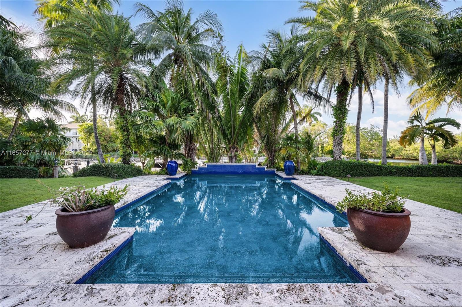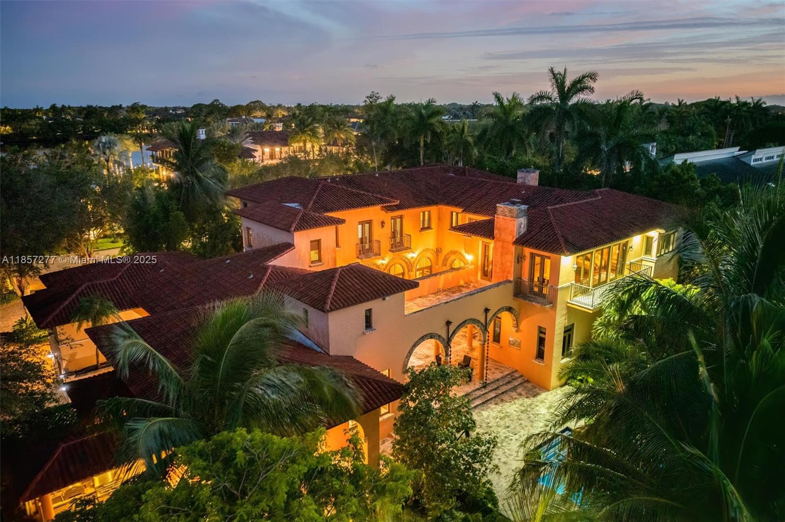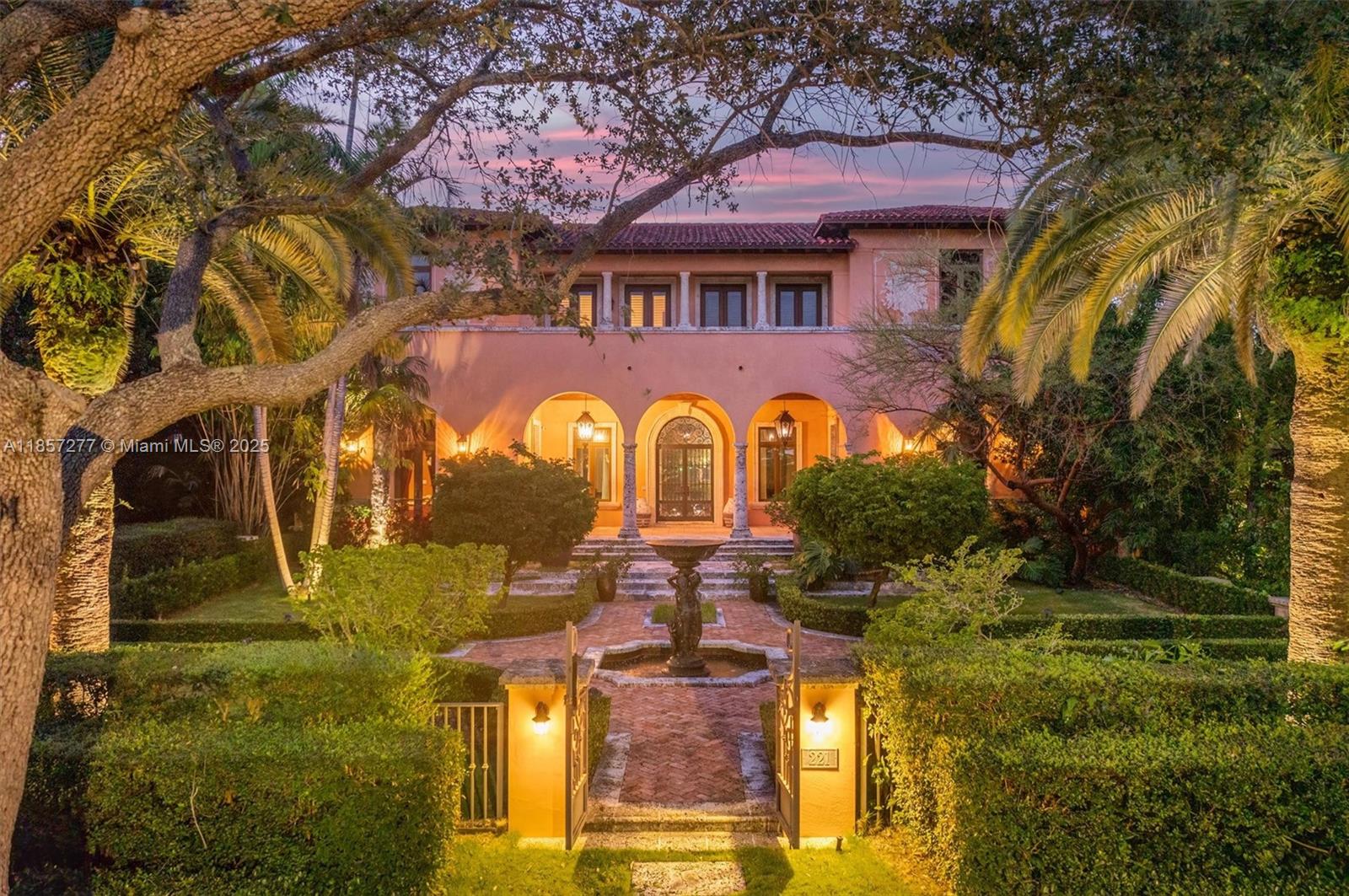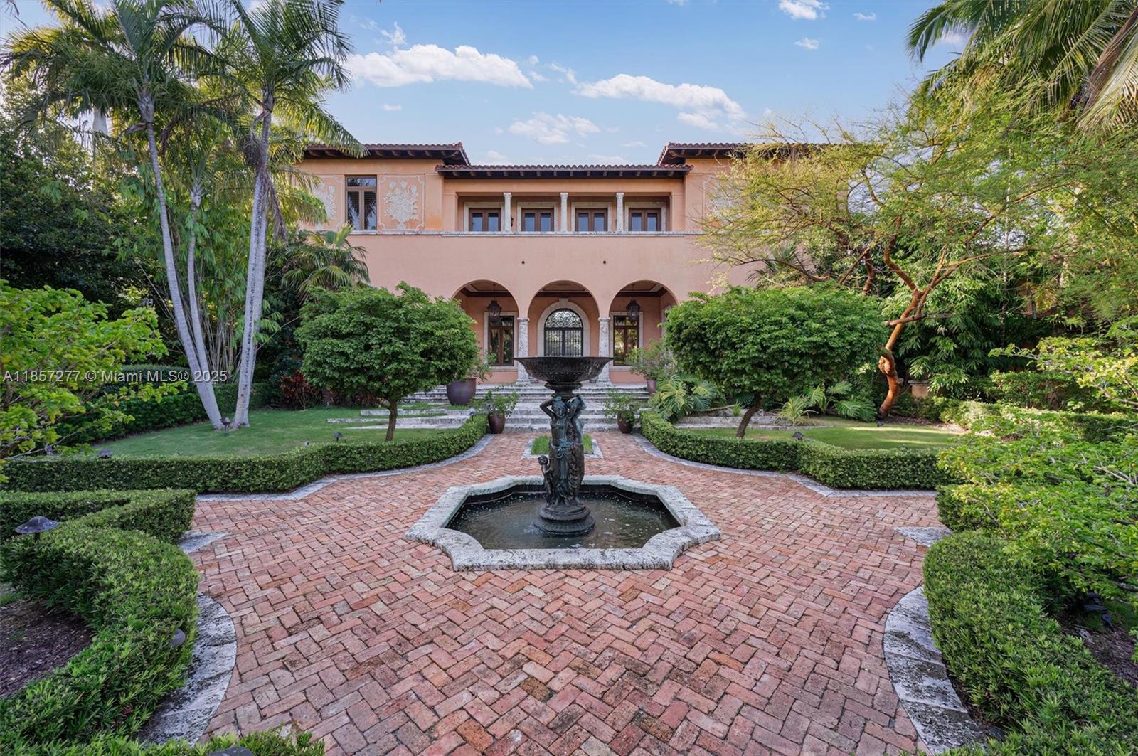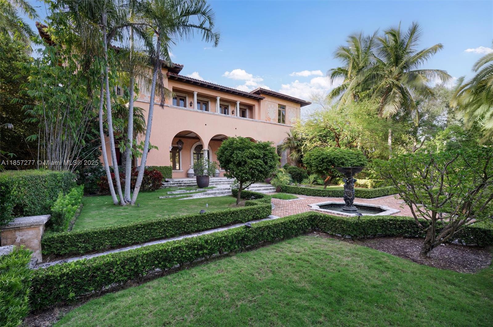 Introducing Villa De Casuarina, a Mediterranean-inspired estate in guard-gated Gables Estates. Spanning 11,500+ sq ft on a 38,161 sq ft lot, this private Riviera offers 8 bedrooms, 10 baths, 388' of water frontage, and timeless elegance. A grand foyer with soaring ceilings and Italian tiles leads to formal and informal living areas, a cedar wine cellar, theater, disco lounge, and a recently renovated chef’s kitchen featuring marble countertops, dual Sub-Zero refrigerators & freezers, and a Miele coffee stations. Outdoors greet you with manicured gardens, heated pool, terraces, summer kitchen, and dockage for 60’ yacht. North exposure for ideal light, with impact windows. Enjoy privacy, security, and close access to top schools, Coconut Grove, Coral Gables dining, true resort-style living