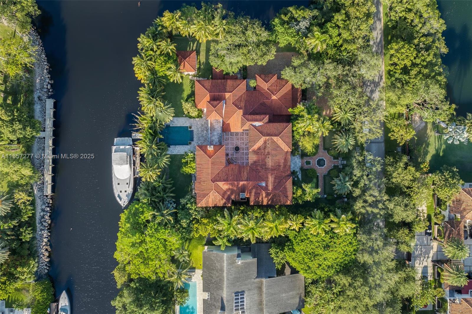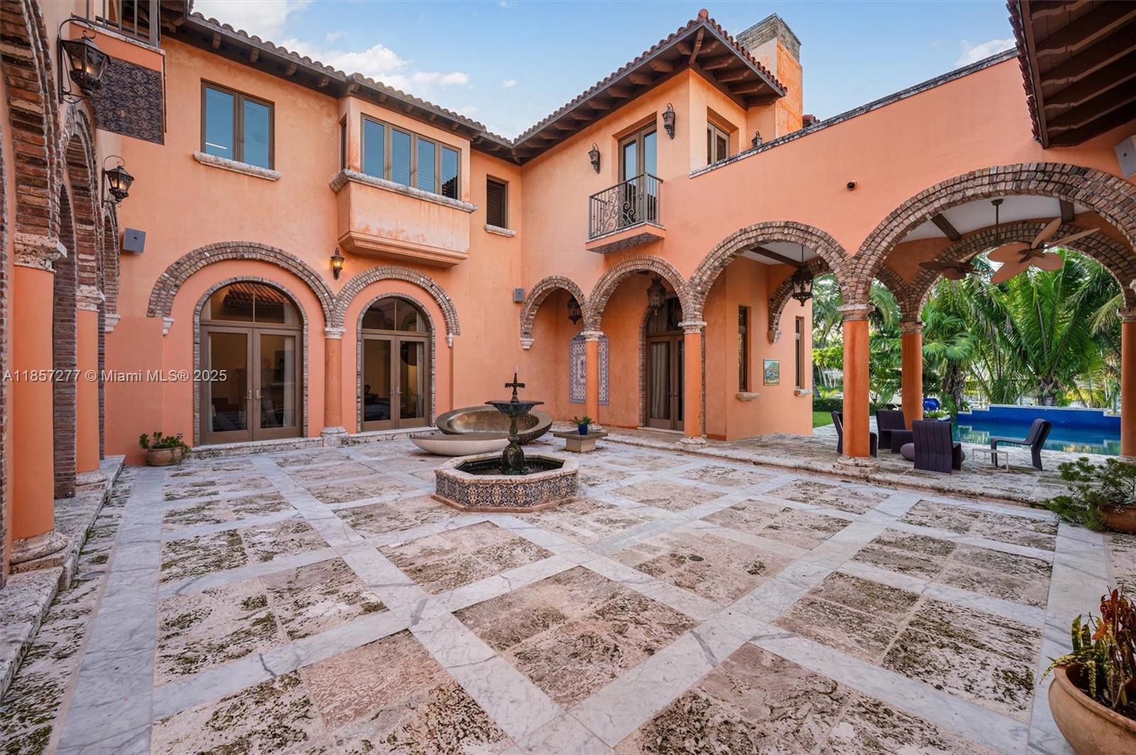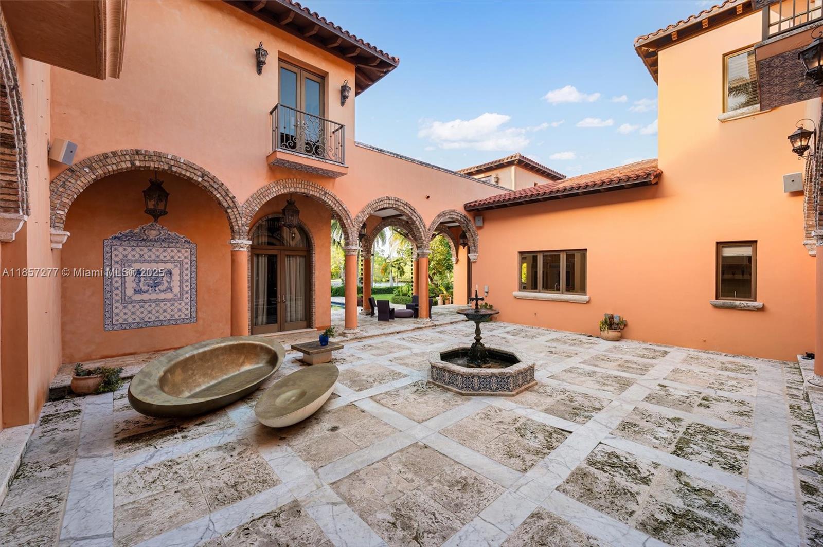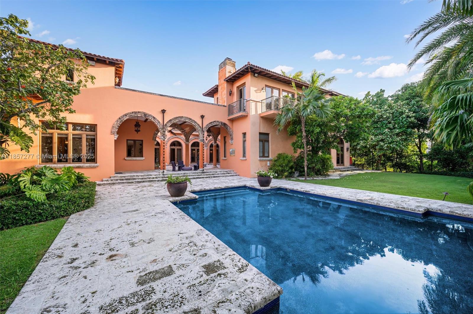 Introducing Villa De Casuarina, a Mediterranean-inspired estate in guard-gated Gables Estates. Spanning 11,500+ sq ft on a 38,161 sq ft lot, this private Riviera offers 8 bedrooms, 10 baths, 388' of water frontage, and timeless elegance. A grand foyer with soaring ceilings and Italian tiles leads to formal and informal living areas, a cedar wine cellar, theater, disco lounge, and a recently renovated chef’s kitchen featuring marble countertops, dual Sub-Zero refrigerators & freezers, and a Miele coffee stations. Outdoors greet you with manicured gardens, heated pool, terraces, summer kitchen, and dockage for 60’ yacht. North exposure for ideal light, with impact windows. Enjoy privacy, security, and close access to top schools, Coconut Grove, Coral Gables dining, true resort-style living