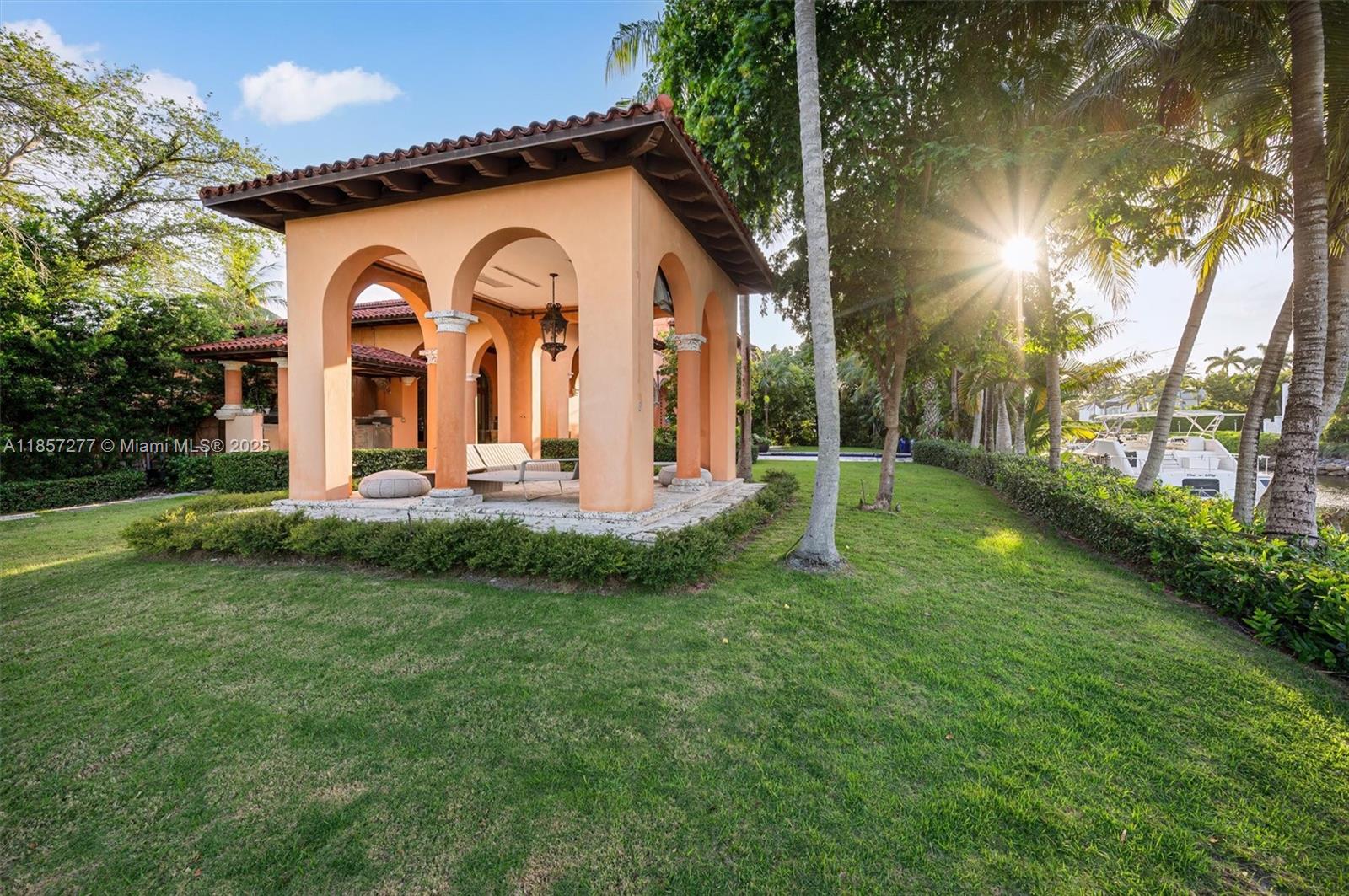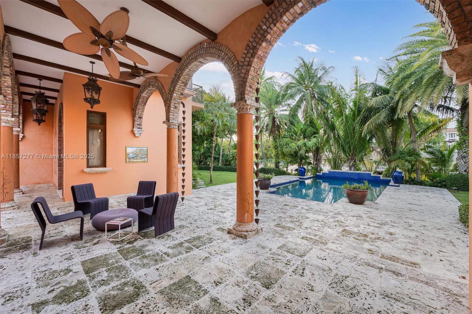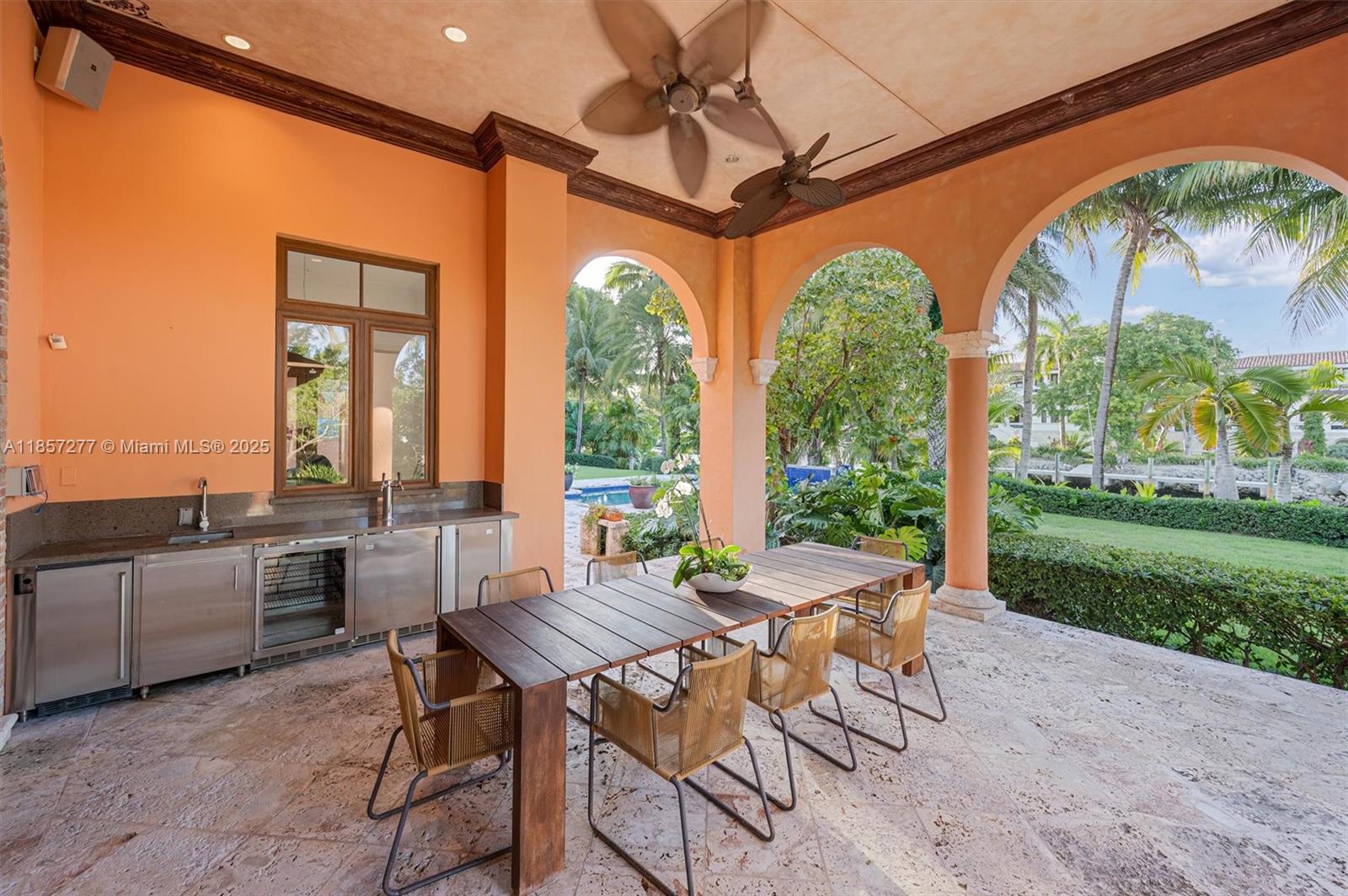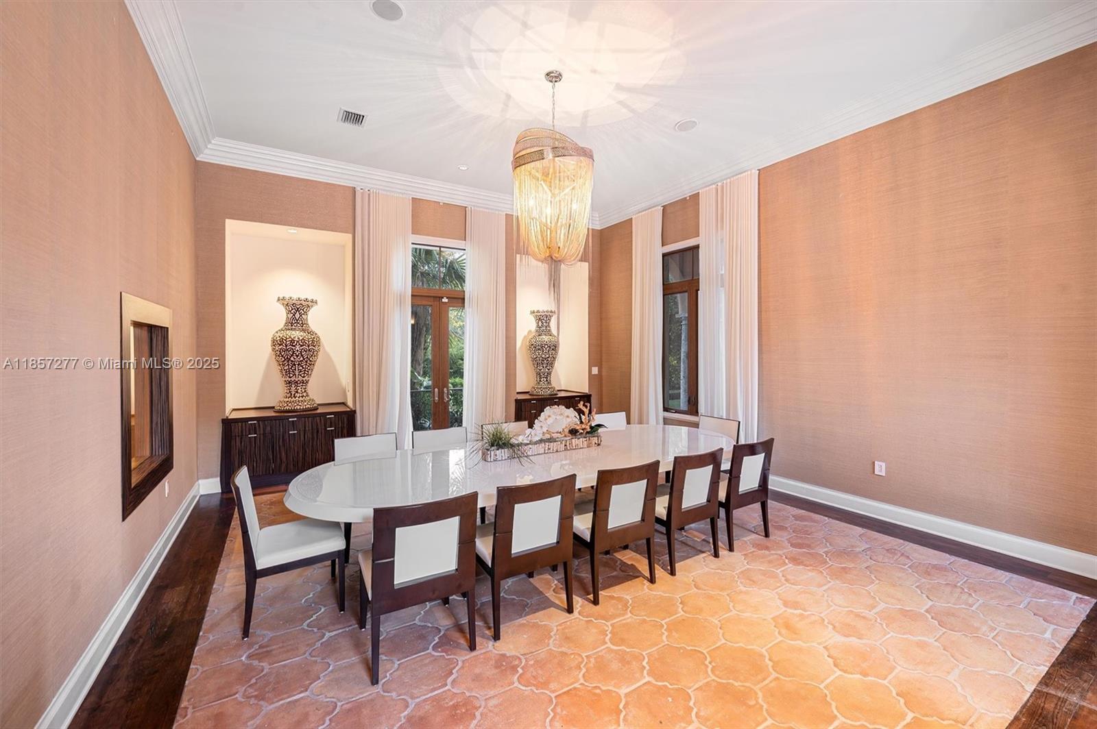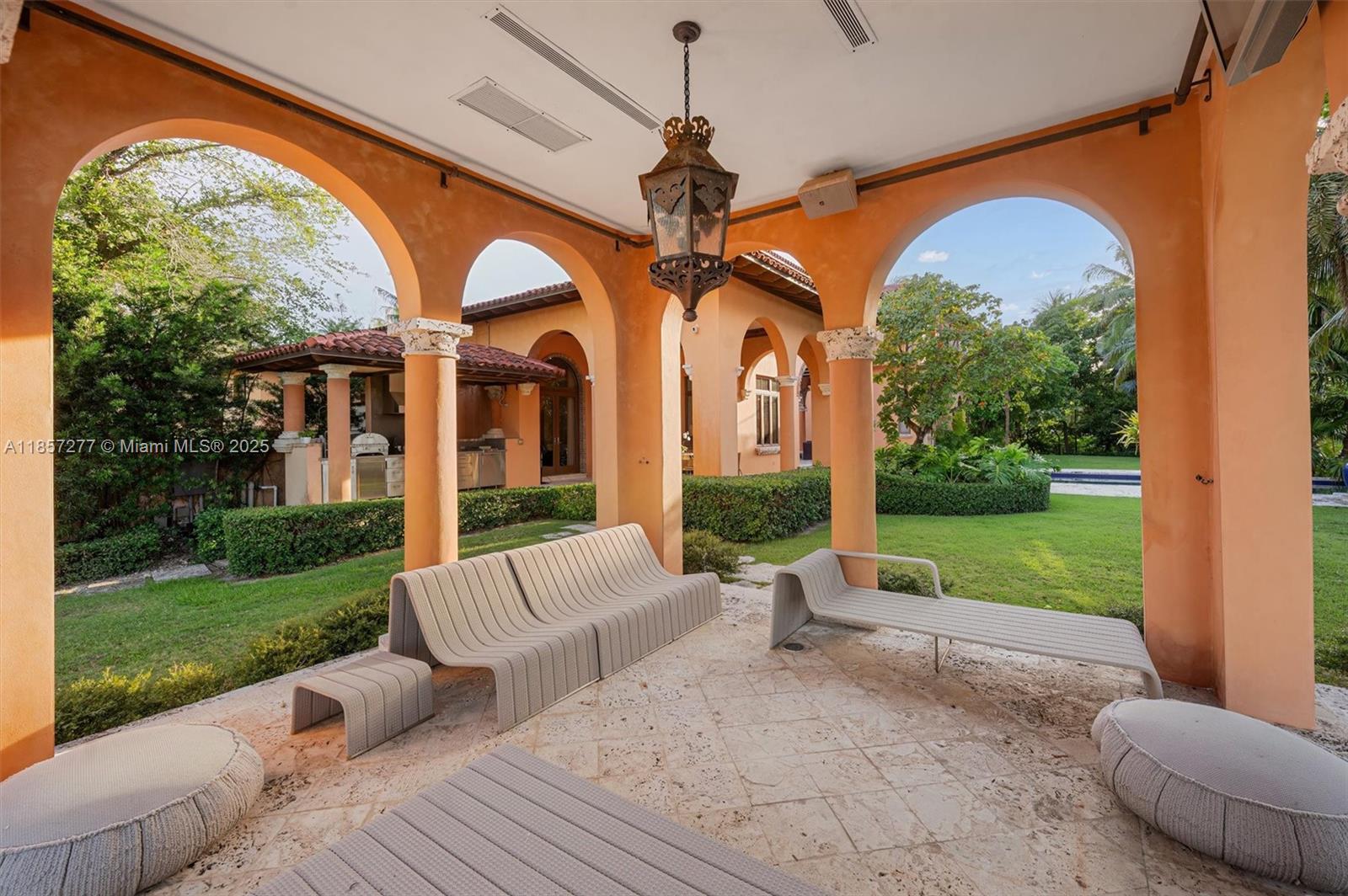 Introducing Villa De Casuarina, a Mediterranean-inspired estate in guard-gated Gables Estates. Spanning 11,500+ sq ft on a 38,161 sq ft lot, this private Riviera offers 8 bedrooms, 10 baths, 388' of water frontage, and timeless elegance. A grand foyer with soaring ceilings and Italian tiles leads to formal and informal living areas, a cedar wine cellar, theater, disco lounge, and a recently renovated chef’s kitchen featuring marble countertops, dual Sub-Zero refrigerators & freezers, and a Miele coffee stations. Outdoors greet you with manicured gardens, heated pool, terraces, summer kitchen, and dockage for 60’ yacht. North exposure for ideal light, with impact windows. Enjoy privacy, security, and close access to top schools, Coconut Grove, Coral Gables dining, true resort-style living