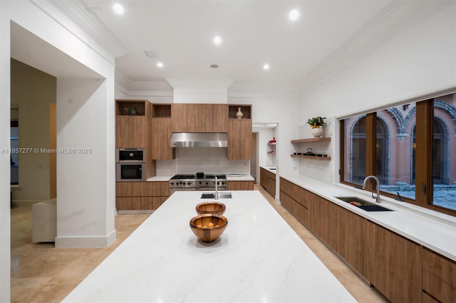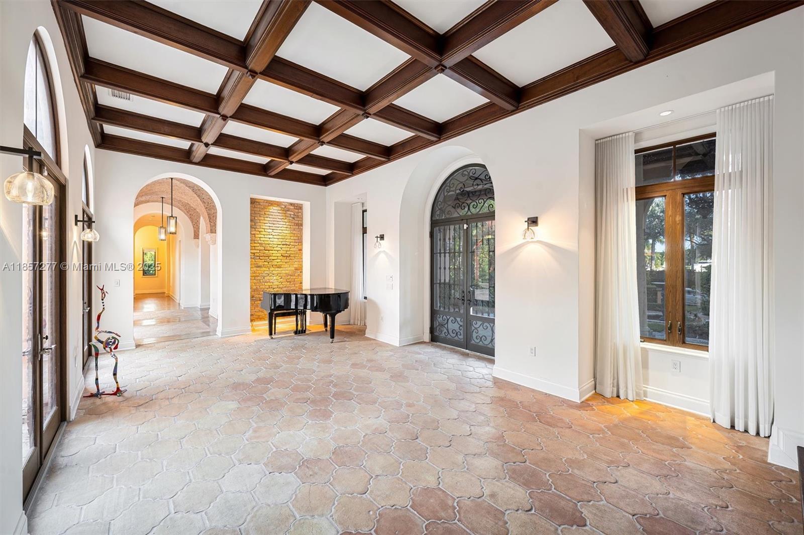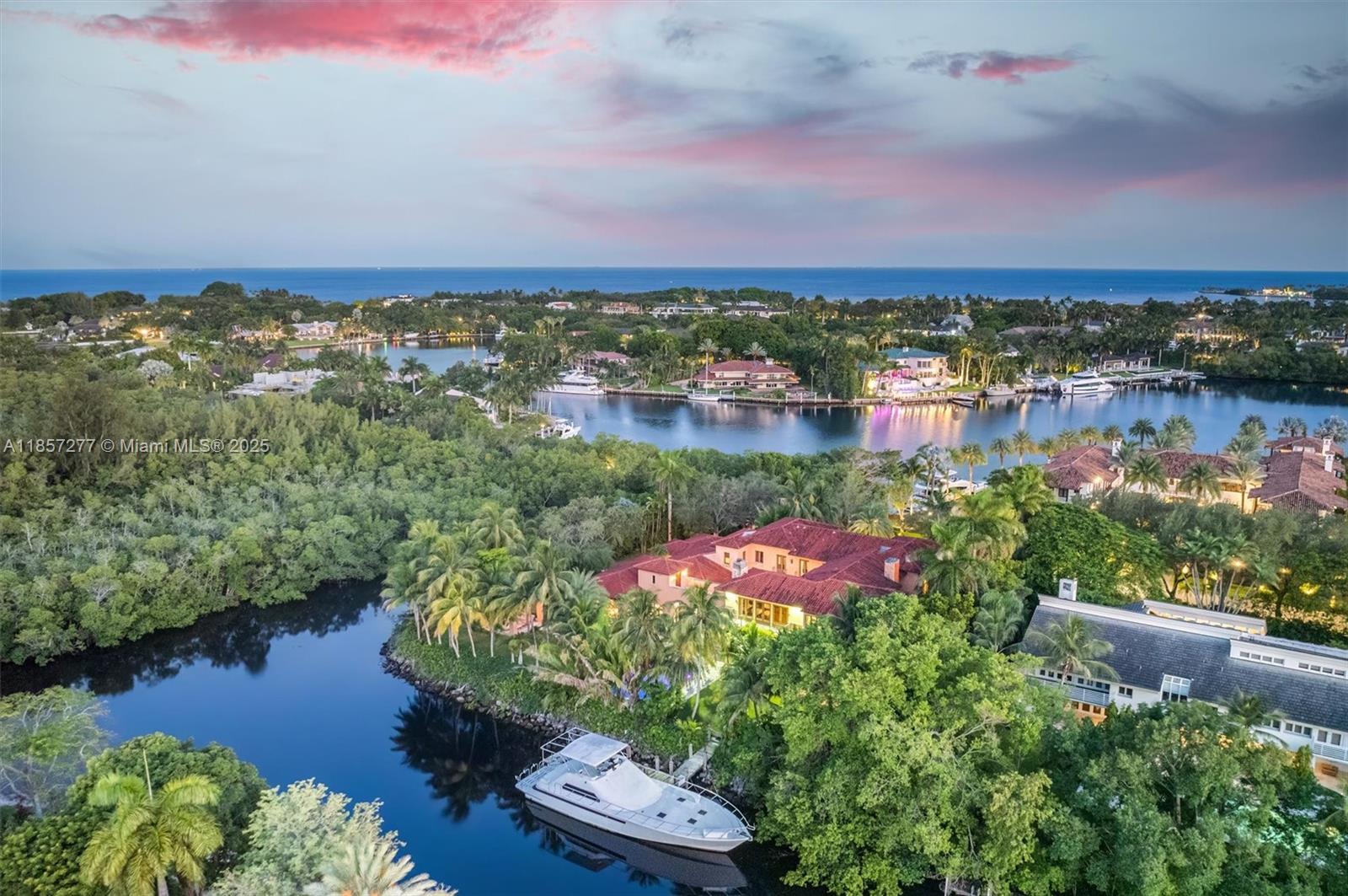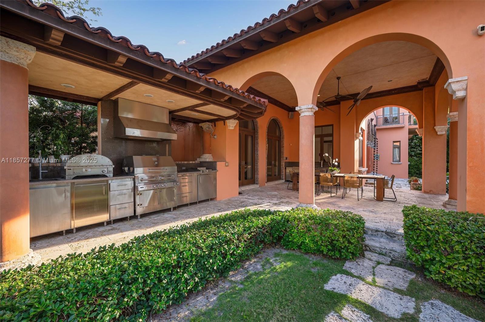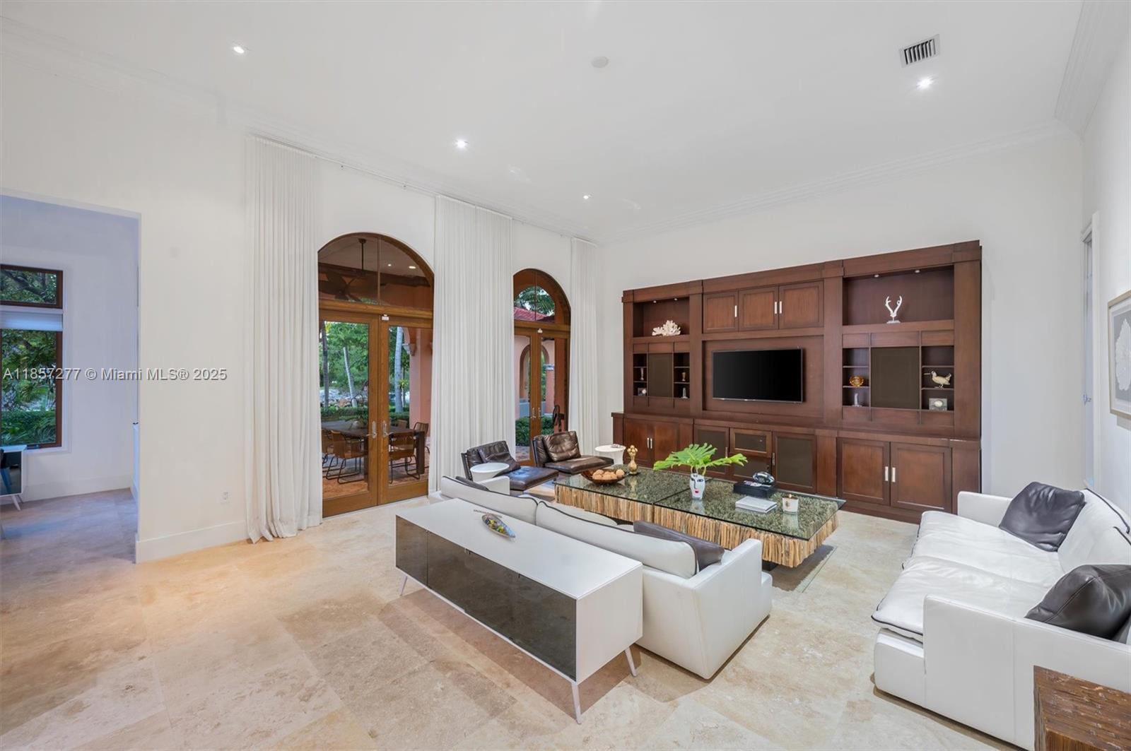 Introducing Villa De Casuarina, a Mediterranean-inspired estate in guard-gated Gables Estates. Spanning 11,500+ sq ft on a 38,161 sq ft lot, this private Riviera offers 8 bedrooms, 10 baths, 388' of water frontage, and timeless elegance. A grand foyer with soaring ceilings and Italian tiles leads to formal and informal living areas, a cedar wine cellar, theater, disco lounge, and a recently renovated chef’s kitchen featuring marble countertops, dual Sub-Zero refrigerators & freezers, and a Miele coffee stations. Outdoors greet you with manicured gardens, heated pool, terraces, summer kitchen, and dockage for 60’ yacht. North exposure for ideal light, with impact windows. Enjoy privacy, security, and close access to top schools, Coconut Grove, Coral Gables dining, true resort-style living
