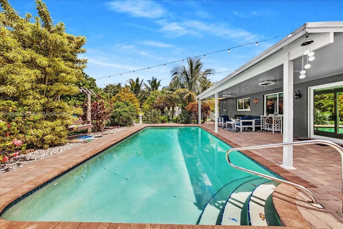Stunning 3 bed2, 2 baths, 2 car garage waterfront corner lot home pool, fully updated and ready to move in! Step into a sun-filled interior with vaulted ceilings, French doors, neutral finishes, and sliding windows framing serene views. The backyard is a true tropical retreat, sparkling pool, tiki hut, covered patio, and abundant fruit trees for your own harvest. Impact doors/windows and a privacy fence add peace of mind. Ideally located minutes from Sawgrass Mills Mall, BB&T Center, Markham Park, and top-rated medical facilities and schools. Quick access to I-595 and the Sawgrass Expressway makes commuting a breeze. A perfect mix of style, comfort, and Florida outdoor living!