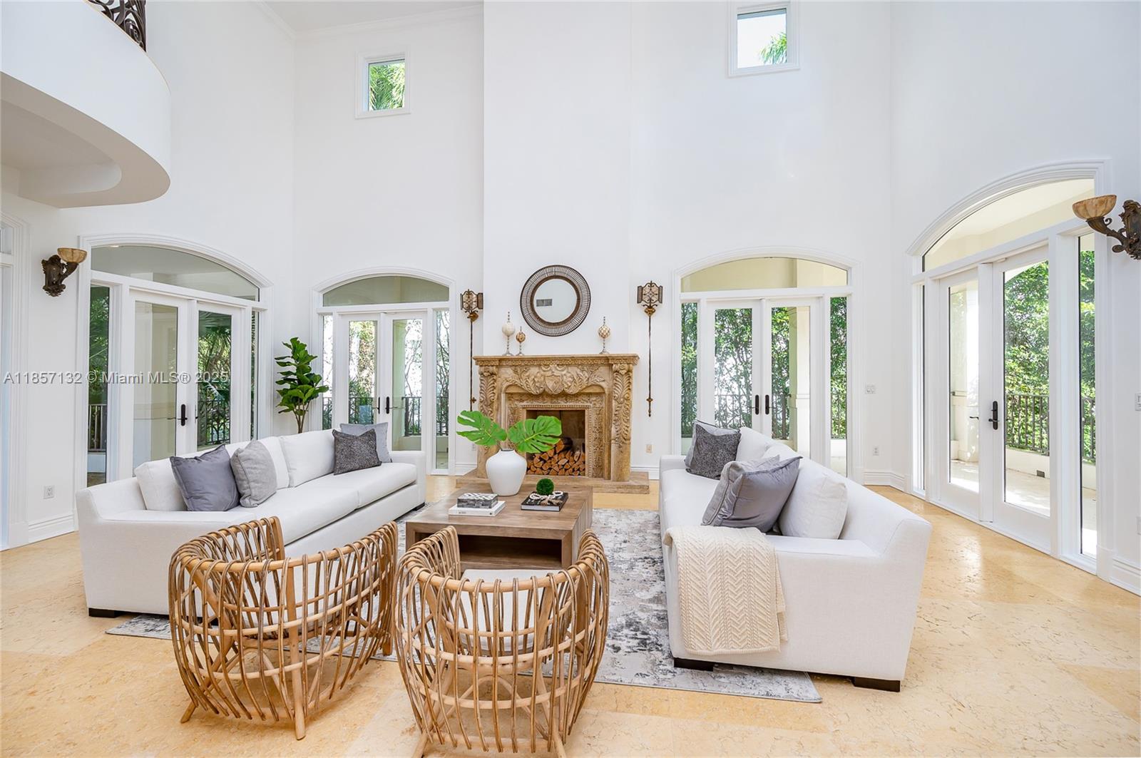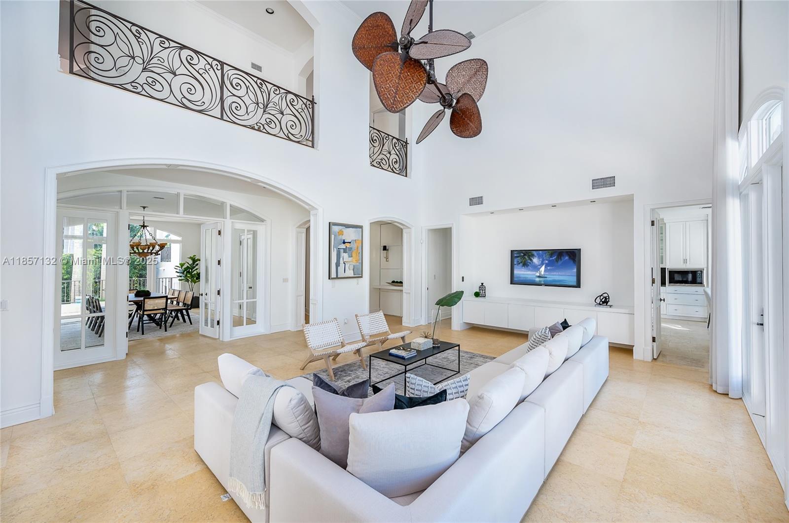 A one-of-a-kind, Mediterranean estate in the prestigious and private gated community of Tahiti Beach Island. Located at the end of a cul-de-sac, sitting on over an acre and featuring 25-foot-high ceilings in the foyer & living room. Perfect for entertaining, the large kitchen with wet bar and butler’s pantry leads to a light filled family room that opens to an extensive outdoor terrace, 24 x 40 pool and guest house. Boasting an opulent primary bedroom with dual closets, an oversized bathroom and a private balcony looking over the pool and yard. Tahiti Beach Island offers a private beach, tennis courts, pickleball & access to all of Cocoplum’s amenities.